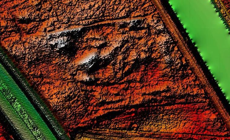 • Het lijkt de Alpen, maar is het micro-reliéf van de zone tussen A2 (links) en kanaal Wessem-Nederweert. Foto AHN.