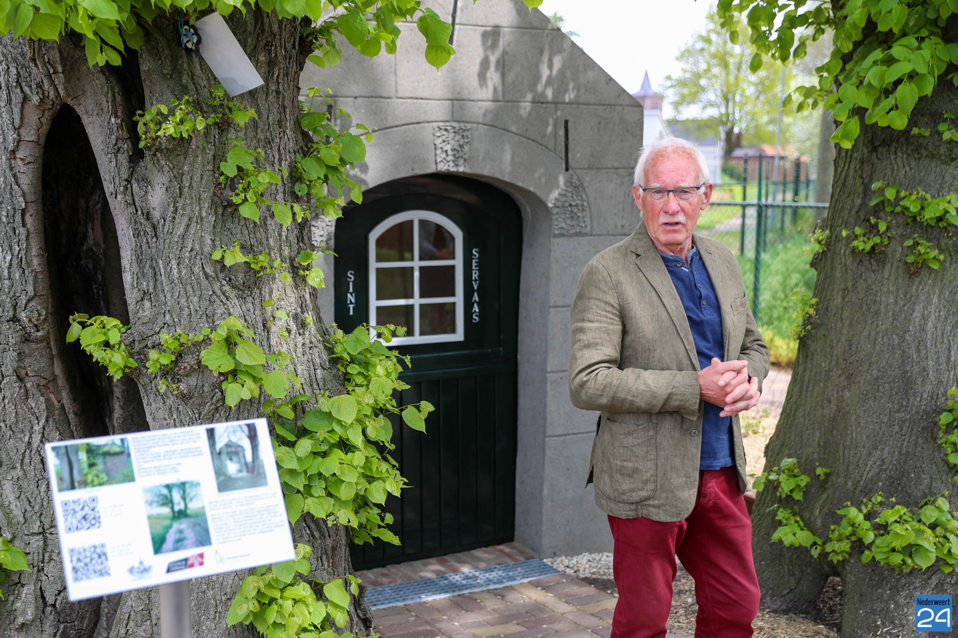 De kapel wordt geflankeerd door de twee oorspronkelijke lindebomen die terecht als natuurmonument zijn aangemerkt. Er is een infobord geplaatst met daarop een tweetal QR-codes. Deze codes leiden naar een site met zeer interessante informatie over de kapel en Sint Servaas. Een bezoekje is zeker de moeite waard.