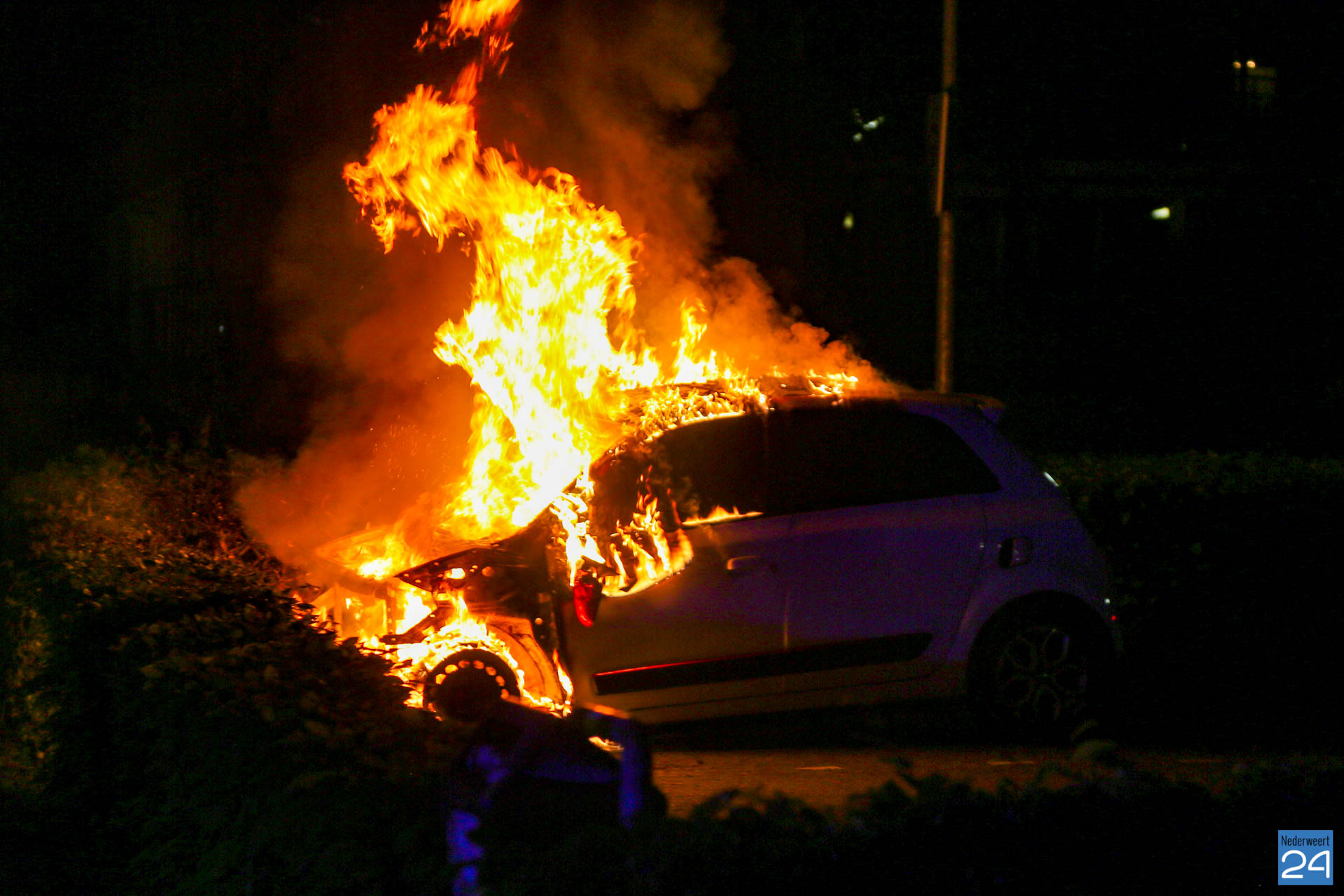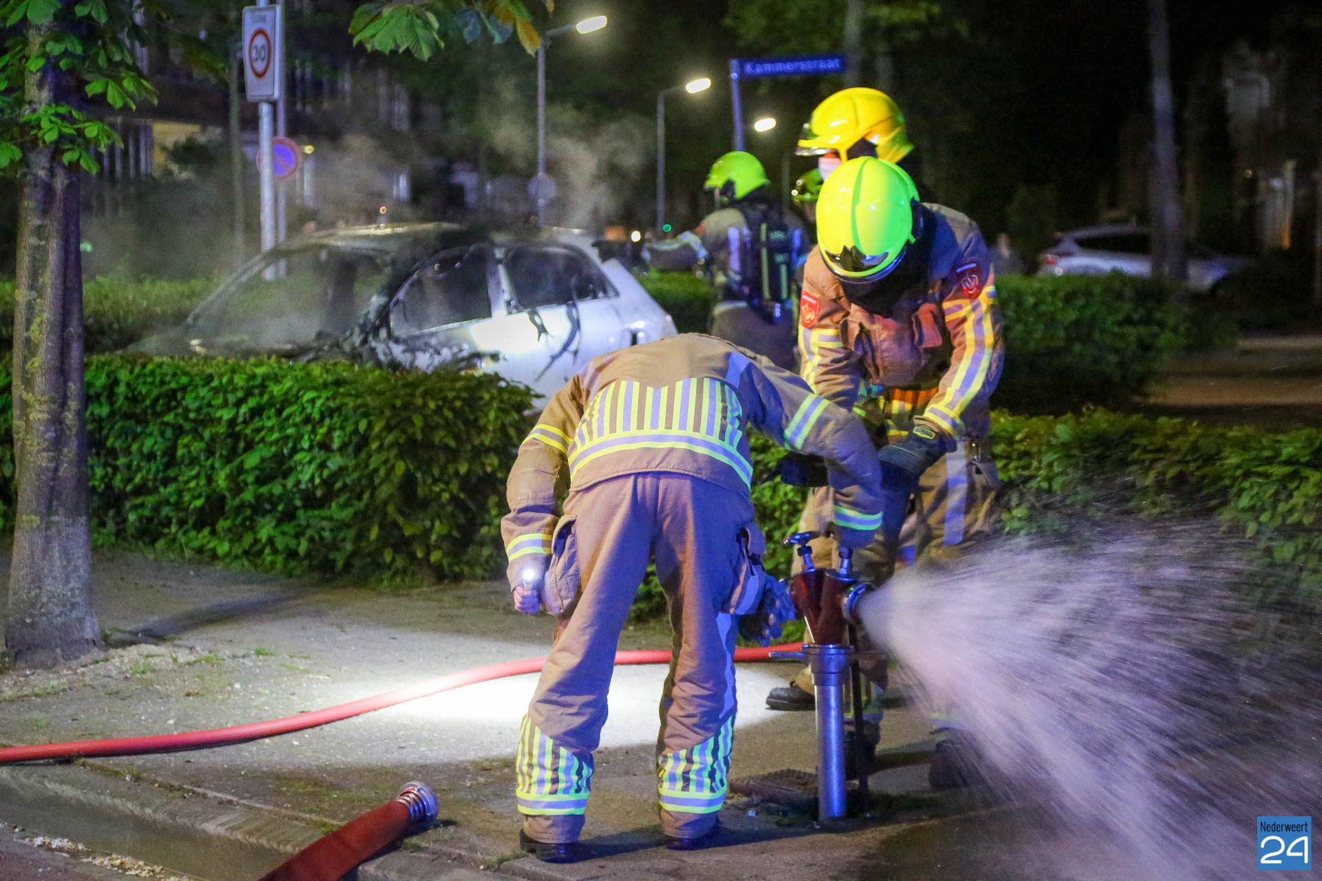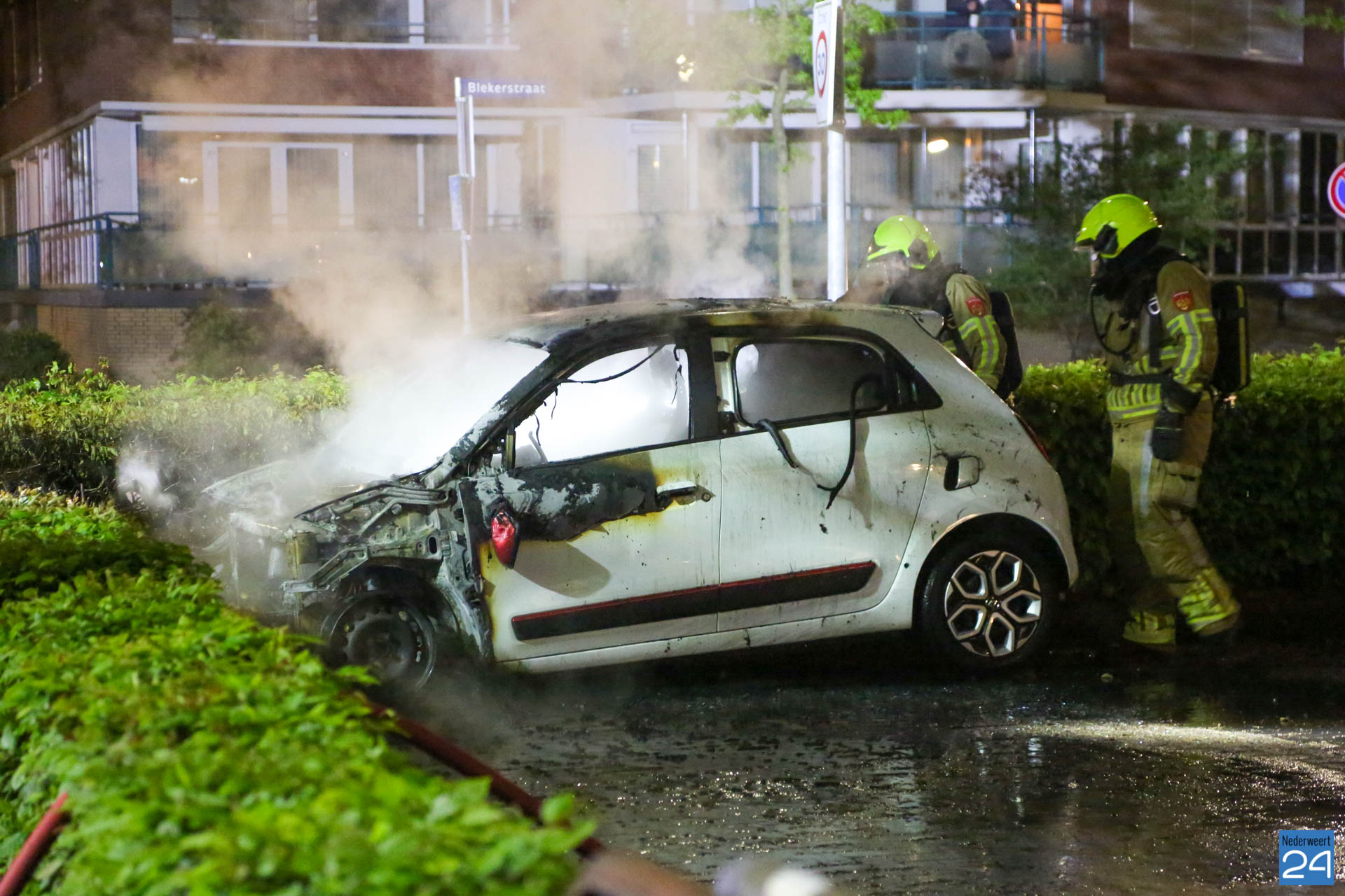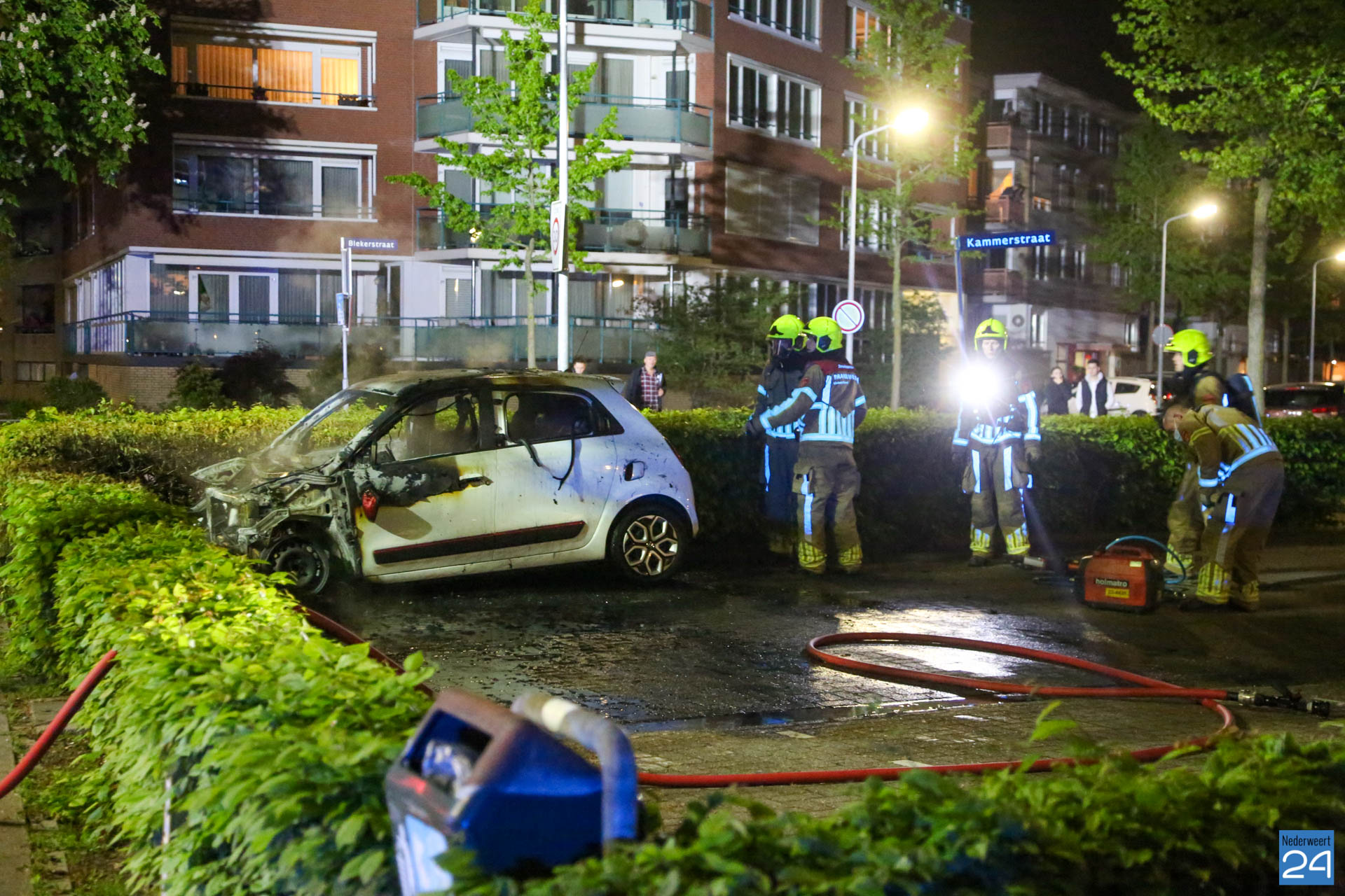 Zondagavond is een auto volledig uitgebrand op een parkeerplaats aan de Kammerstraat in Weert.