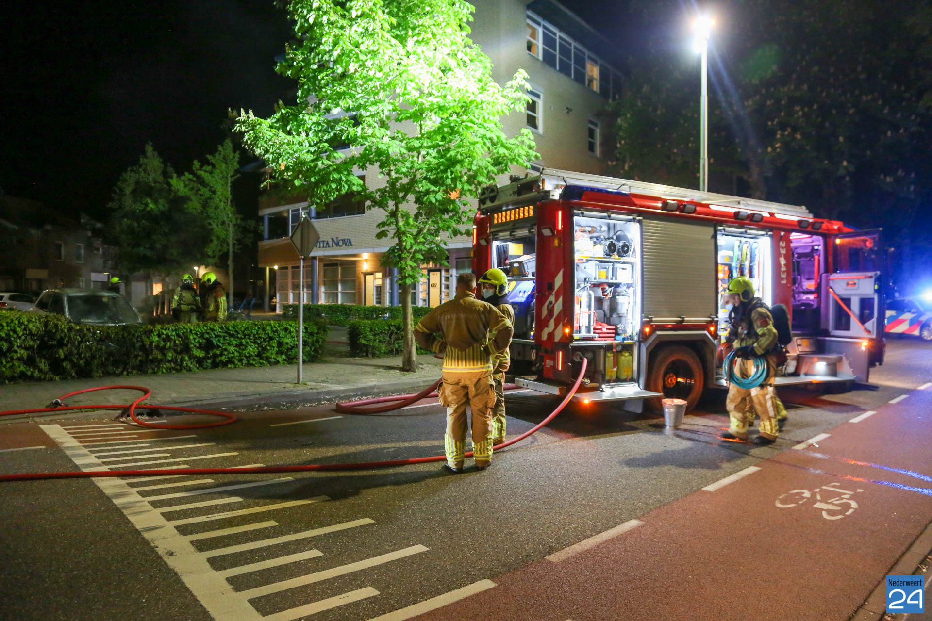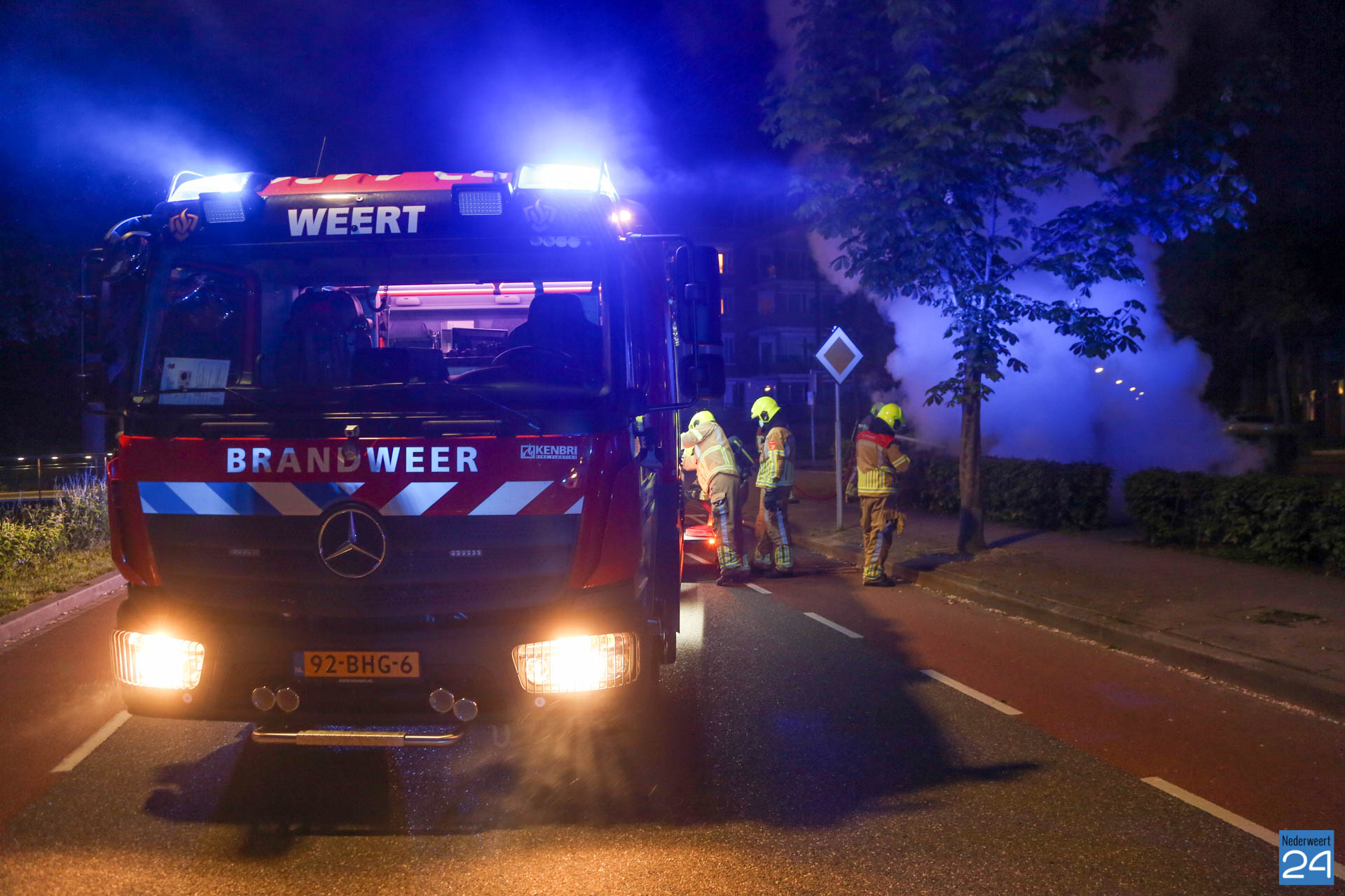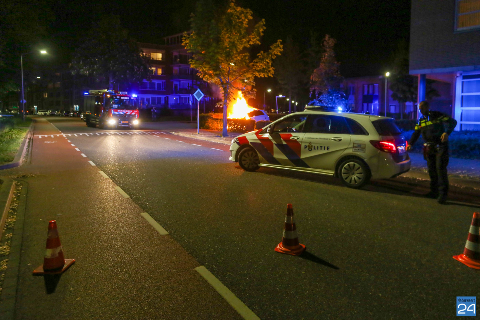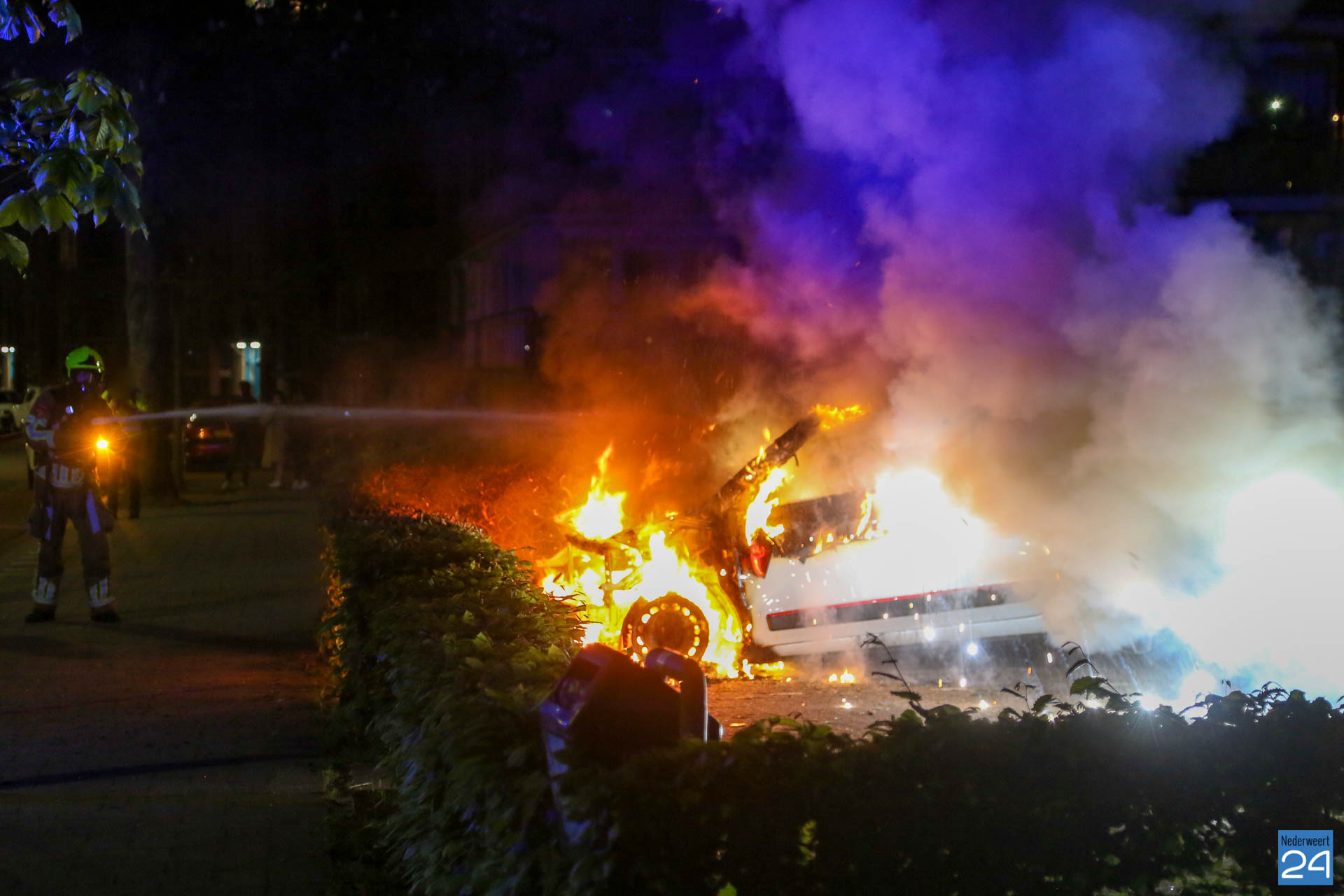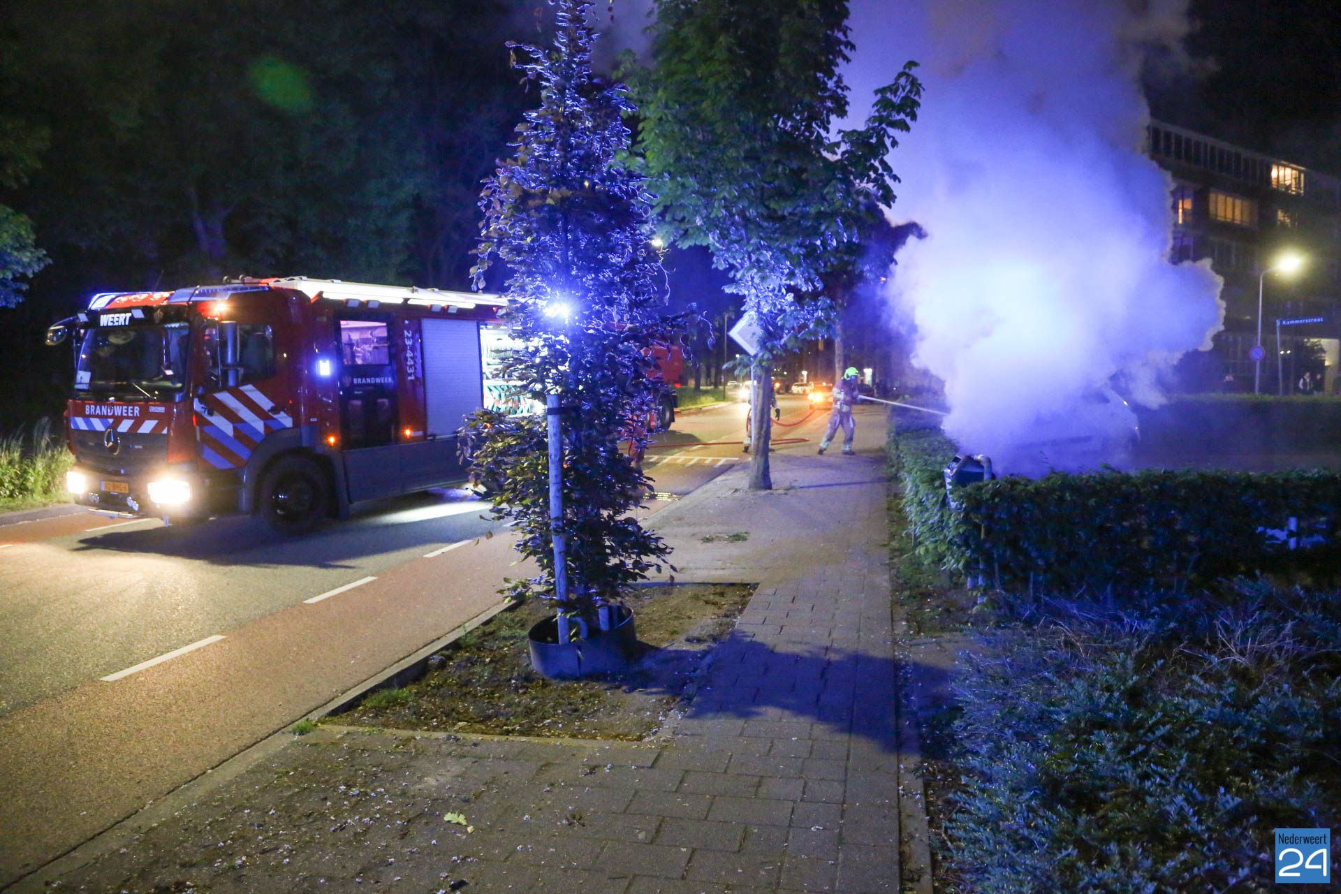 Zondagavond is een auto volledig uitgebrand op een parkeerplaats aan de Kammerstraat in Weert.