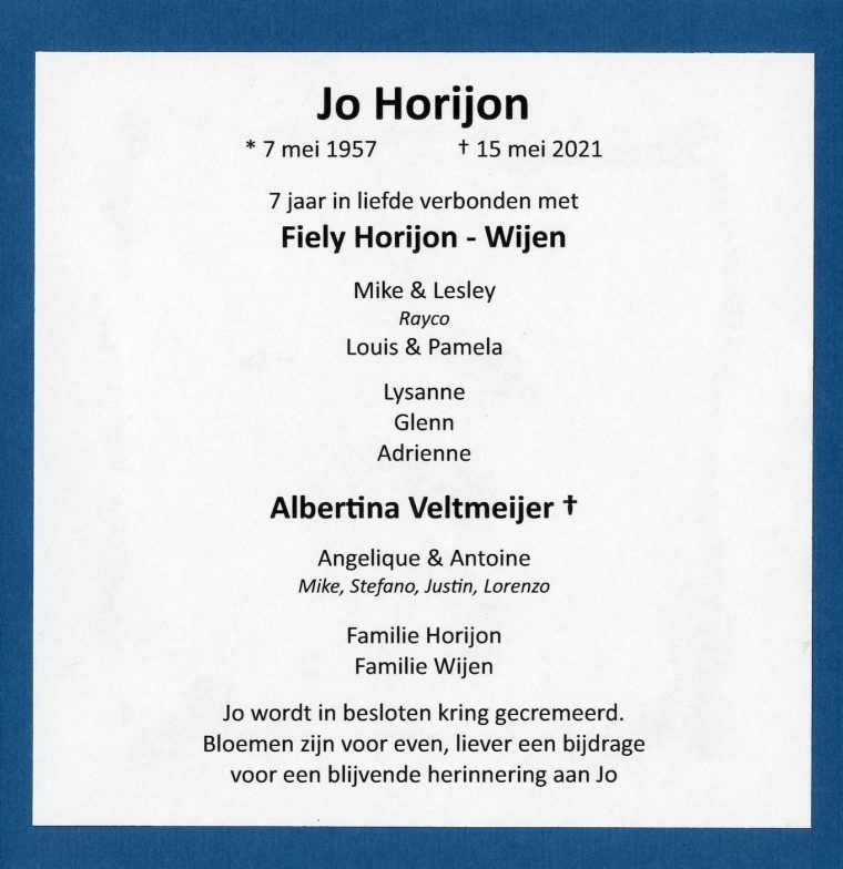 Gecondoleerd met het verlies van Jo, pap en opa. Heel veel sterkte gewenst