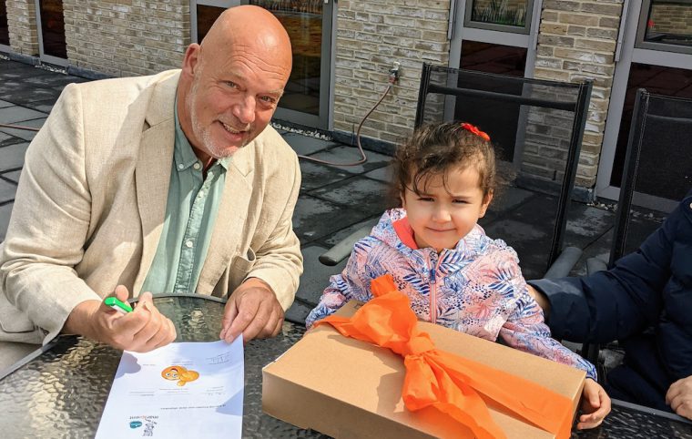 Door sponsoring van de heer Rick Laurens Janse krijgt de school 12 laptops met computertassen geschonken en kunnen de gezinnen de computers in bruikleen thuis inzetten. Hierdoor kunnen ouders en kinderen nog uitgebreider samen leren. Dit was woensdag reden voor een Coronaproof feestje op het dakterras van Markeent. Bij de feestelijke uitreiking zijn er contractjes getekend waarin werd beschreven hoe de chromebooks gebruikt gaan worden. Daarna konden de aanwezigen genieten van de heerlijk zelf gebakken lekkernijen door ouders. Uiteraard ontving de sponsor een extra bordje koekjes.