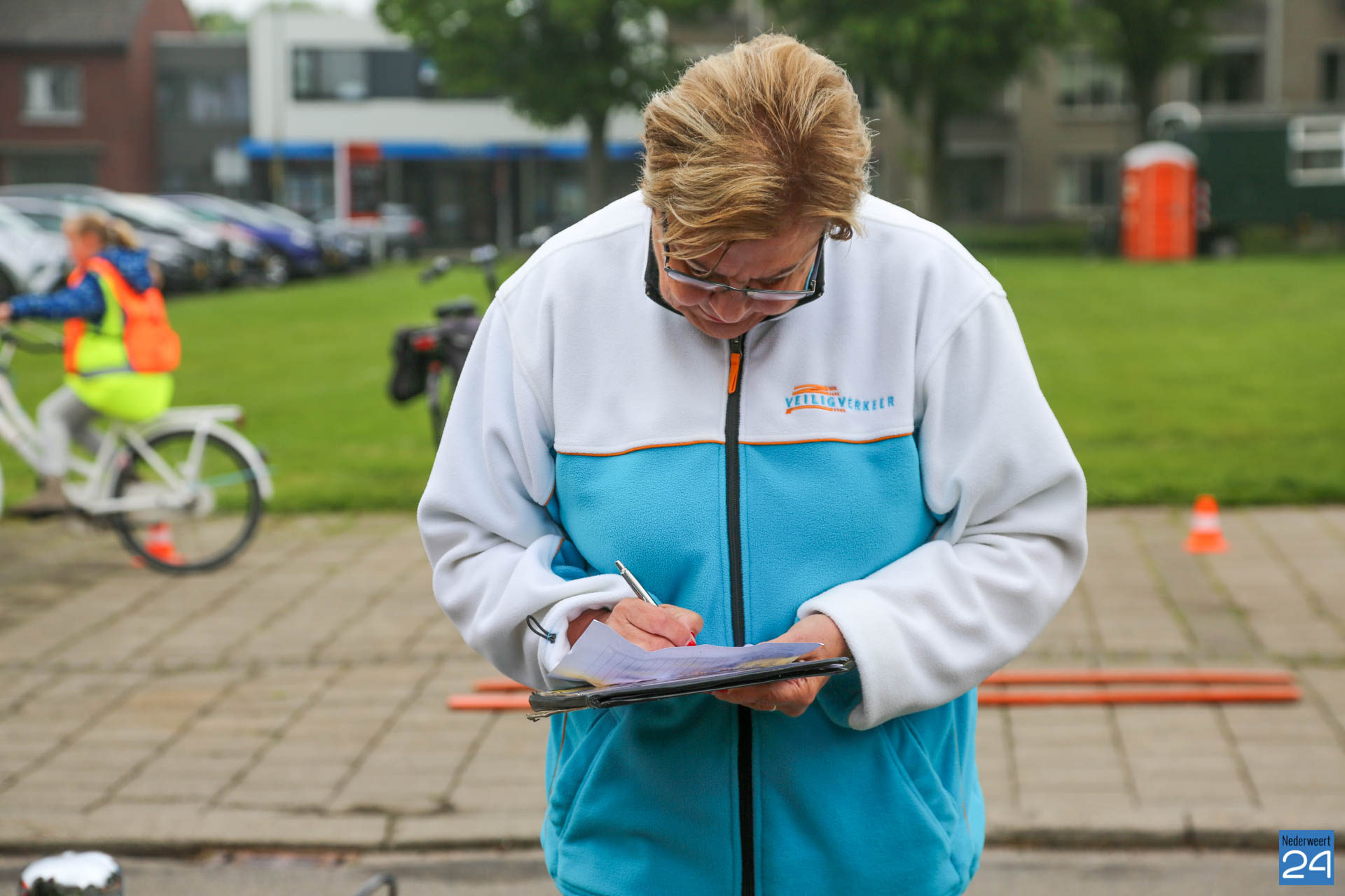 Na deze bijzondere verrichtingen werd een vaste route afgelegd door de straten van Nederweert. Langs deze route stonden vrijwilligers die -aan de hand van een controlelijst- beoordeelden of de leerlingen goed handelden. Vanmorgen vertrokken de kids vanaf het St. Rochusplein op Budschop. Vanmiddag fietsten de scholen vanaf het Raadhuisplein.
