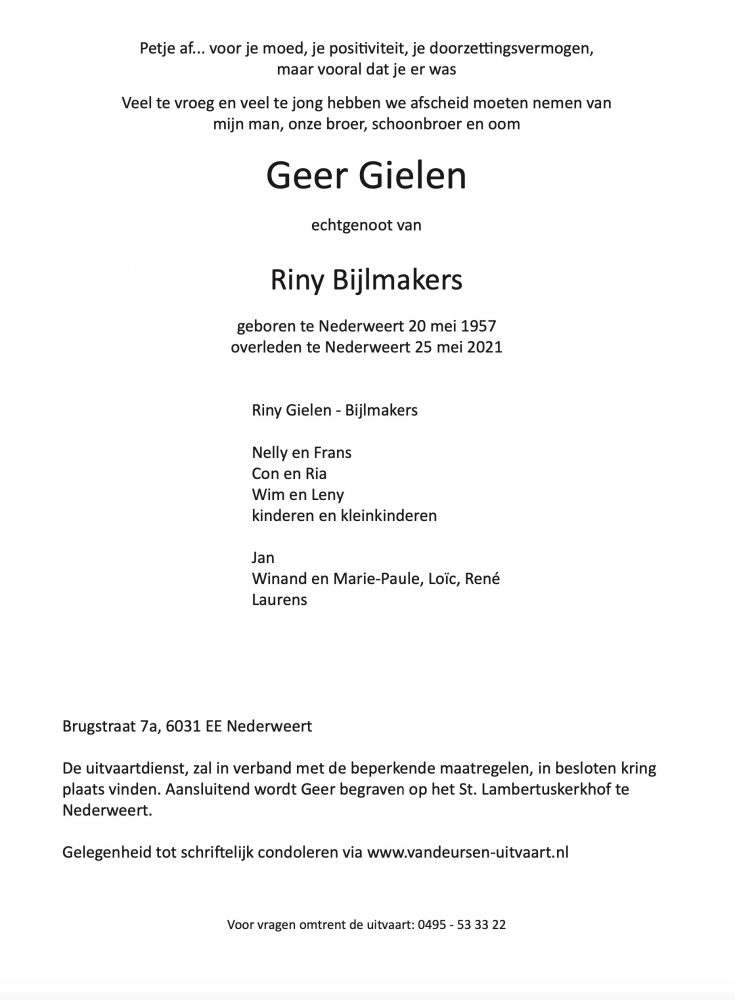 Geert was een fijne vent kon je goed mee overweg ,en jammer te jong ,heel veel sterkte gewenst van Els en Huub