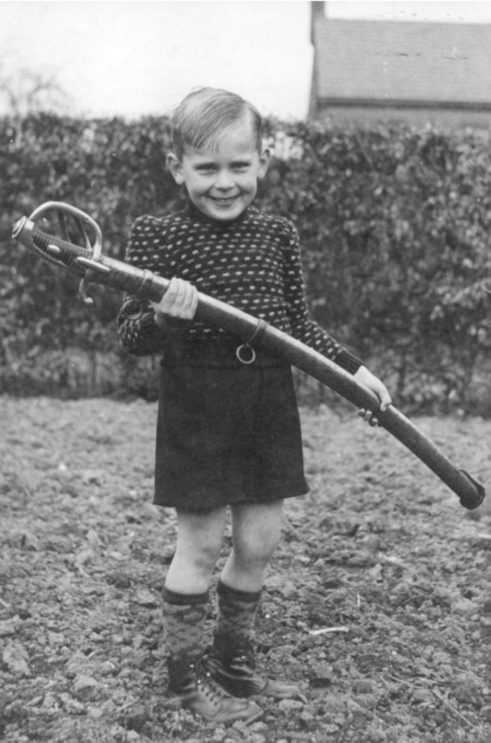 Een nazaat van Houts Hendrik met de sabel van zijn illustere voorvader. Foto SGN.