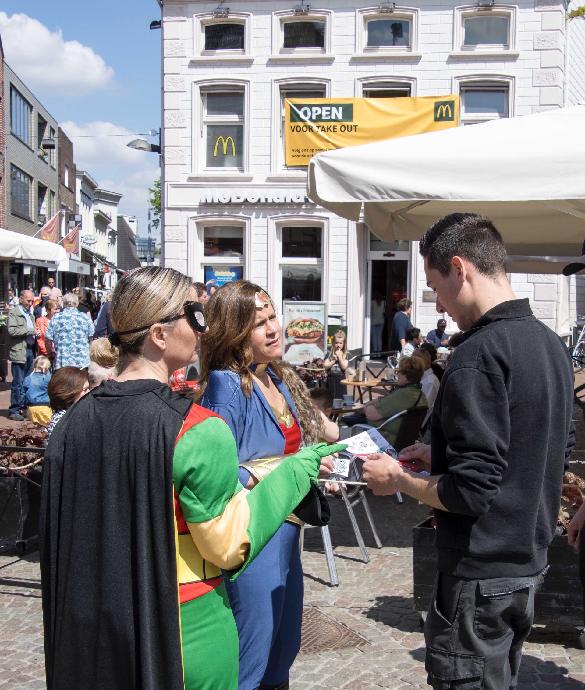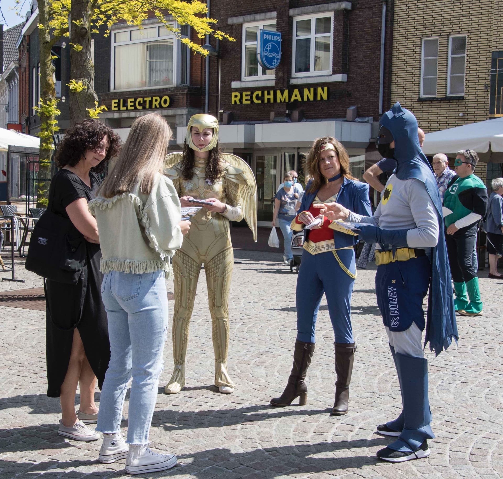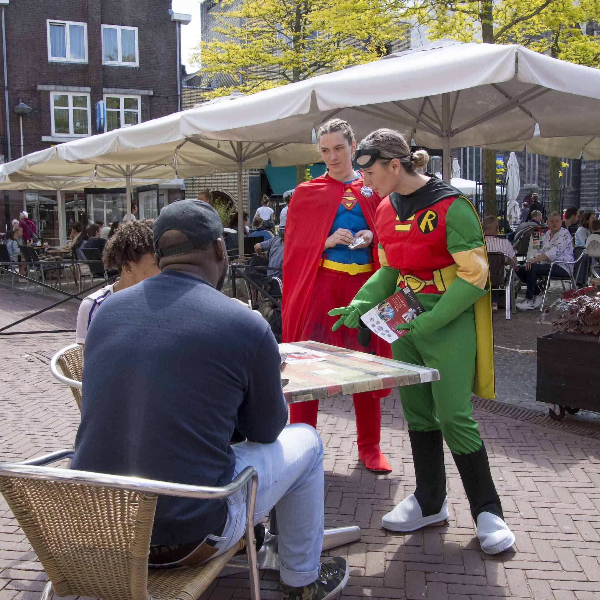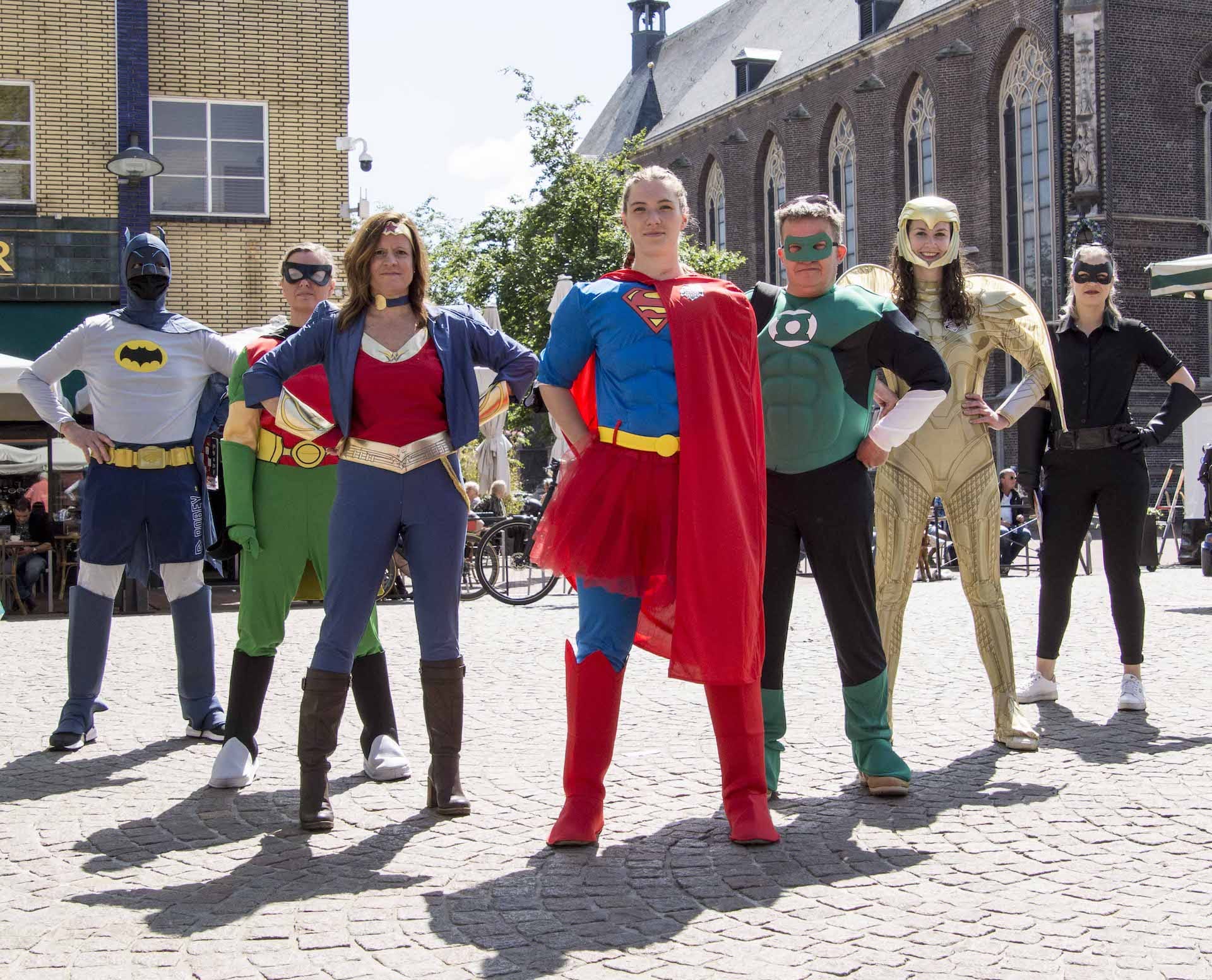 De life coaches van het project gingen de stad door om Community Heroes, Weer(t) Samen op de kaart te zetten. En dat deden zij in stijl! Als superhelden gingen zij de stad door om jongeren enthousiast te maken over het maatschappelijk project!