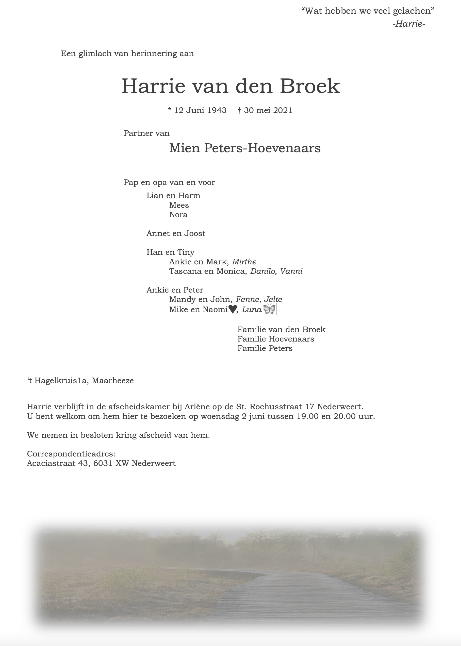 Heel veel sterkte voor familie en nabestaanden In deze moeilijke tijd . Fijne collega was Harrie