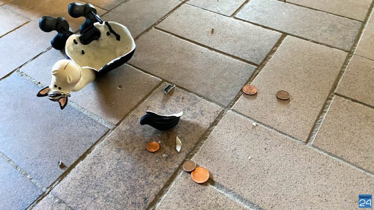 De fooienpot had waarschijnlijk te weinig inhoud. Deze lag kapot op de vloer met het kleingeld er nog naast.