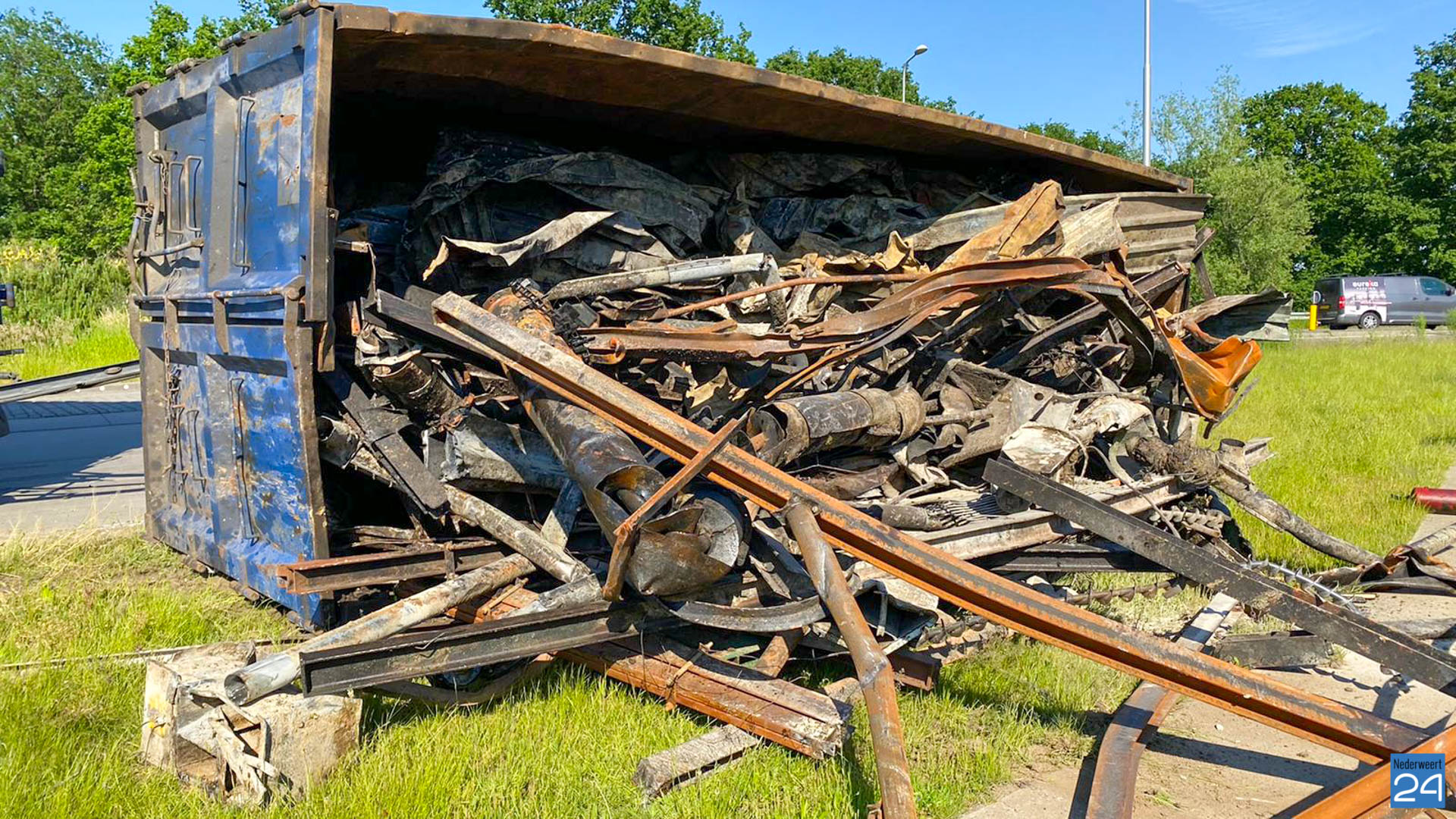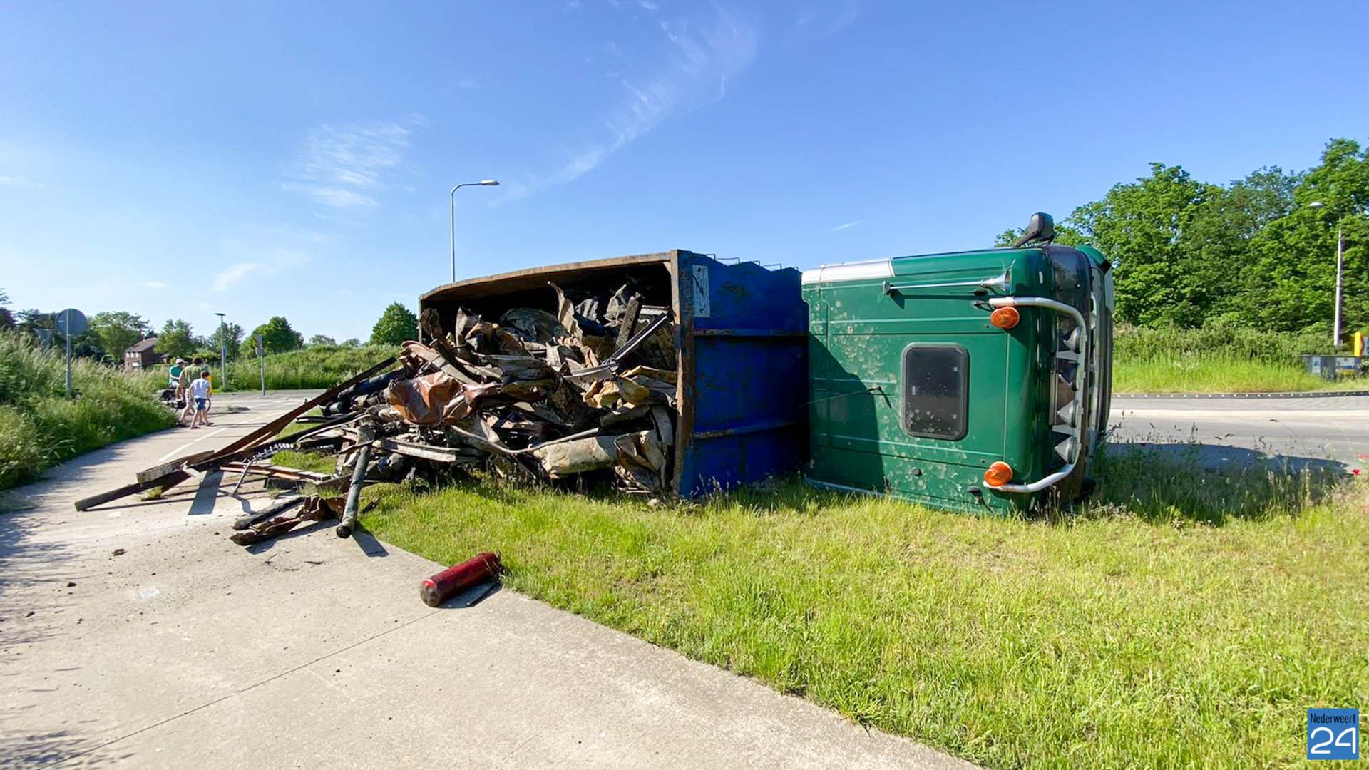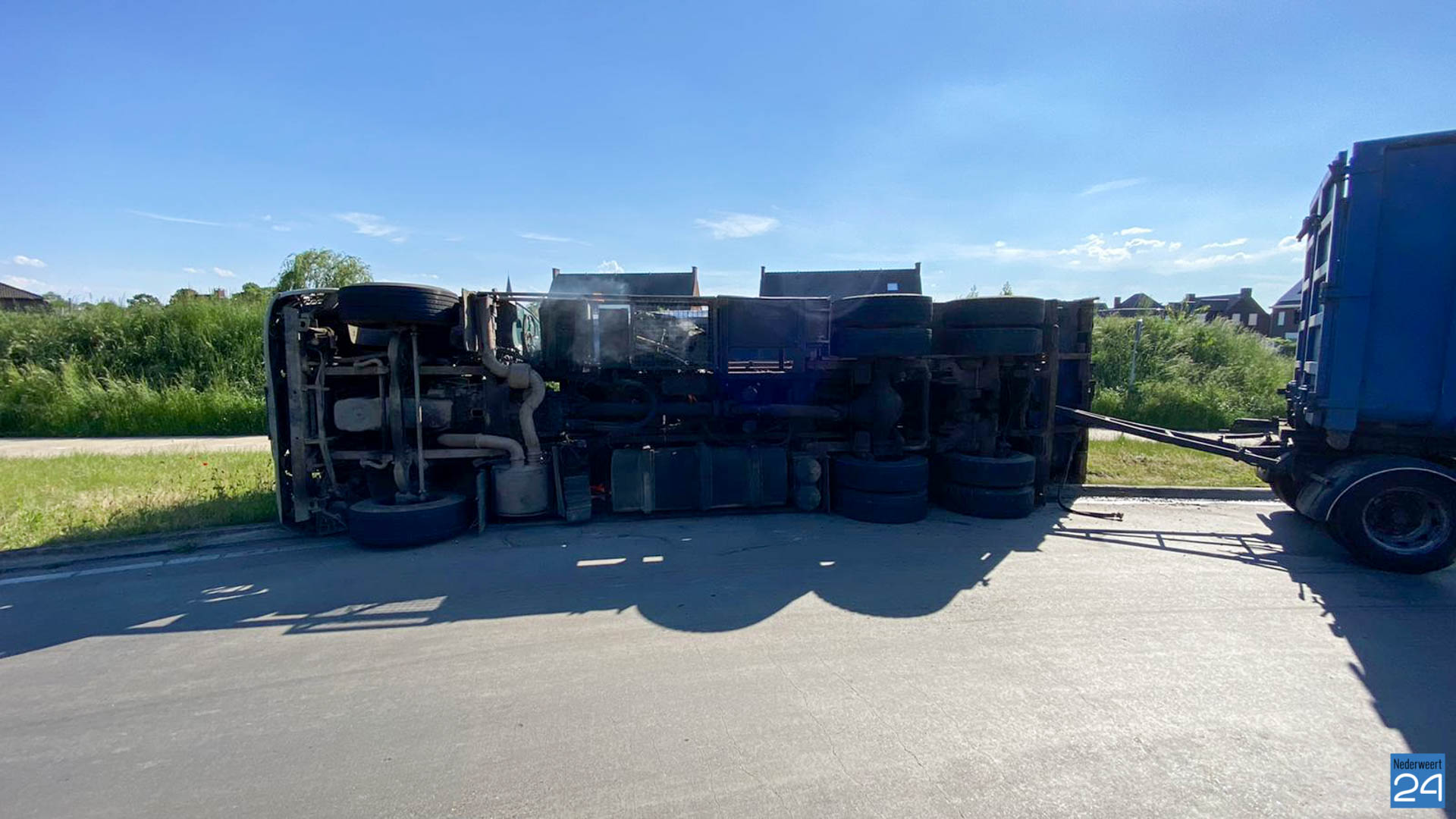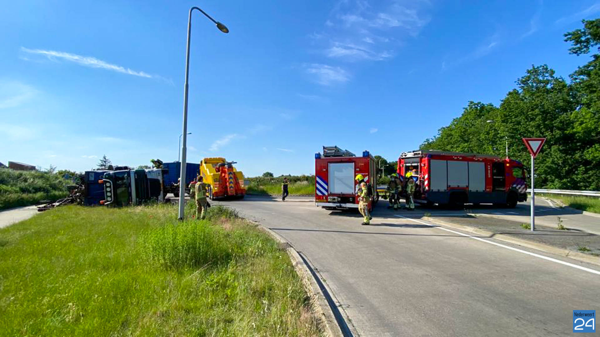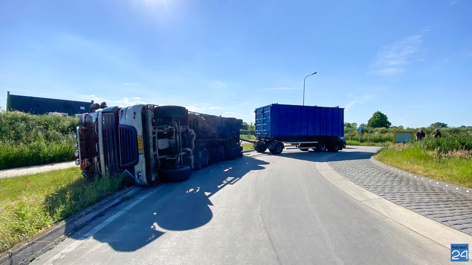 Woensdagmiddag is er er een vrachtwagen gekanteld op de Rijksweg Noord N266 in Nederweert.