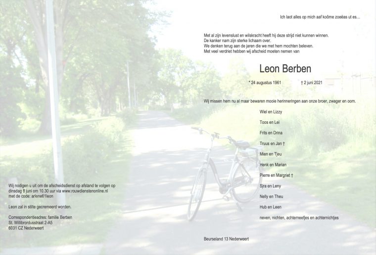 familie Berben gecondoleerd met het overlijden van jullie broer Leon.