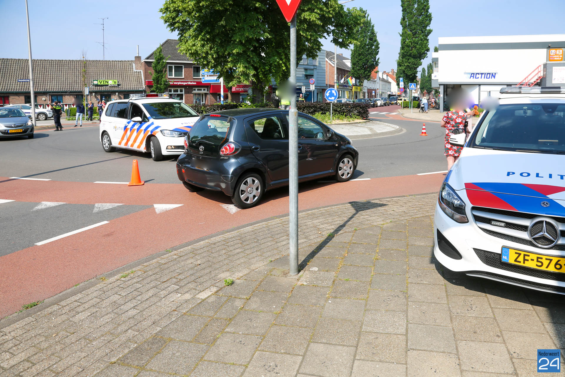 Woensdagmorgen is een fietsster, met een kindje achterop, door een personenauto aangereden op de rotonde Roermondseweg met de Graafschap Hornelaan in Weert.