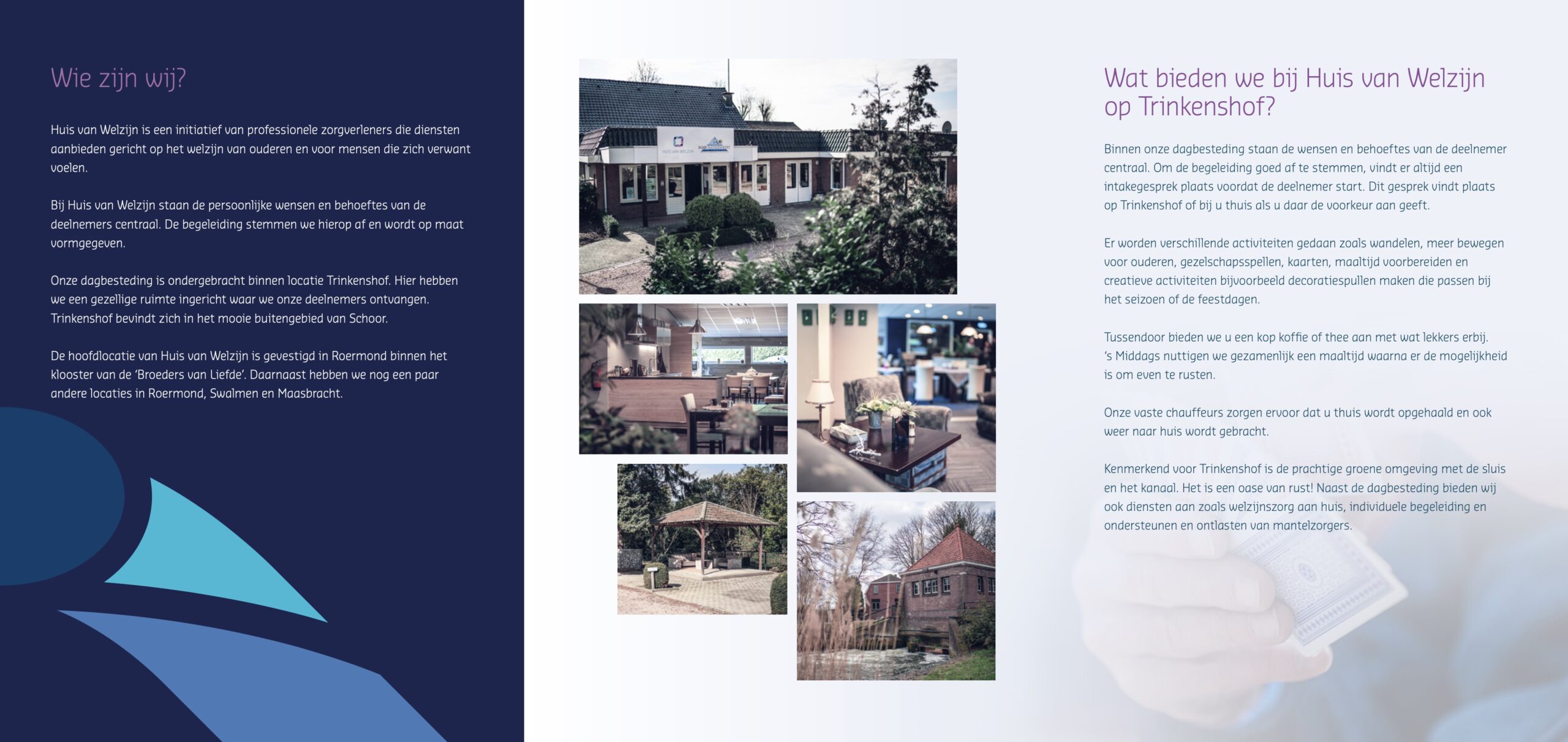 In Nederweert op locatie Trinkenshof biedt Huis van Welzijn dagbesteding aan ouderen en mensen die zich verwant voelen. In de gezellige ruimte worden verschillende activiteiten gedaan zoals gezelschapsspellen, creatieve en muzikale activiteiten, bewegen voor ouderen, samen de maaltijd voorbereiden of iets lekkers maken voor bij de koffie of thee. Als het weer het toelaat is er de ruimte om de activiteiten buiten plaats te laten vinden en kan er gewandeld worden in de omgeving.