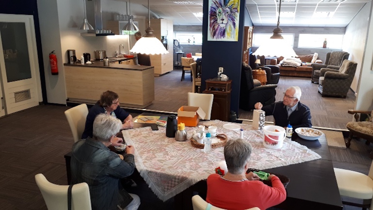 Tussendoor drinken ze samen een kop koffie of thee en tussen de middag nuttigen we gezamenlijk een maaltijd. Daarna is er de mogelijkheid om even te rusten.