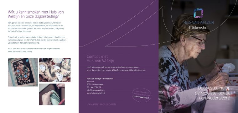 Kom gerust een keer een kijkje nemen en maak kennis met de locatie, de medewerkers en deelnemers. Meer informatie vind je in de folder. Ook kun je de website bezoeken: www.huisvanwelzijn.nl of bellen met 06-44272609.
