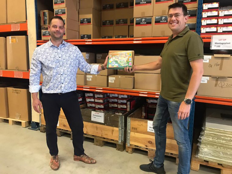 Firenzo uit Nederweert is het jongste lid van de Ondernemers Vereniging Nederweert (OVN). Speciaal voor deze gelegenheid overhandigd voorzitter van de vereniging Thijs Linsen een welkomstgeschenk in de vorm van het bordspel ‘Ontdek Nederweert’ aan oprichter Ernie Terwijn.