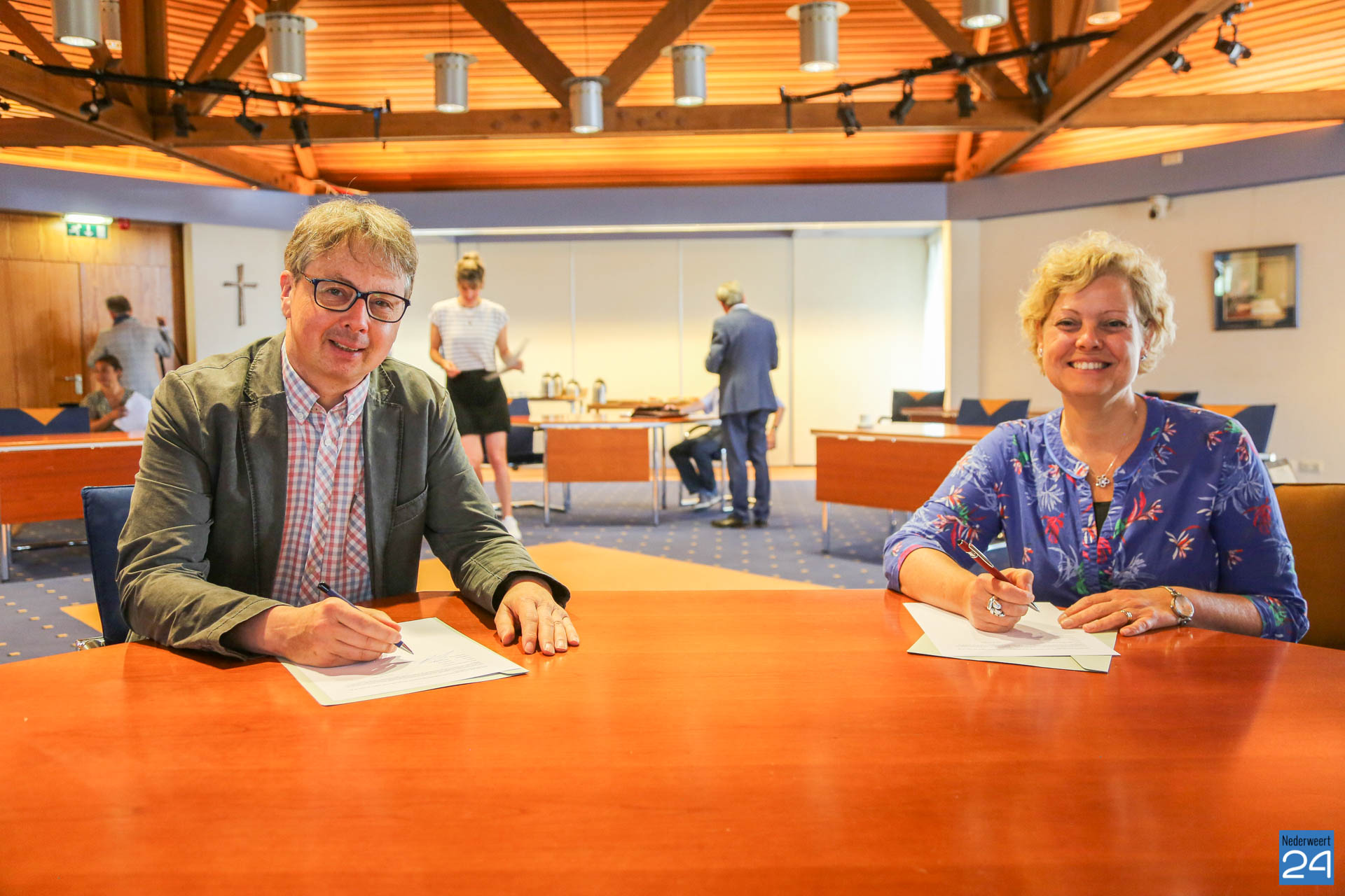 In de raadzaal van de gemeente Nederweert werden op 10 juni jl. de samenwerkingsafspraken ondertekend van de ‘Lokale Alliantie Veilig Financieel Ouder Worden Nederweert en Weert’. Afgevaardigden van 13 partijen uit Nederweert en Weert zetten hun handtekening onder het document waarin doelen en onderlinge afspraken staan om financieel misbruik bij ouderen tegen te gaan.
