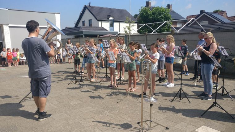 Om kinderen kennis te laten maken met diverse muziekinstrumenten, kon basisschool De Zonnehof in Leveroy in coronatijd genieten van raamconcerten. Muzikanten van Fanfare Concordia gaven samen met RICK op donderdag 10 juni de muziekles ‘anders dan anders’: voor het raam.