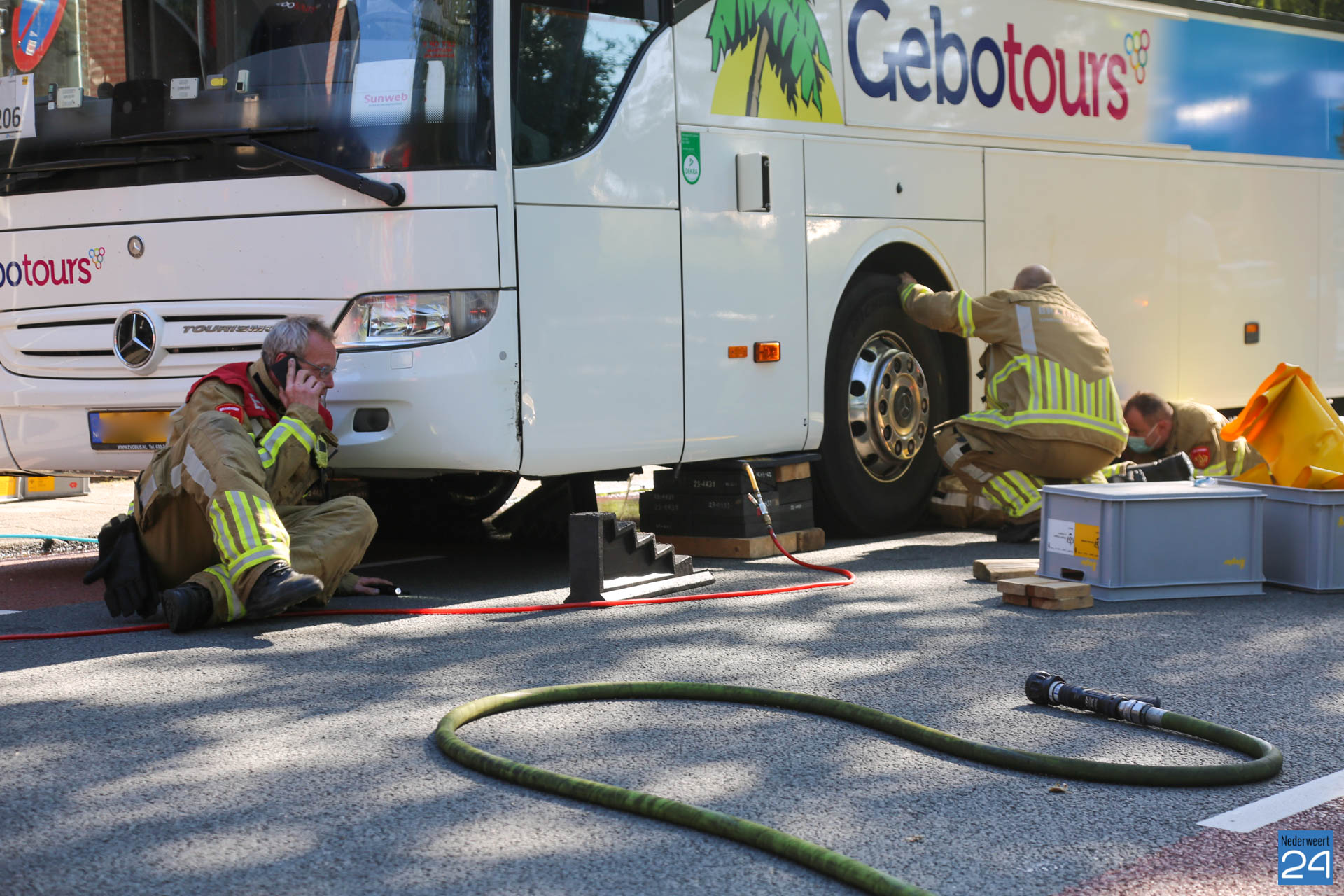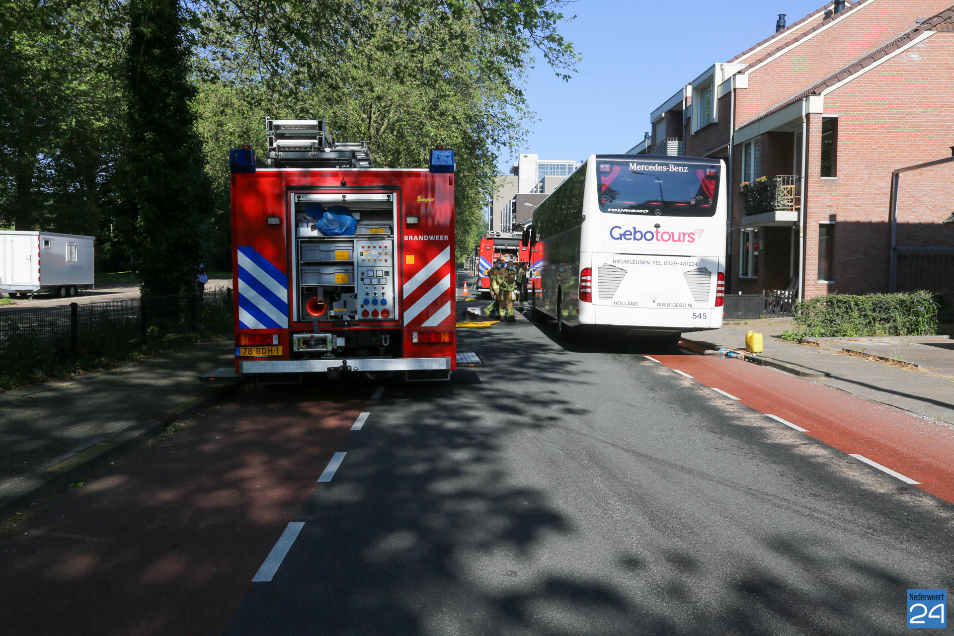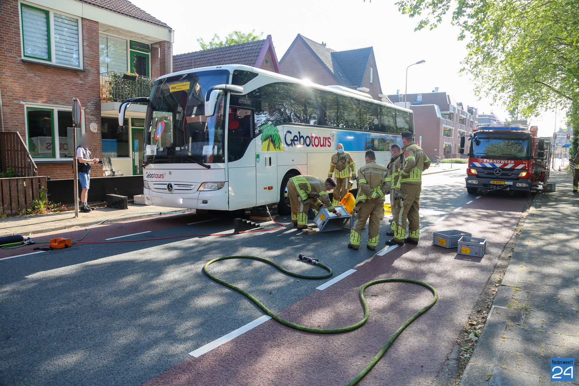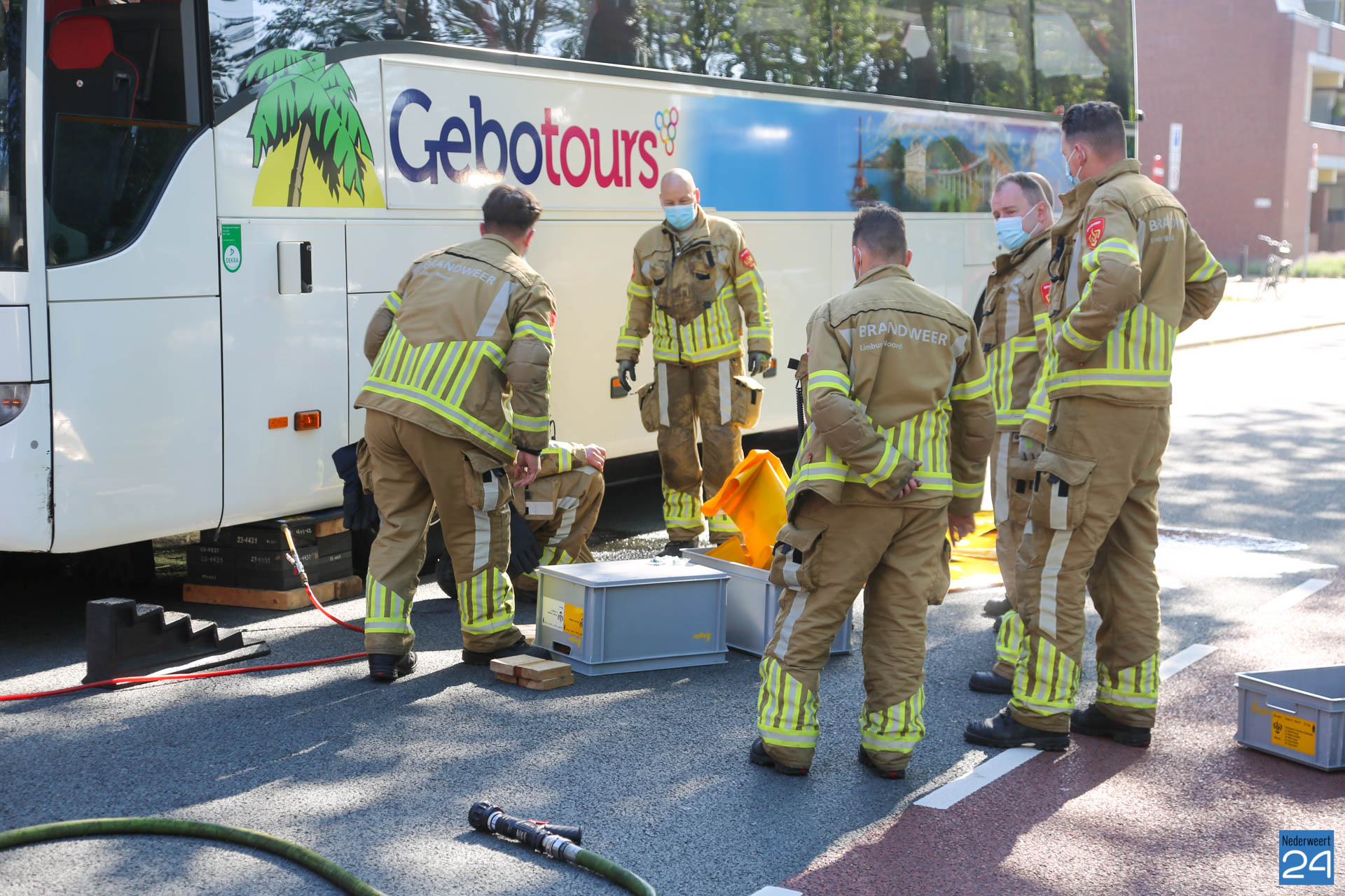 Dat gebeurde op de Parallelweg in Weert. De chauffeuse zag in haar spiegel dat haar voertuig vloeistof lekte. Ze dacht aan water, maar toen ze polshoogte ging nemen zag ze dat er een flinke brandstof lekkage gaande was.