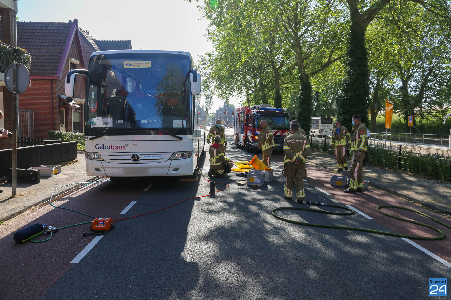 Een touringcar, welke werd ingezet als NS-bus, heeft zondagmorgen een grote hoeveelheid brandstof verloren.