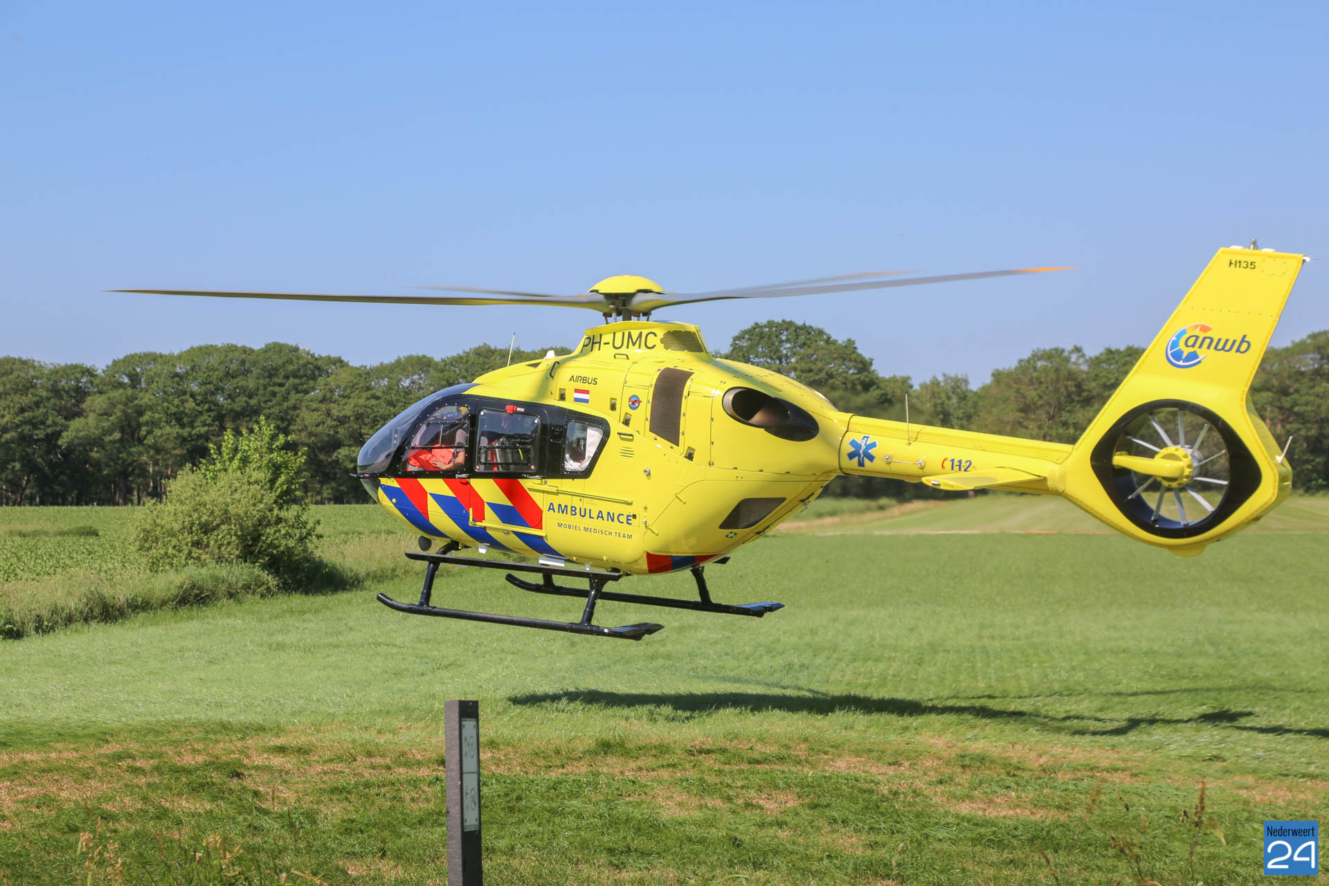 De hulpdiensten kwamen met meerdere ambulances, politievoertuigen en een traumahelikopter ter plaatse voor medische hulpverlening.