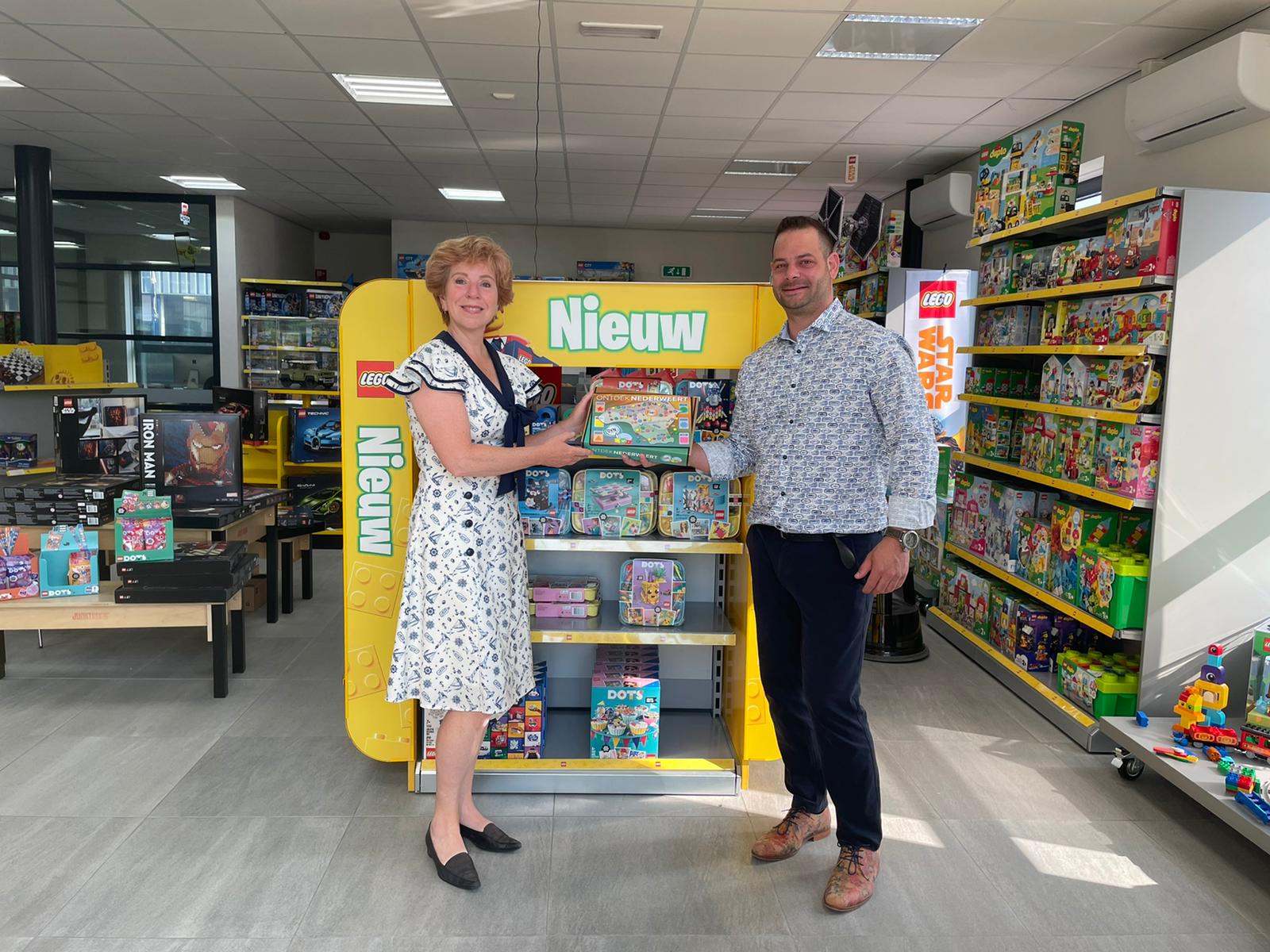 ToyPro uit Nederweert is het jongste lid van de Ondernemers Vereniging Nederweert (OVN). Speciaal voor deze gelegenheid overhandigd voorzitter van de vereniging Thijs Linsen een welkomstgeschenk aan eigenaar Karin Wering in de vorm van het bordspel ‘Ontdek Nederweert’.