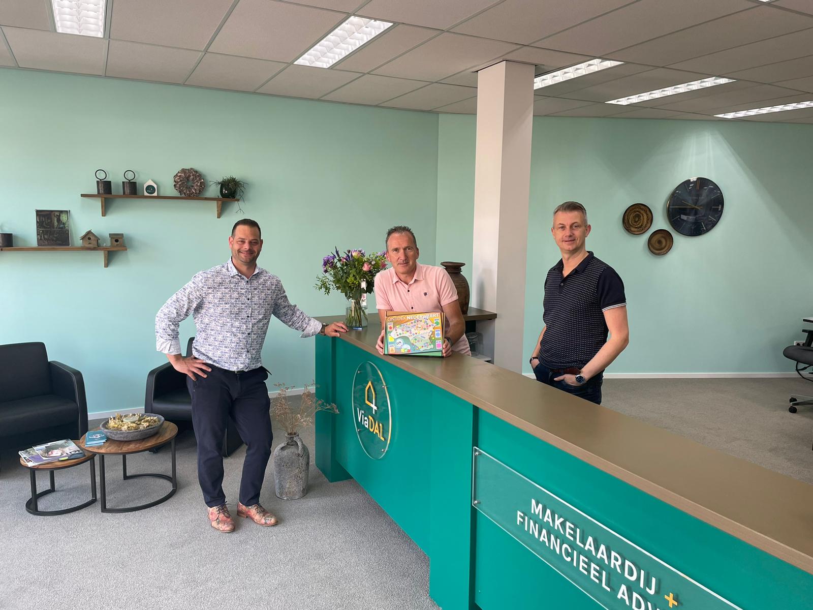 ViaDal uit Nederweert is het jongste lid van de Ondernemers Vereniging Nederweert (OVN). Speciaal voor deze gelegenheid overhandigd voorzitter van de vereniging Thijs Linsen een welkomstgeschenk in de vorm van het bordspel ‘Ontdek Nederweert’.