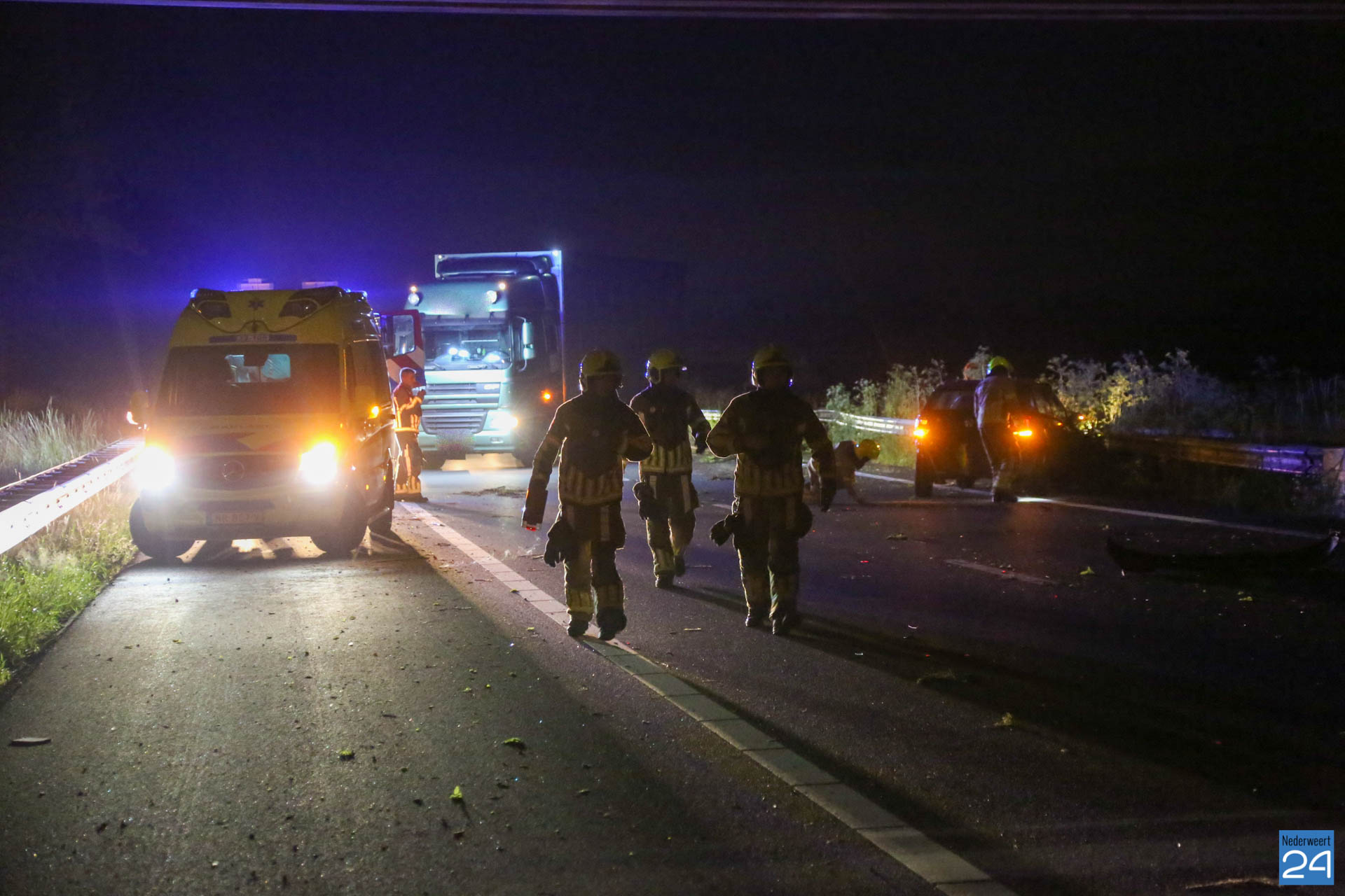 De weg werd tijdelijk afgesloten. Dat zorgde voor een flinke vertraging. De brandweer van Nederweert kwam ter plaatse om de voertuigen veilig te stellen. Een berger is opgeroepen om de beschadigde voertuigen op te halen.