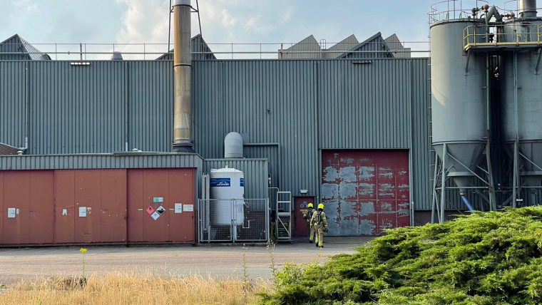 De brandweer is vrijdagavond met diverse voertuigen uitgerukt naar de Lozerweg in Weert voor een melding betreffende zwarte rook uit een toren van een bedrijfspand.