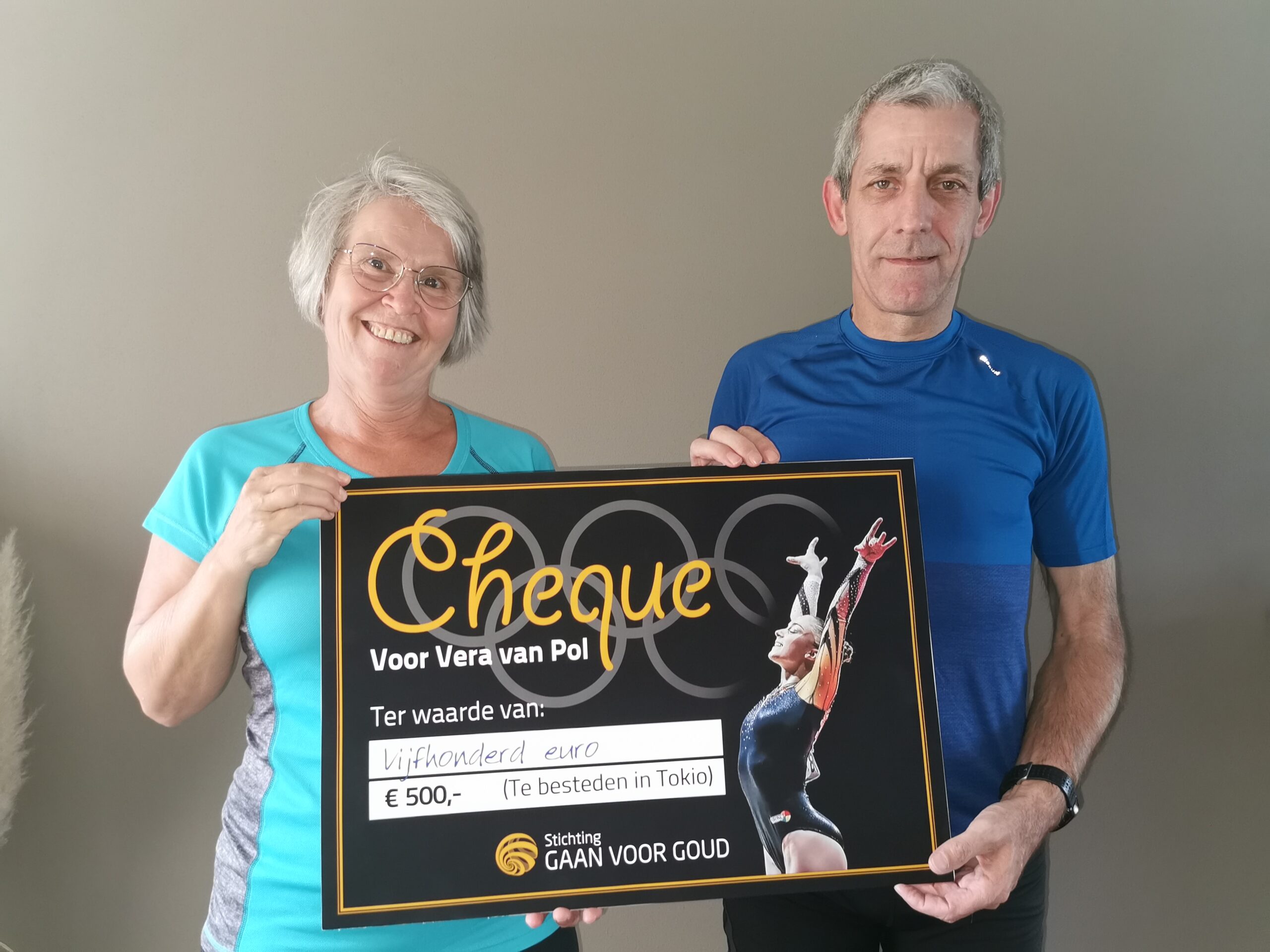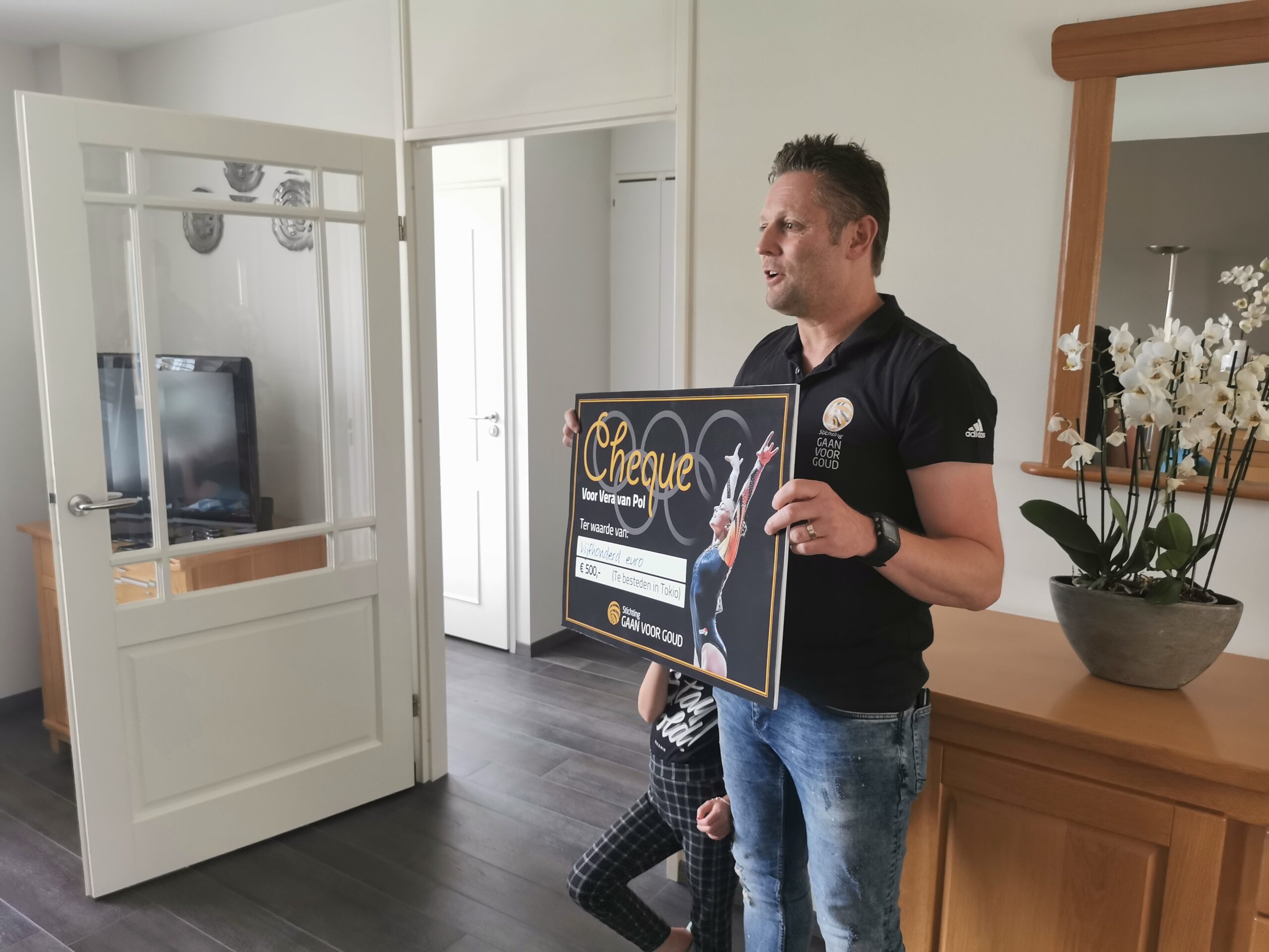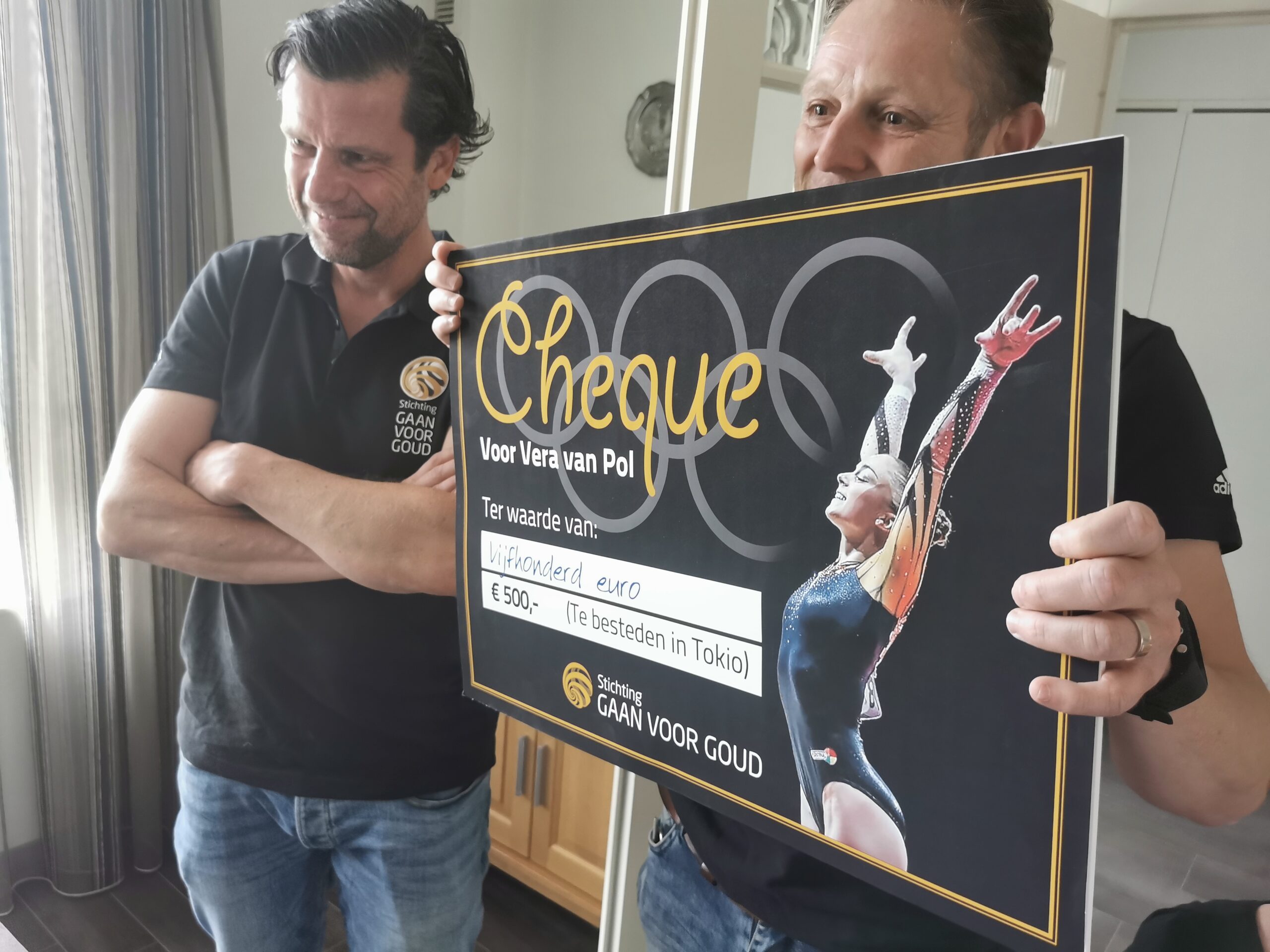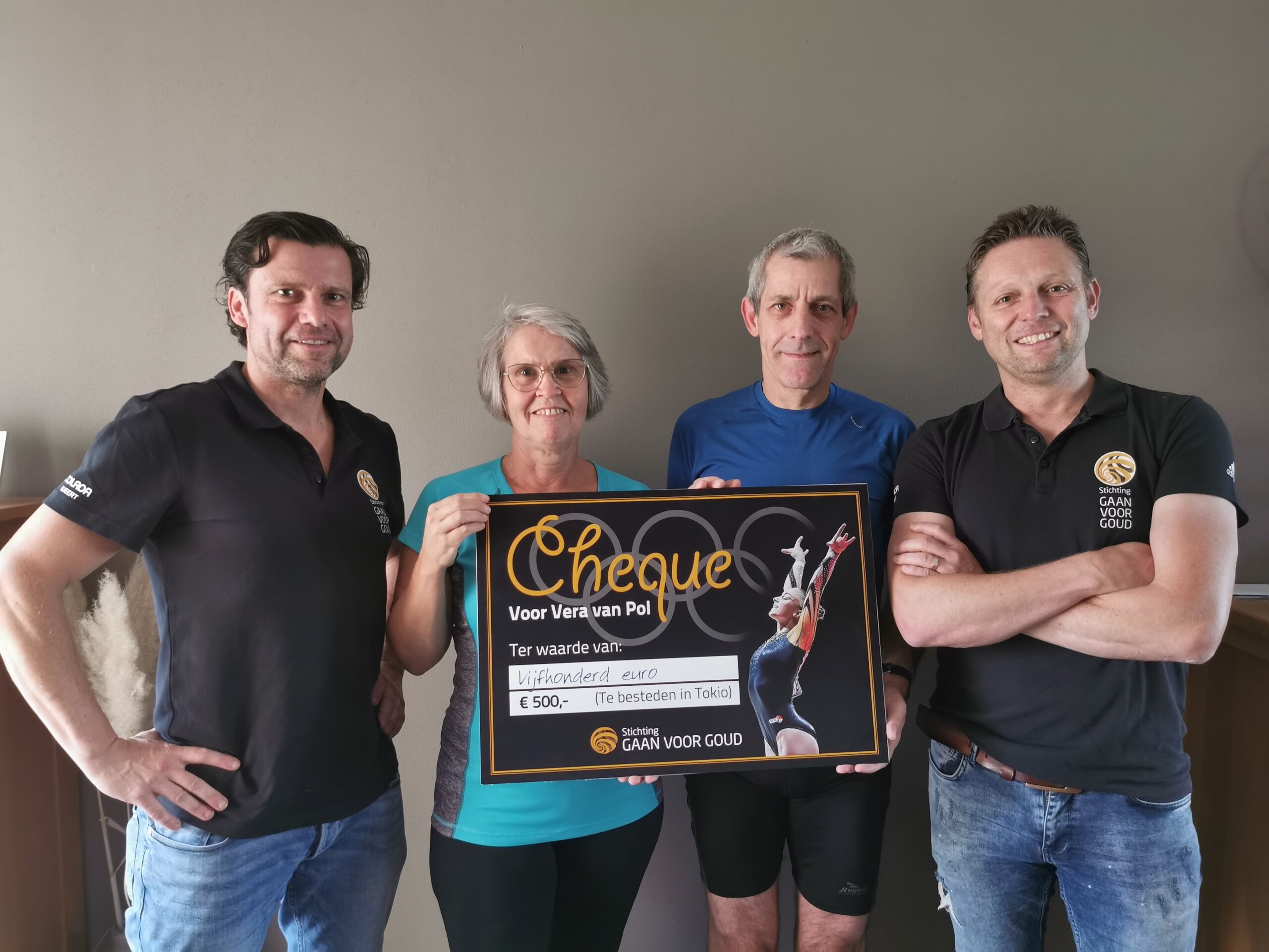 Turnster Vera van Pol is dinsdagavond verrast met een cheque t.w.v. € 500,- van Stichting Gaan voor Goud. Via een telefonische videoverbinding bij haar ouders werd de Tungelroyse op de hoogte gebracht. Vera ontvangt de financiële bijdrage als aanmoediging én voor het feit dat ze zich voor de tweede keer heeft weten te plaatsen voor de Olympische Spelen.