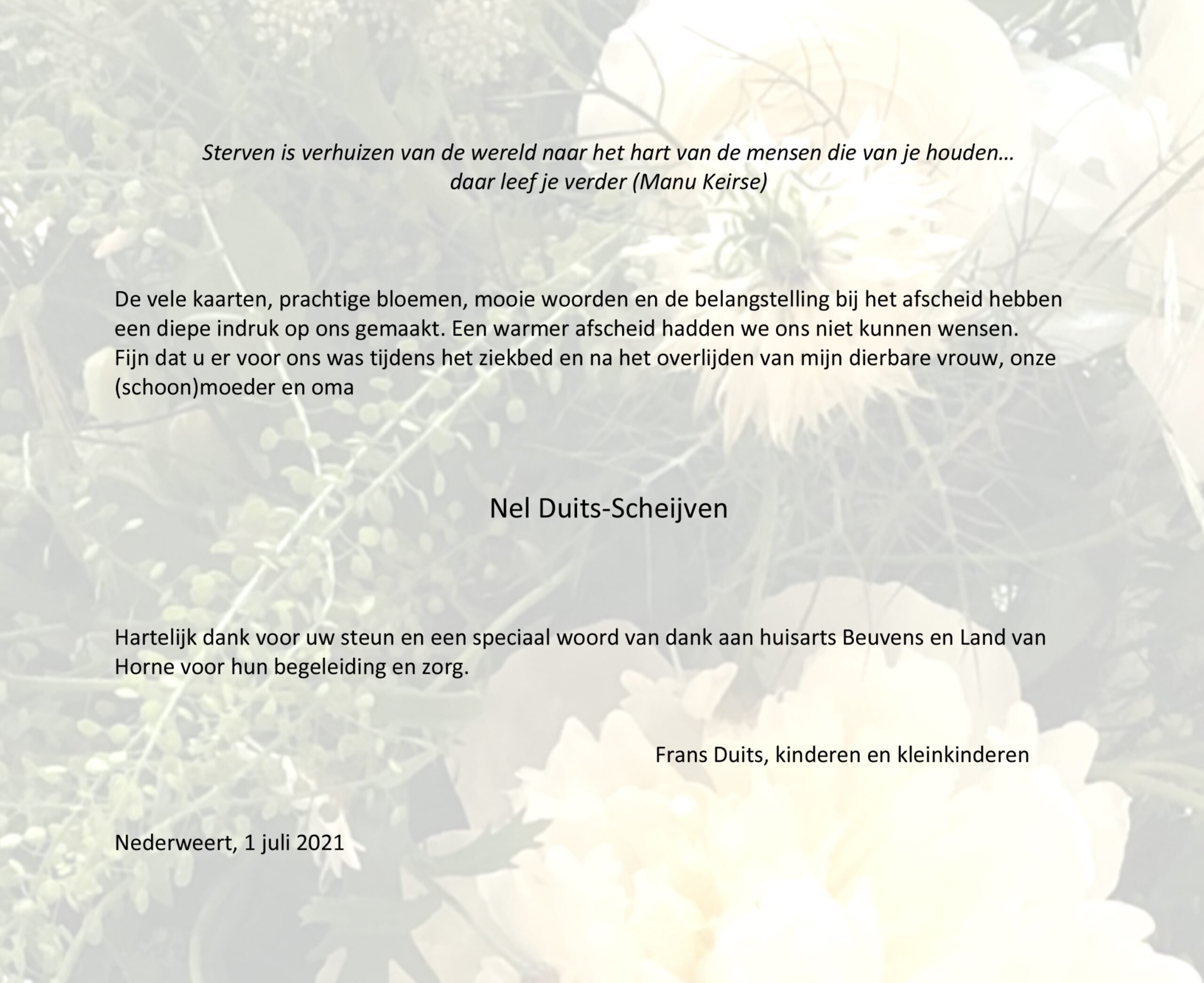 Dankbetuiging Nel Duits-Scheijven