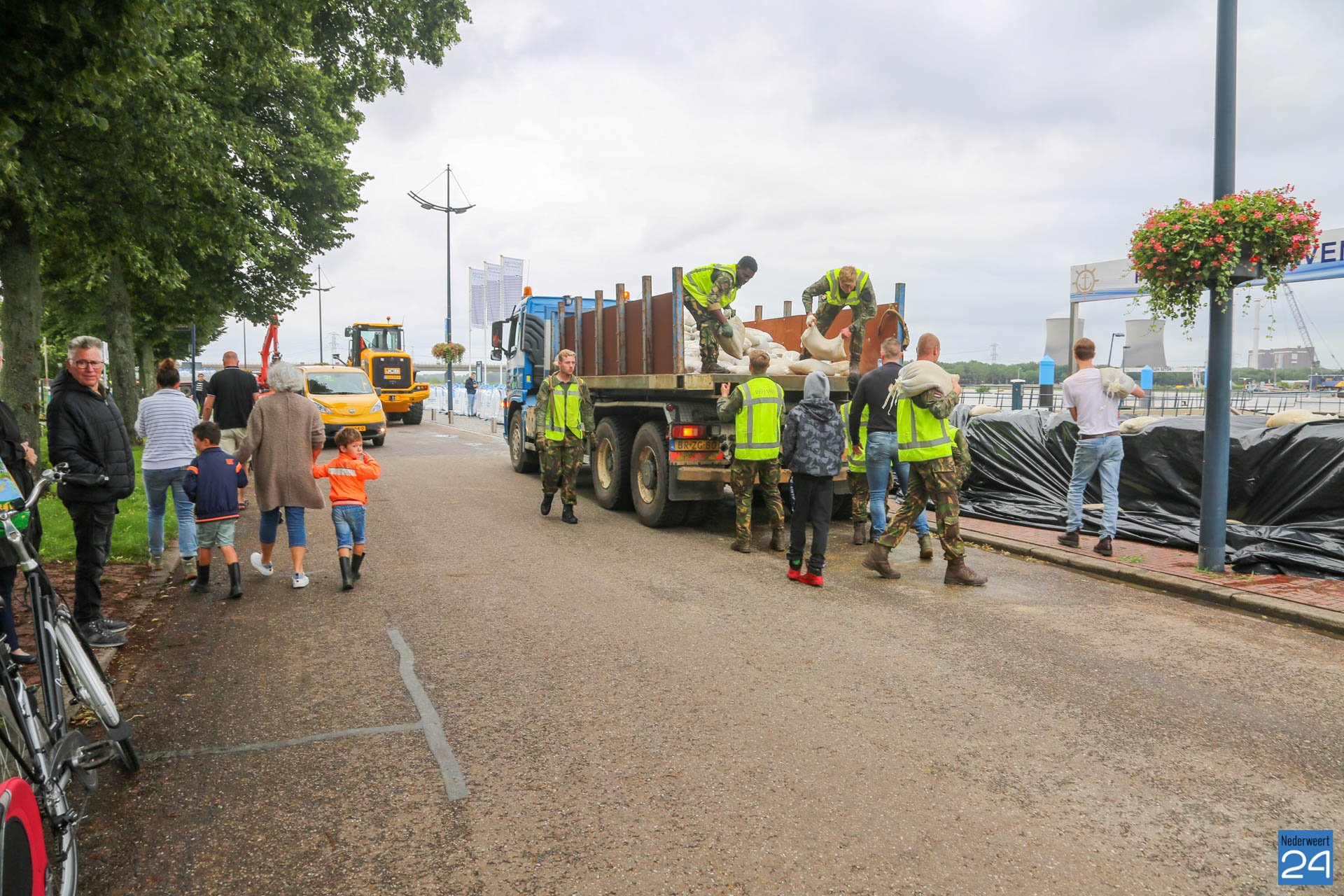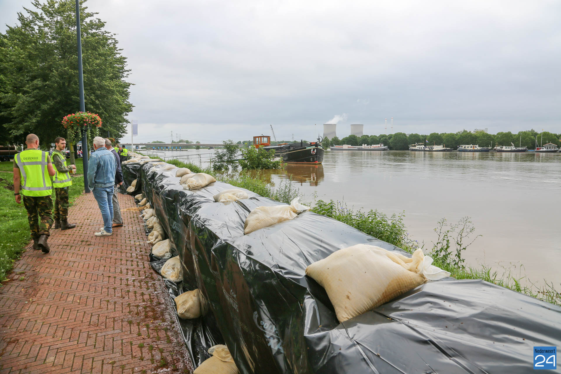Om wateroverlast te voorkomen, verstevigt Defensie met behulp van zandzakken de dijkring tussen Thorn en Wessem. Het gaat hier om een lengte van 1,1 kilometer tussen Waage Naak en de Maasboulevard.