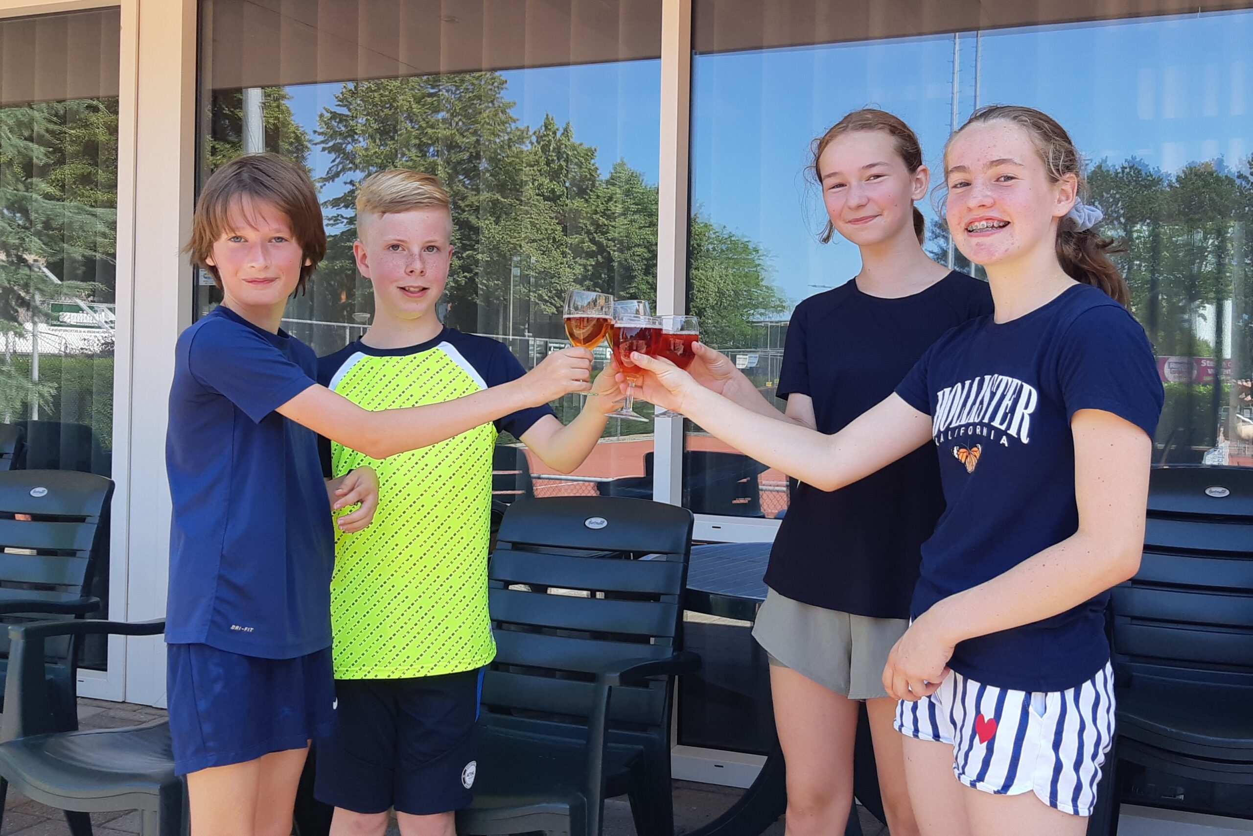 Mette en Nelle gingen in de 2e dubbel direct heel voortvarend te werk en wonnen snel de 1e set en ook de 2e set ging goed. De jongens moesten echt knokken, de 1e set werd een super spannende tiebreak gewonnen. Toen de meisjes ook de 2e set wonnen was de buit al binnen. Dat merkten ook de jongens, want de 2e set ging daar een stuk makkelijker omdat de weerstand gebroken was. Zo werd de einduitslag 4-2 en daarmee een verdiend kampioenschap.