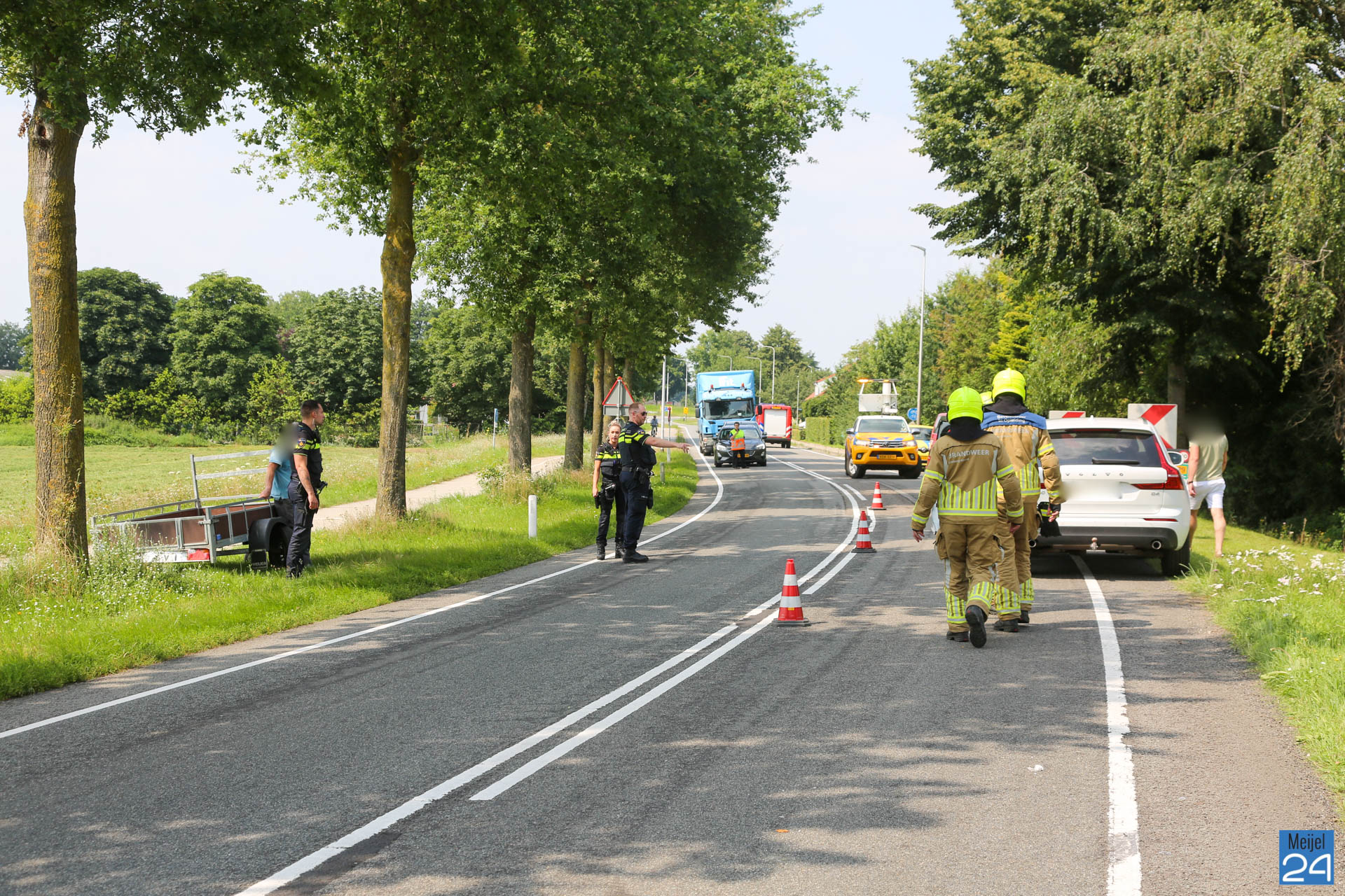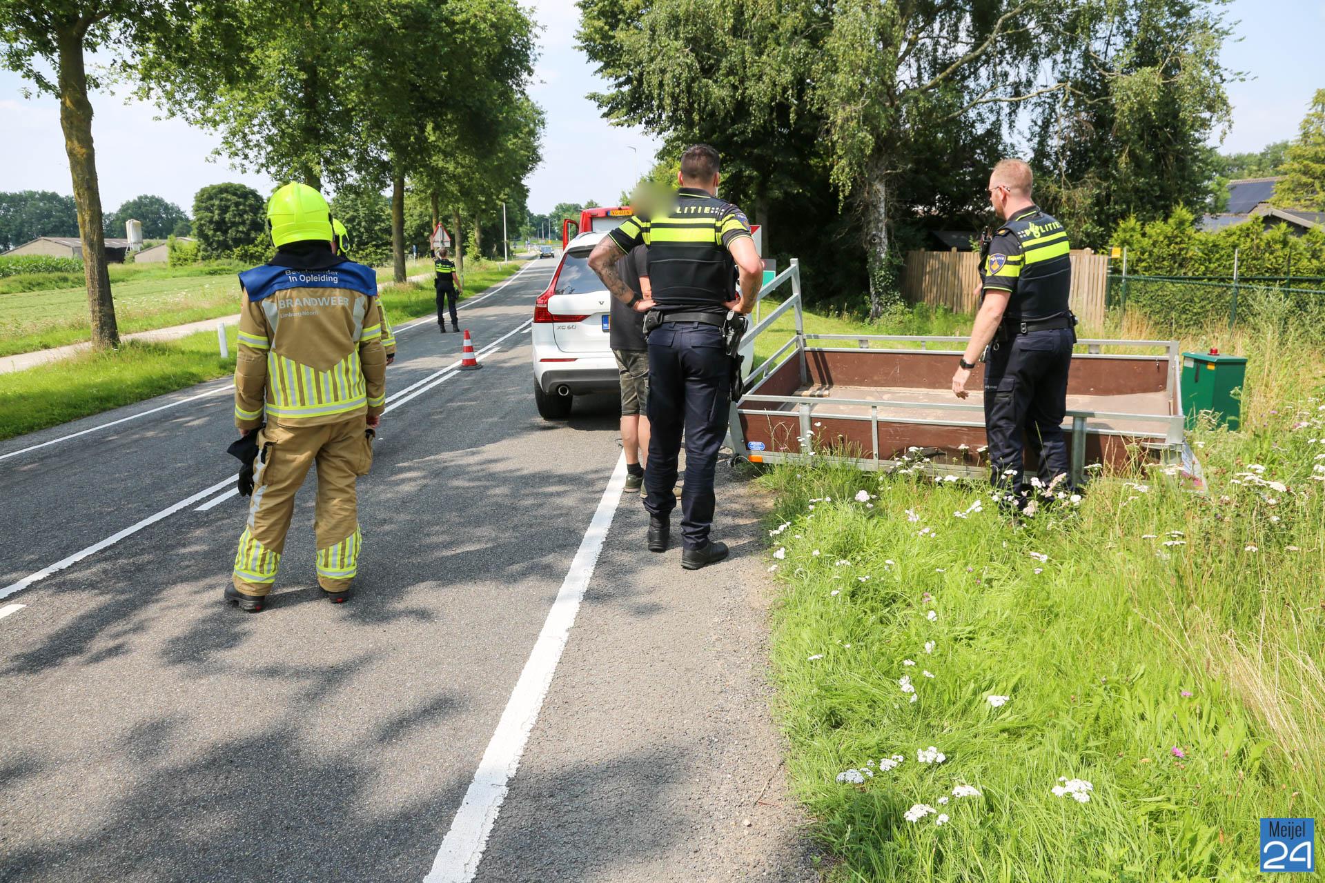 Uit voorzorg werd buiten de politie en een ambulance ook de brandweer gealarmeerd. Deze heeft de situatie veiliggesteld. Eén van de betrokkenen is door ambulancemedewerkers gecontroleerd op verwondingen. Zover bekend hoefde de man niet mee naar het ziekenhuis. Wegbeheerders van de Provincie Limburg hebben zorg gedragen voor het overige verkeer.