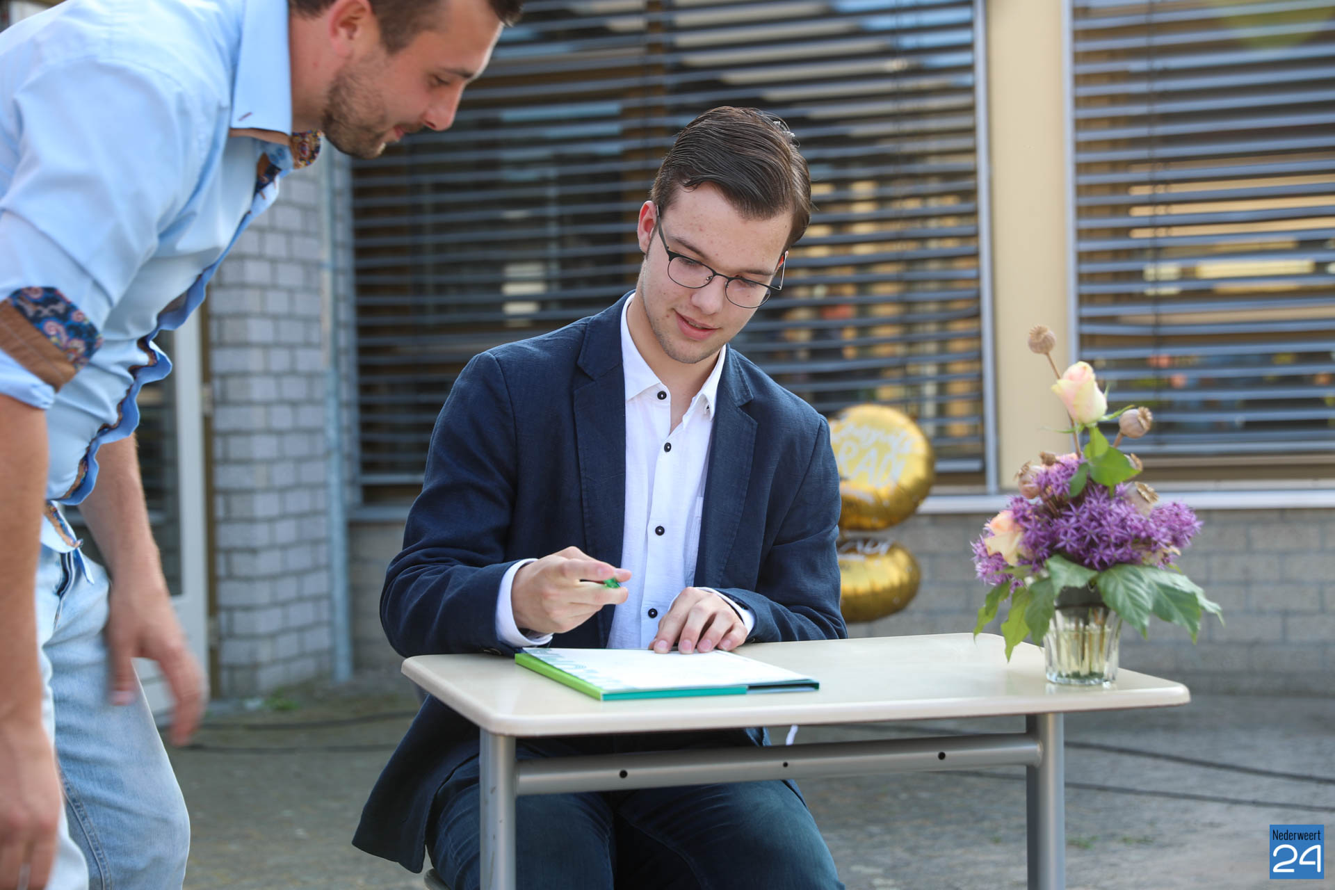 In de avond mochten de leerlingen uit de drie examenklassen, iedere klas op een eigen tijdstip, hun felbegeerde papiertje in ontvangst nemen. De uitreiking vond op het schoolplein plaats. Diverse leerlingen slaagden cum laude.