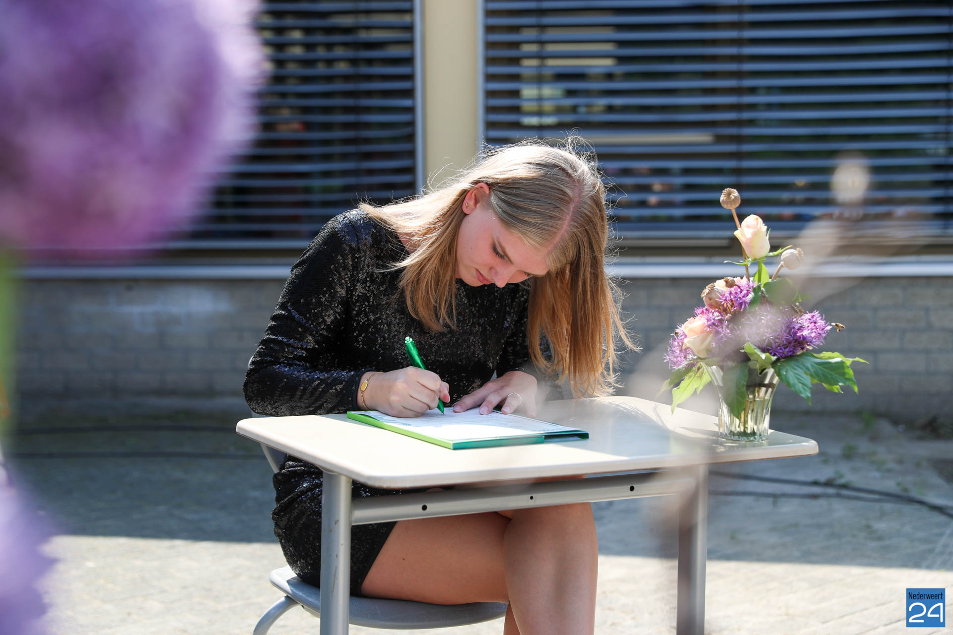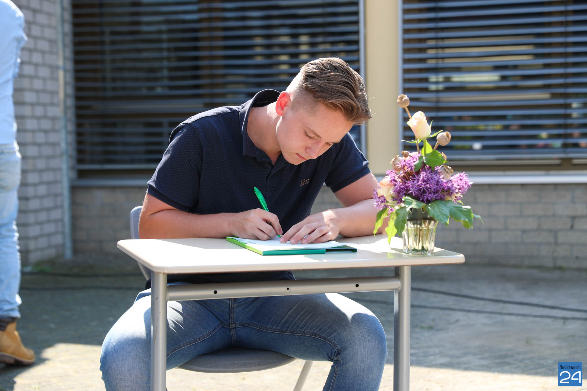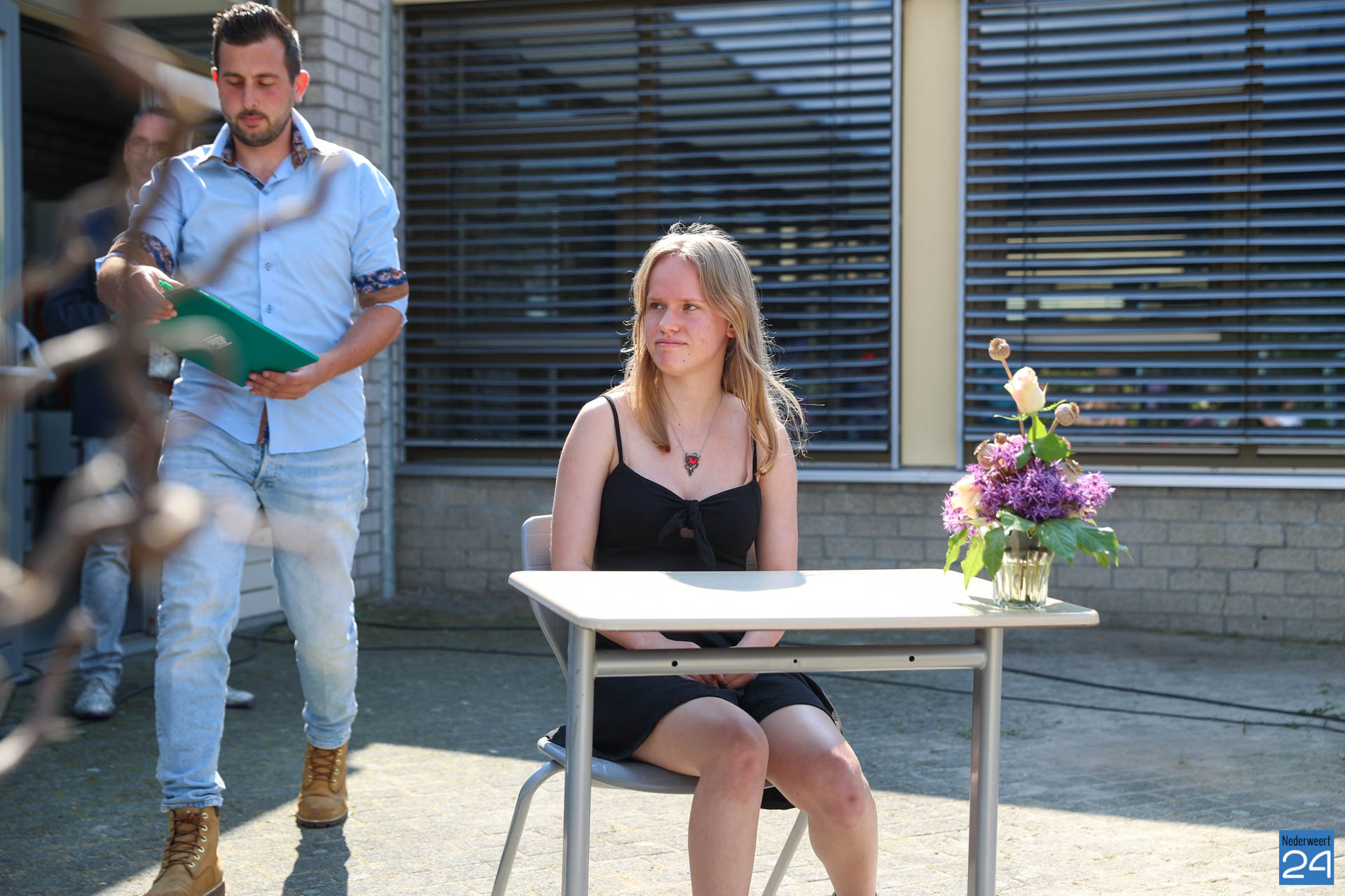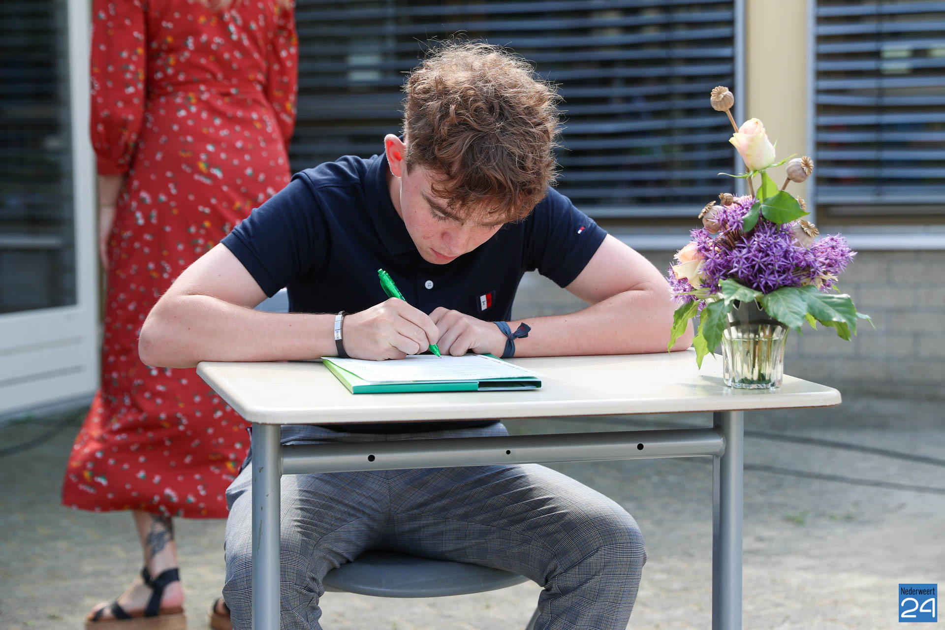 In de avond mochten de leerlingen uit de drie examenklassen, iedere klas op een eigen tijdstip, hun felbegeerde papiertje in ontvangst nemen. De uitreiking vond op het schoolplein plaats. Diverse leerlingen slaagden cum laude.