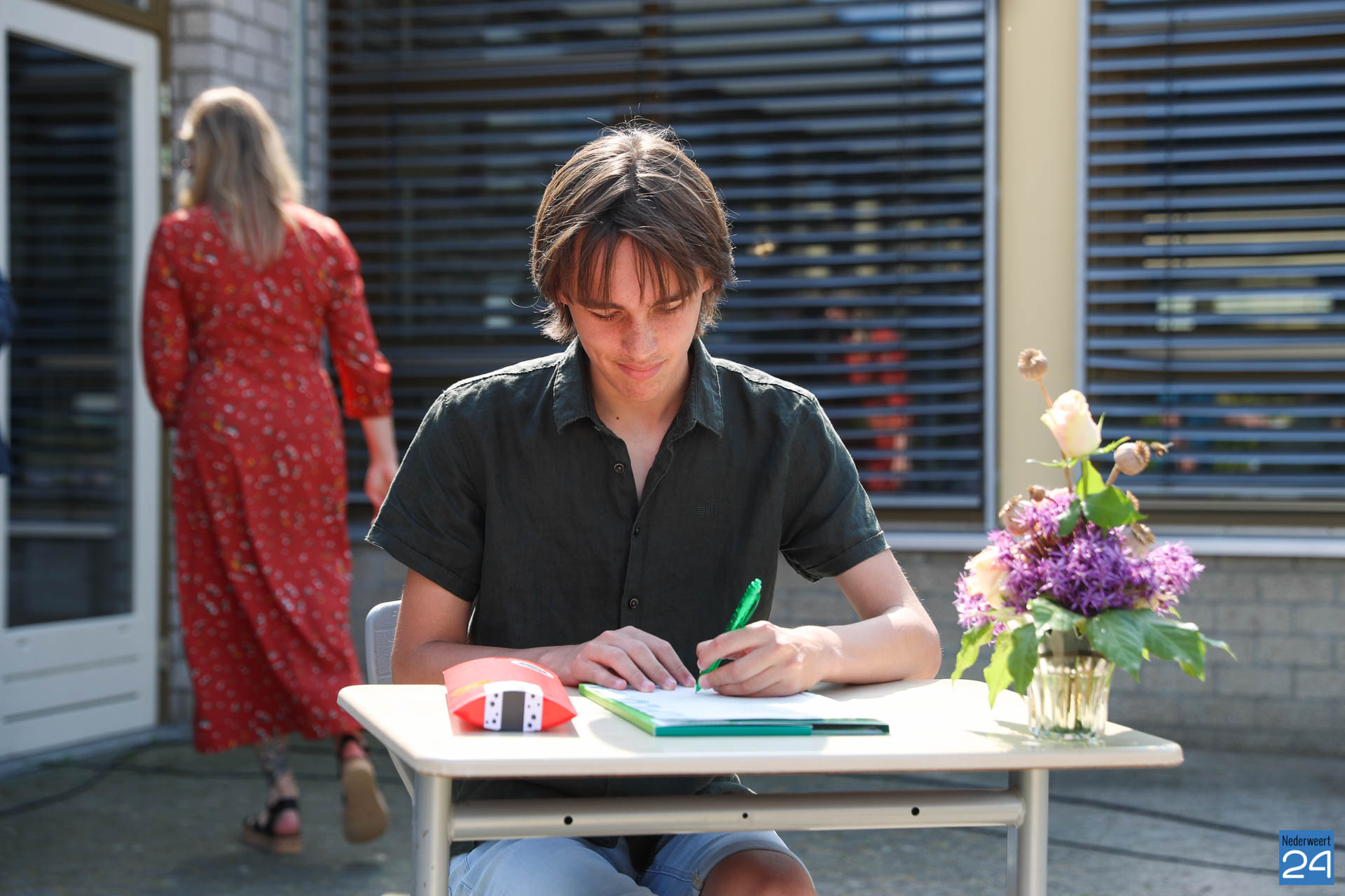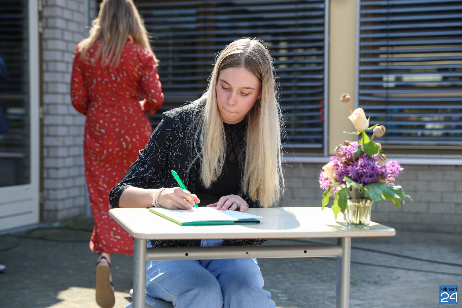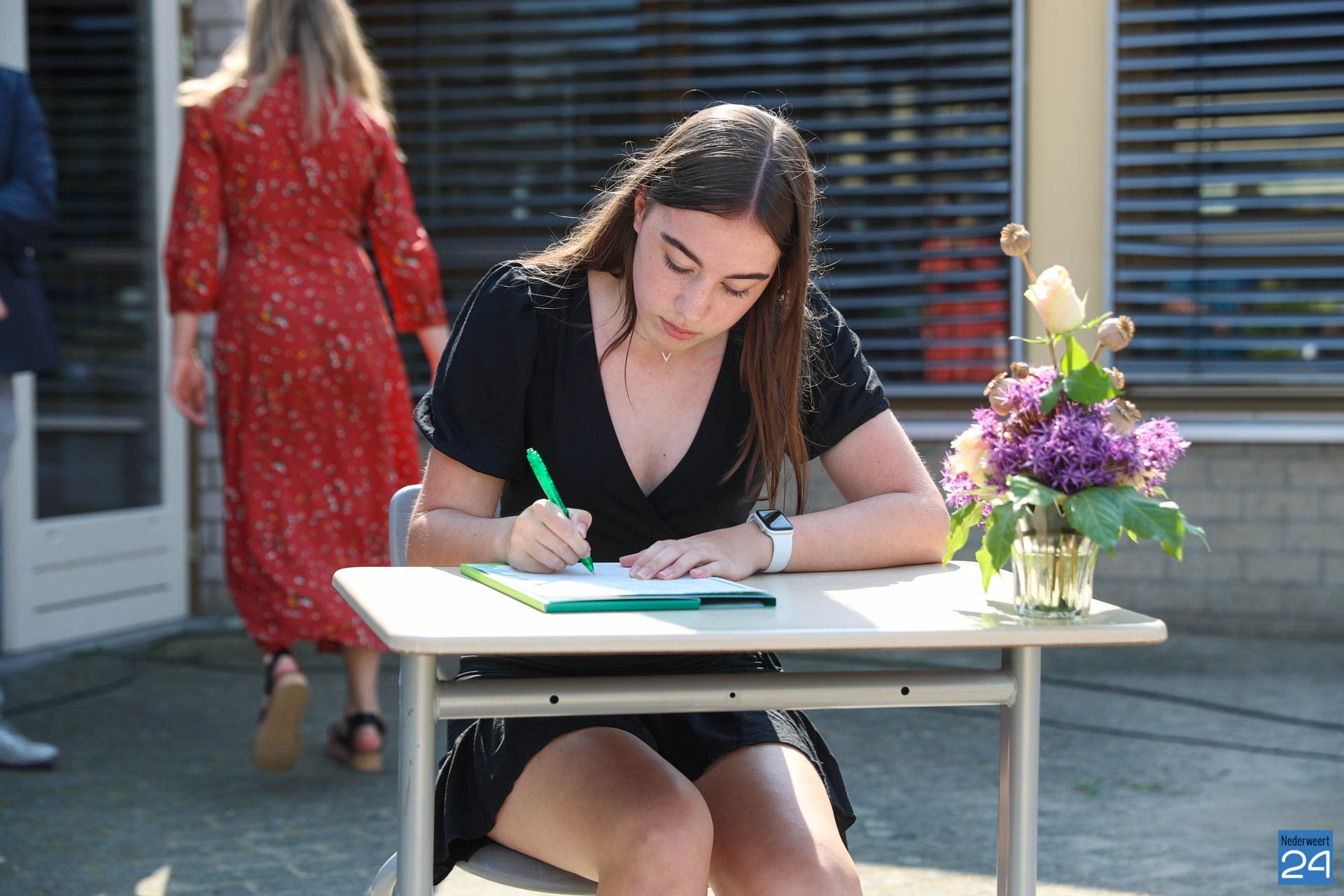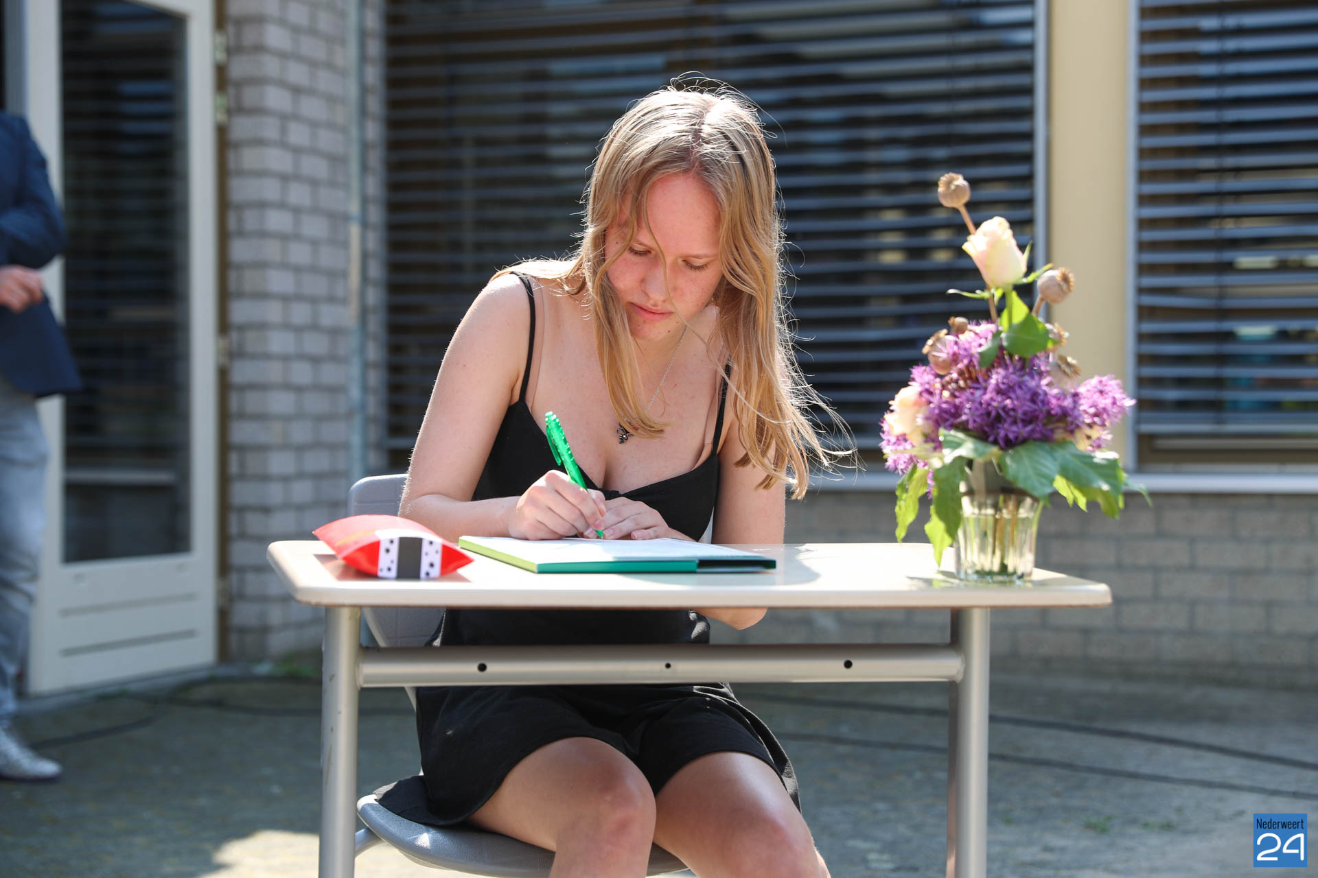 In de avond mochten de leerlingen uit de drie examenklassen, iedere klas op een eigen tijdstip, hun felbegeerde papiertje in ontvangst nemen. De uitreiking vond op het schoolplein plaats. Diverse leerlingen slaagden cum laude.