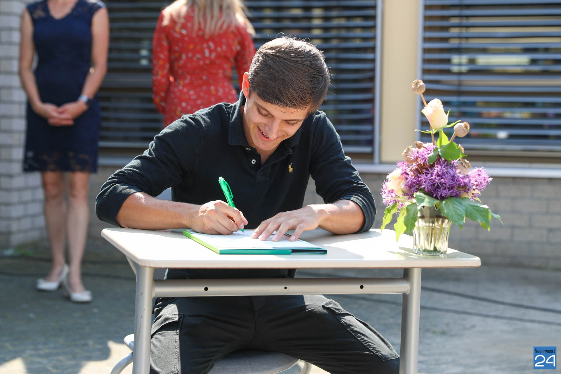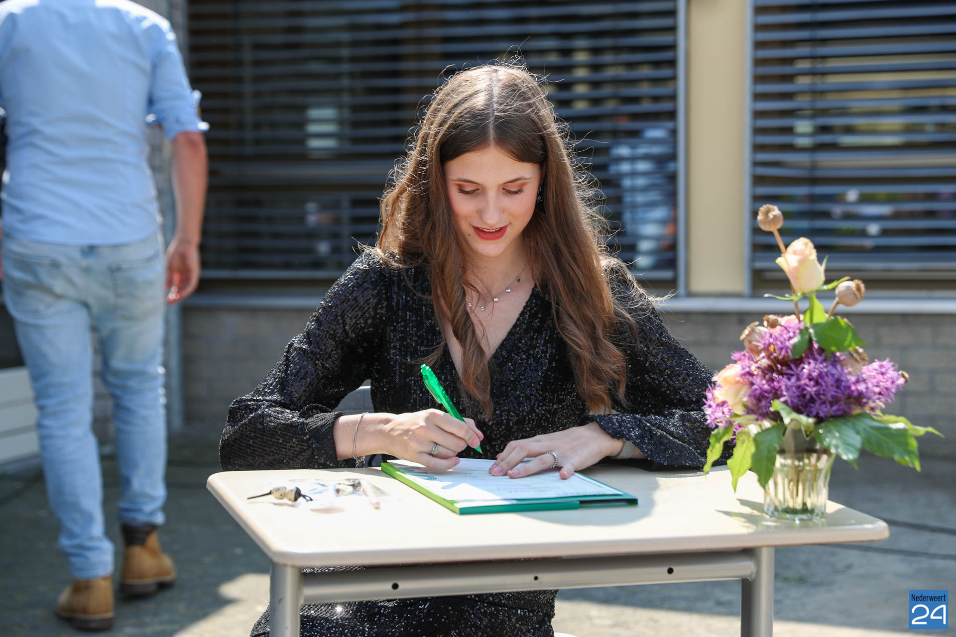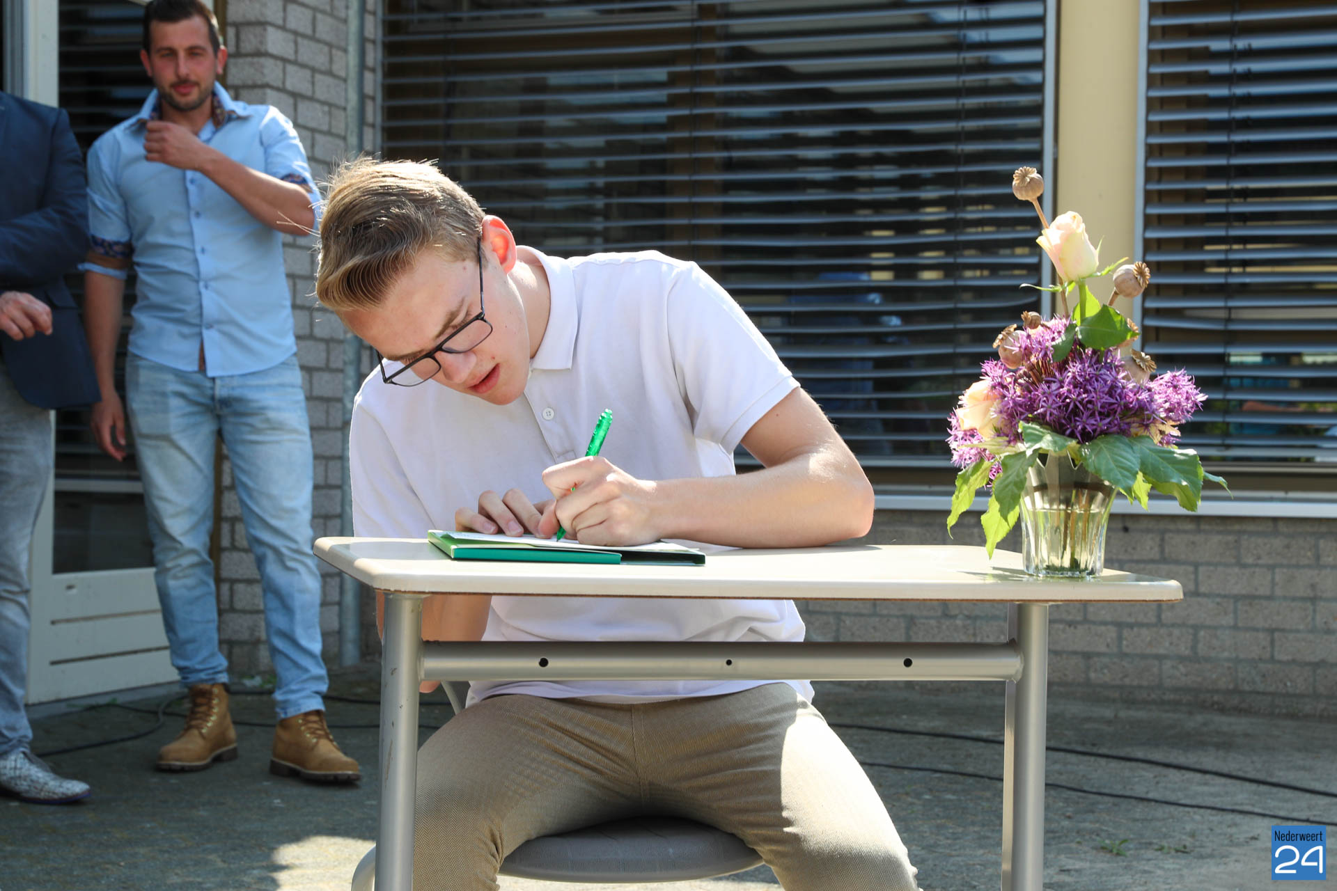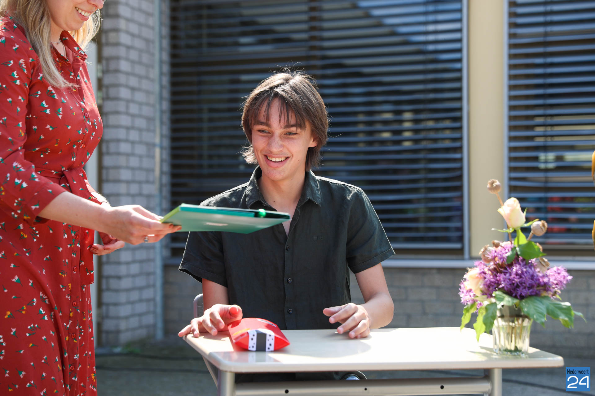 In de avond mochten de leerlingen uit de drie examenklassen, iedere klas op een eigen tijdstip, hun felbegeerde papiertje in ontvangst nemen. De uitreiking vond op het schoolplein plaats. Diverse leerlingen slaagden cum laude.