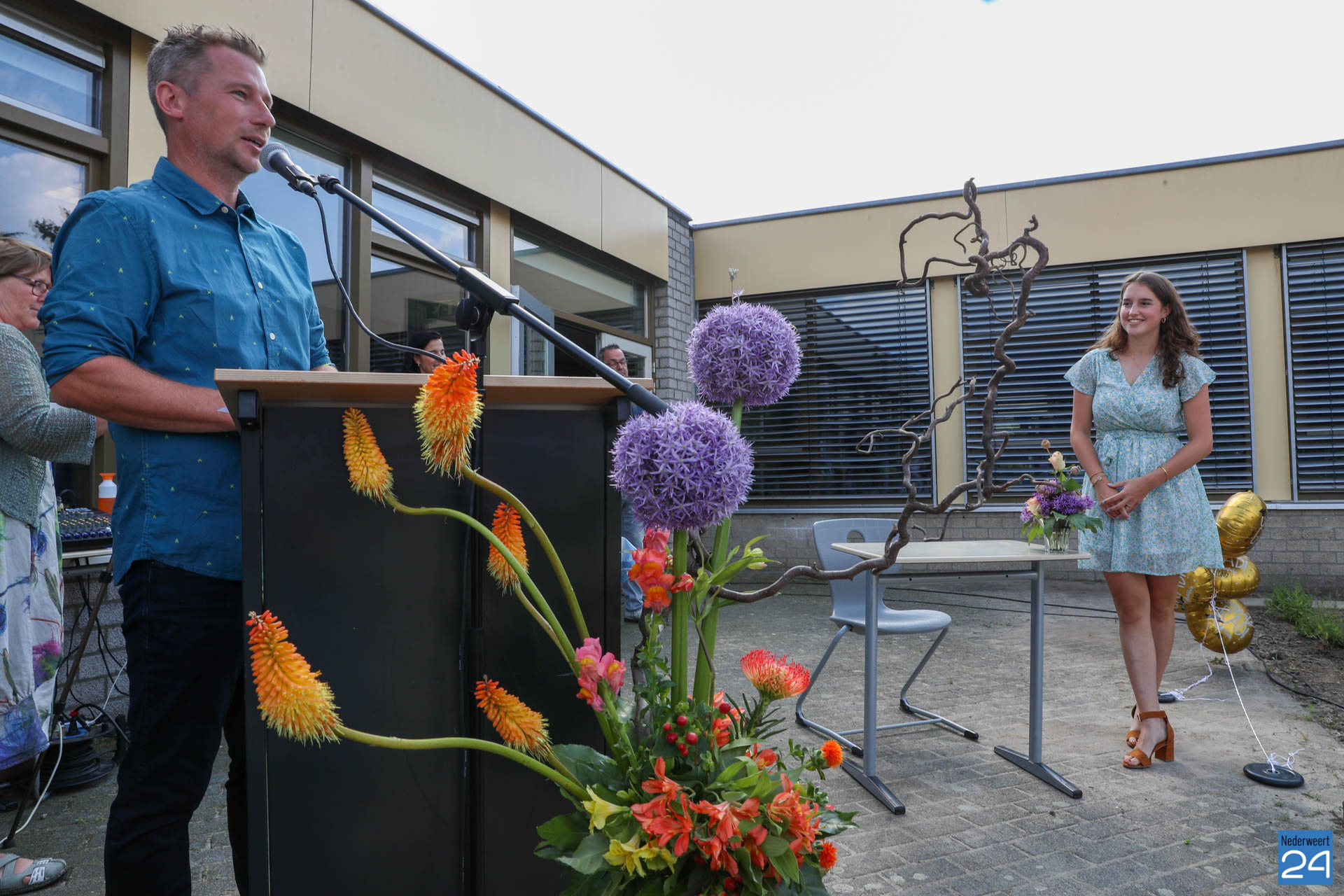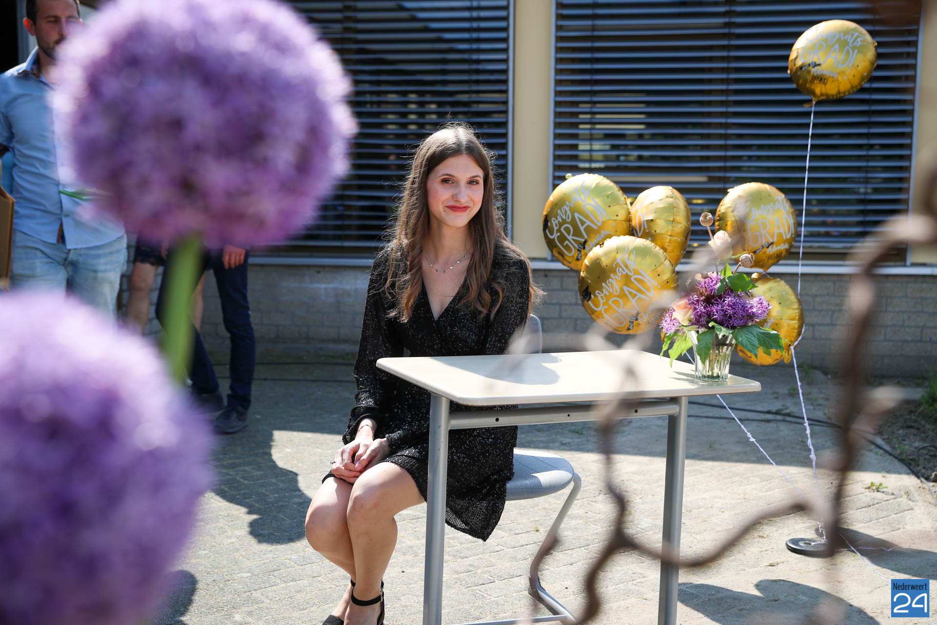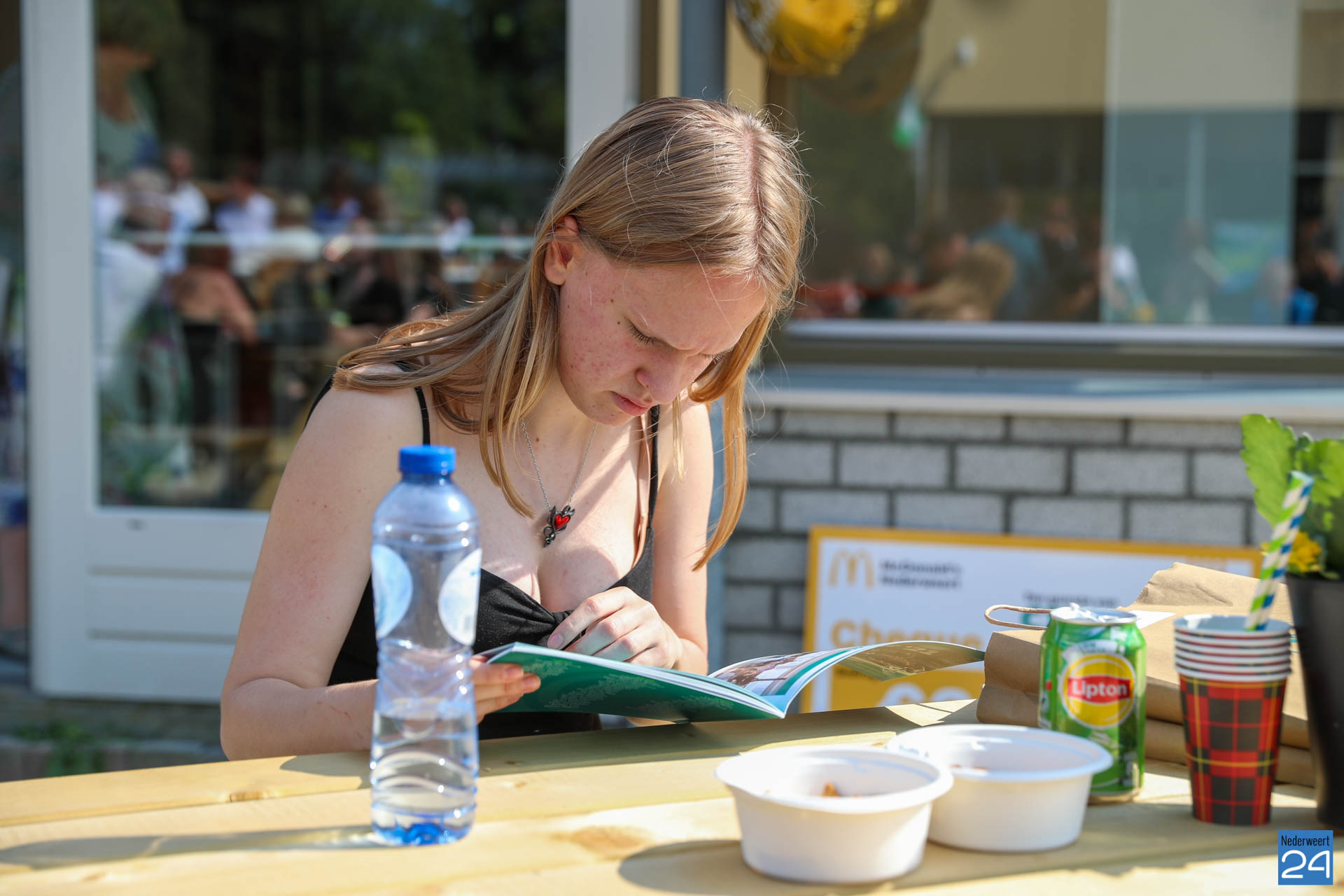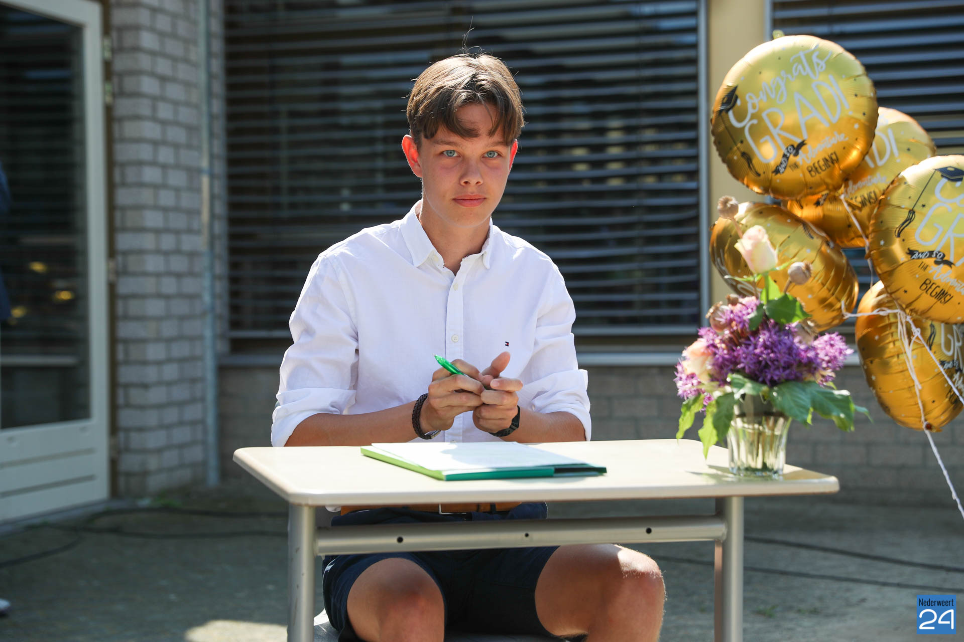 In de avond mochten de leerlingen uit de drie examenklassen, iedere klas op een eigen tijdstip, hun felbegeerde papiertje in ontvangst nemen. De uitreiking vond op het schoolplein plaats. Diverse leerlingen slaagden cum laude.