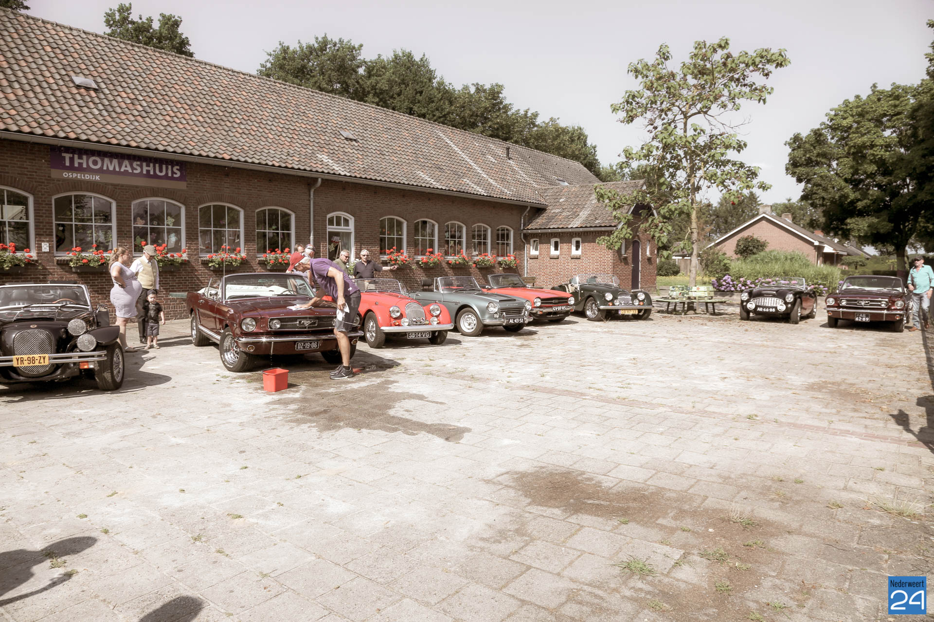 Een flink aantal oldtimer cabrio’s verzamelden in de ochtend op het plein vóór het Thomashuis. De bewoners dronken met de chauffeurs een kopje koffie en aten een heerlijk stuk vlaai. Hierna ging de toertocht van start.