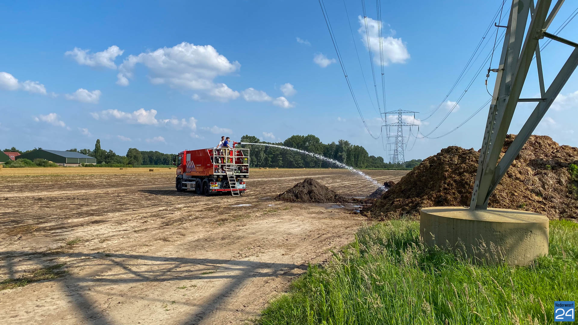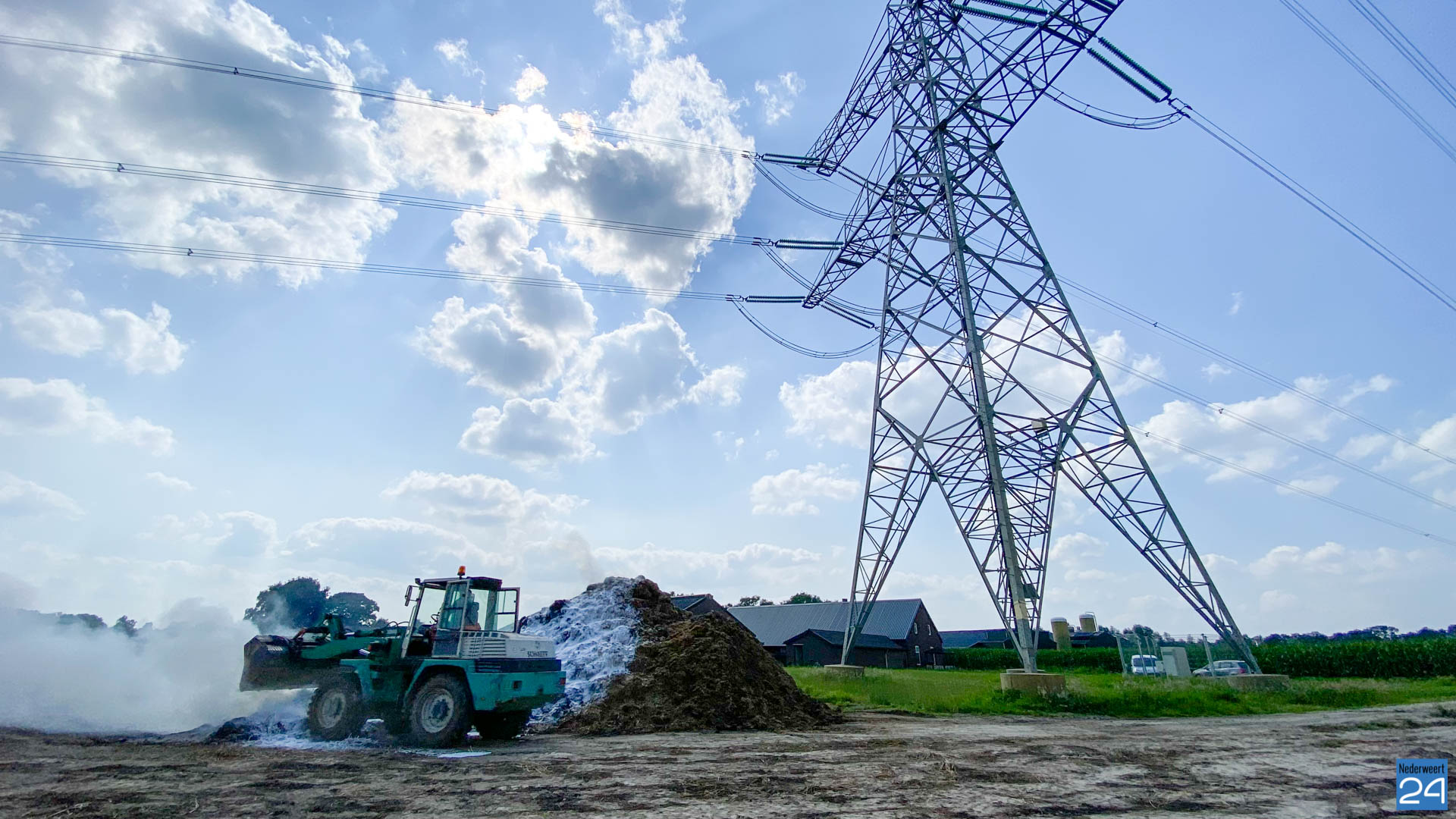 Donderdagmiddag is er smeulbrand ontstaan op een persceel aan de Oudenhofweg tussen Baexem en Leveroy. De mesthoop lag precies onder een hoogspanningsmast.
