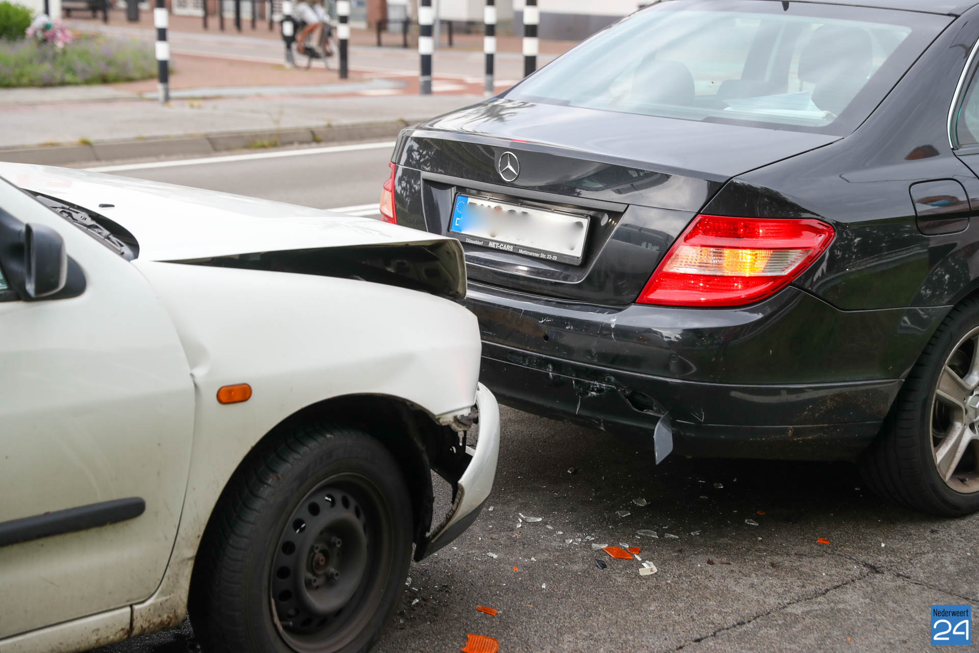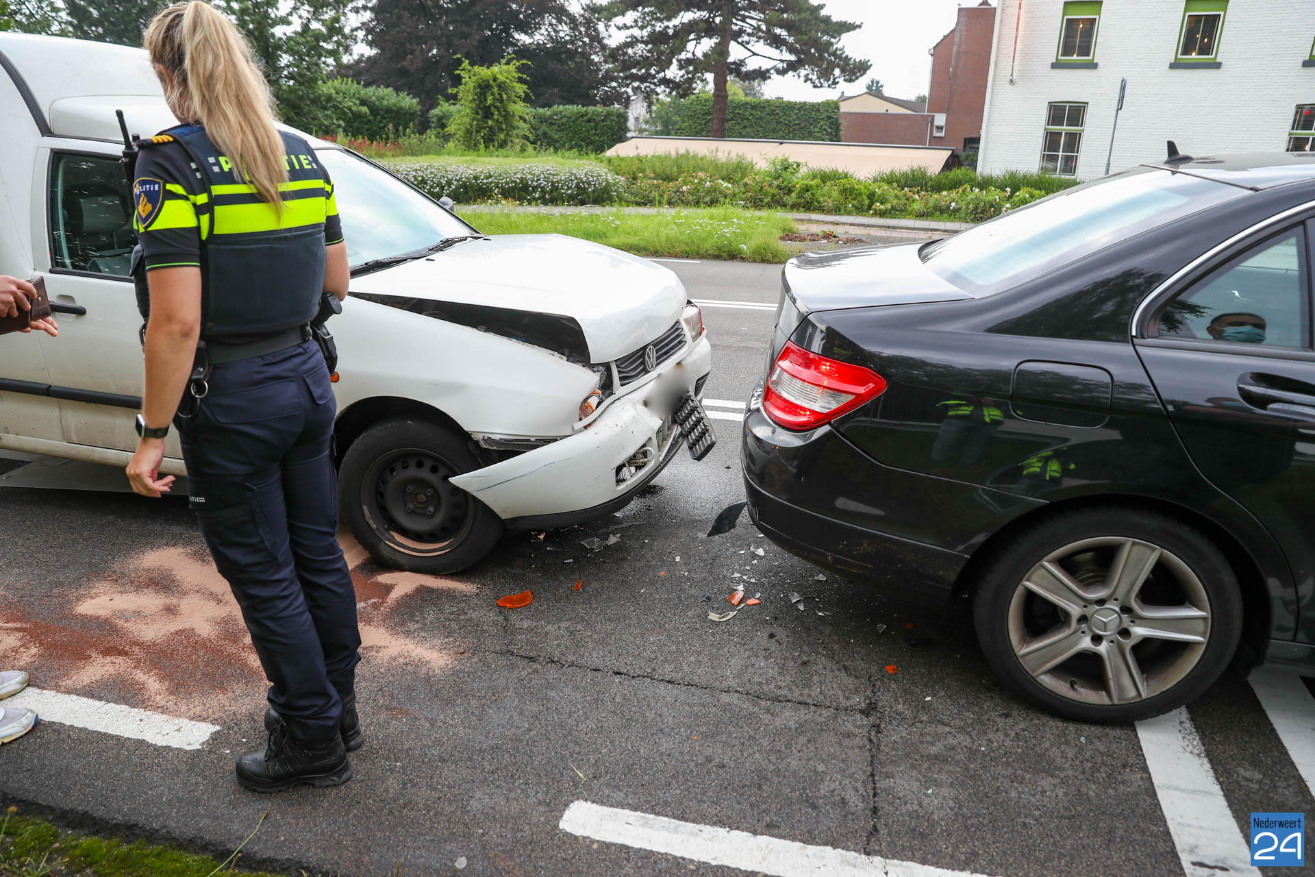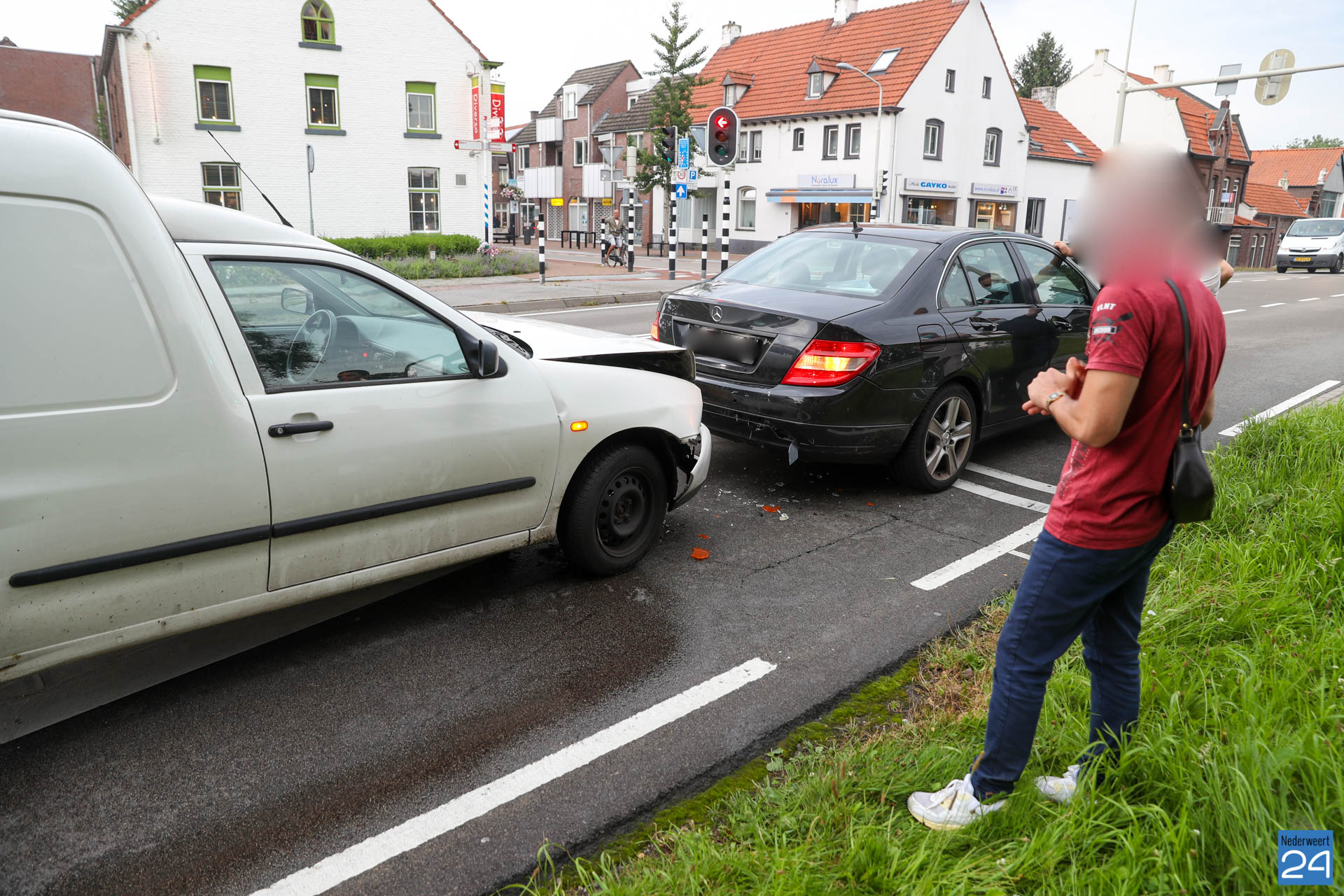 Een bestelauto is zaterdagavond bij de verkeerslichten op de N266 in Nederweert hard achterop een personenauto gebotst.