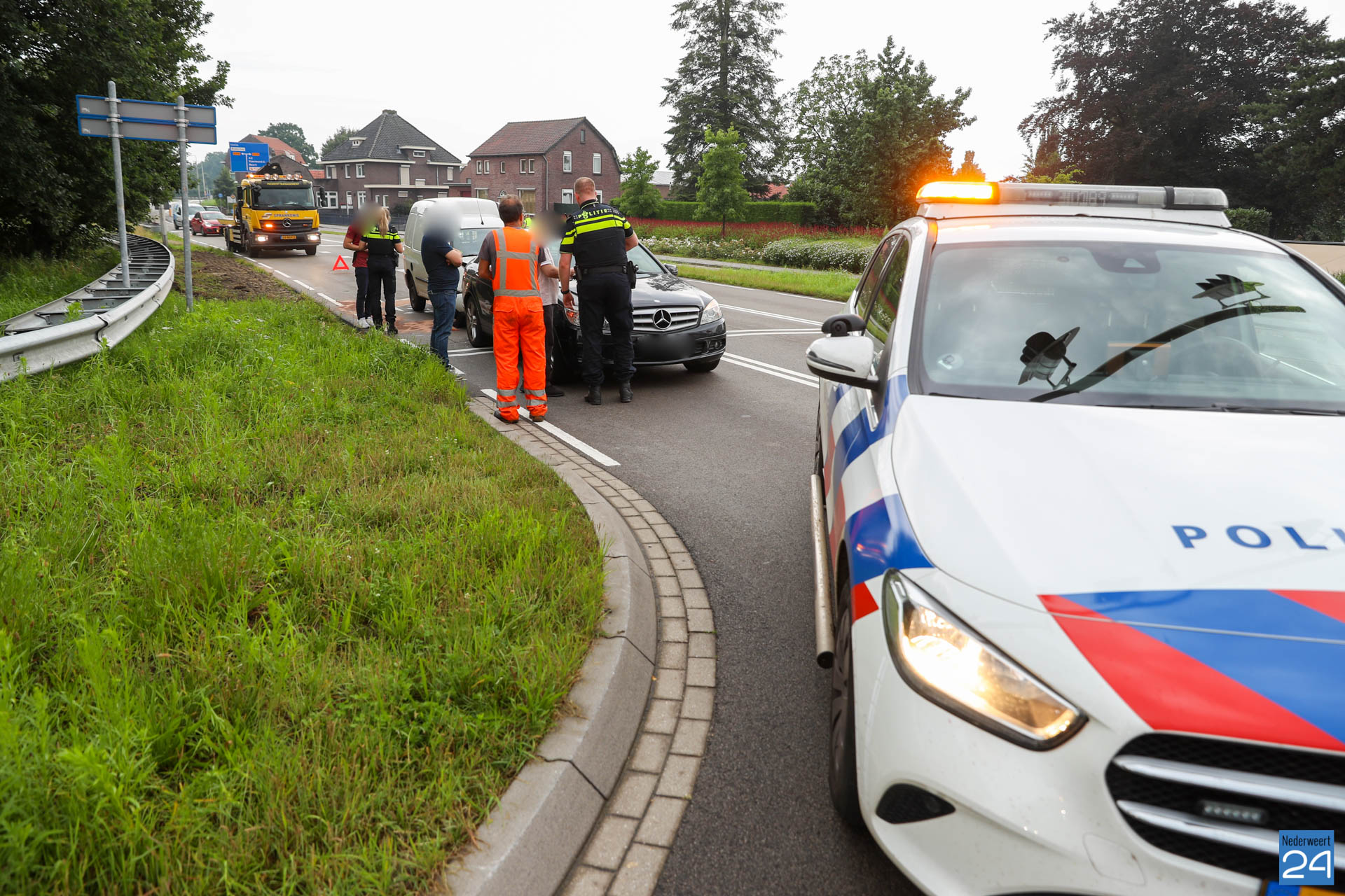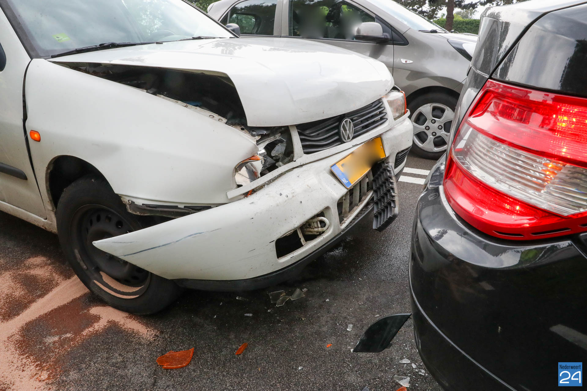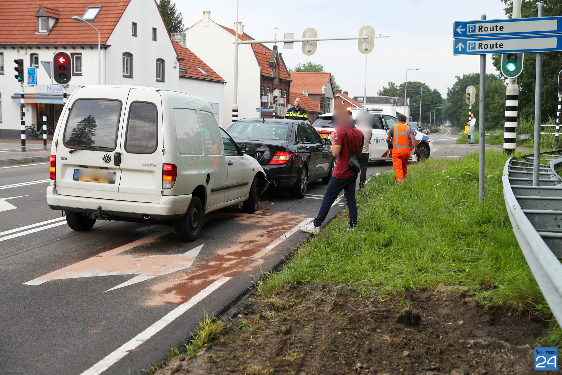 Een bestelauto is zaterdagavond bij de verkeerslichten op de N266 in Nederweert hard achterop een personenauto gebotst.