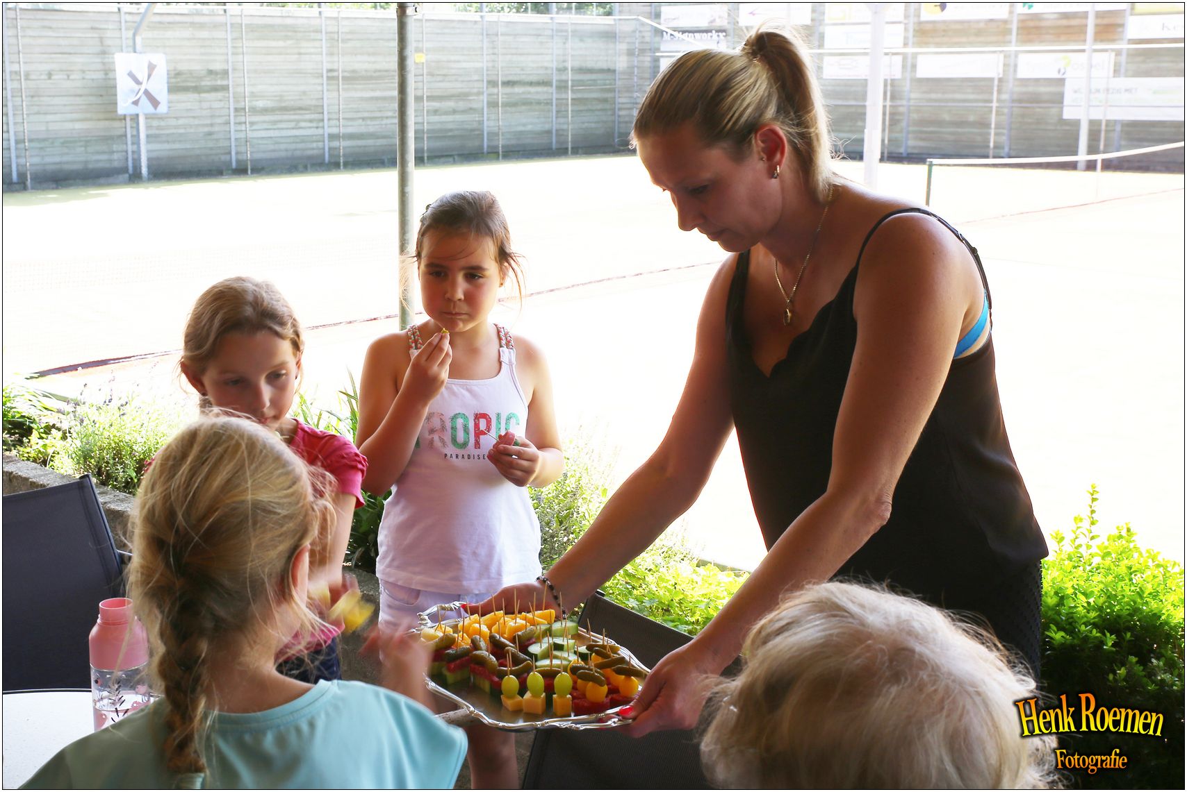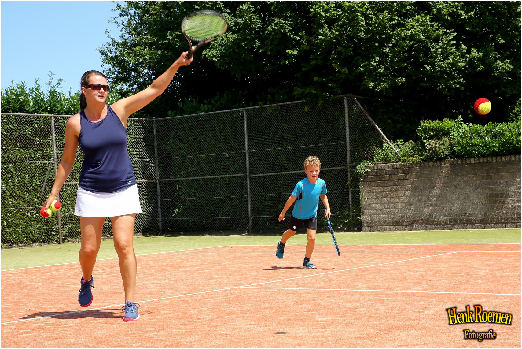 Meer dan 30 fanatieke kinderen, papa’s, mama’s, opa’s en oma’s speelden op deze zonnige middag een aantal leuke potjes tennis. Tussendoor vermaakten de kids zich goed op het springkussen. Aan het einde waren het 3 meiden (+ papa’s) met de meeste punten; Lynn, Lois en Floor. Proficiat!
