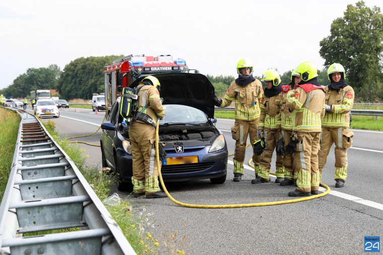 Woensdagmiddag heeft er een mini brandje gewoed onder de motorkap van een personenauto op de snelweg A2 bij Nederweert.