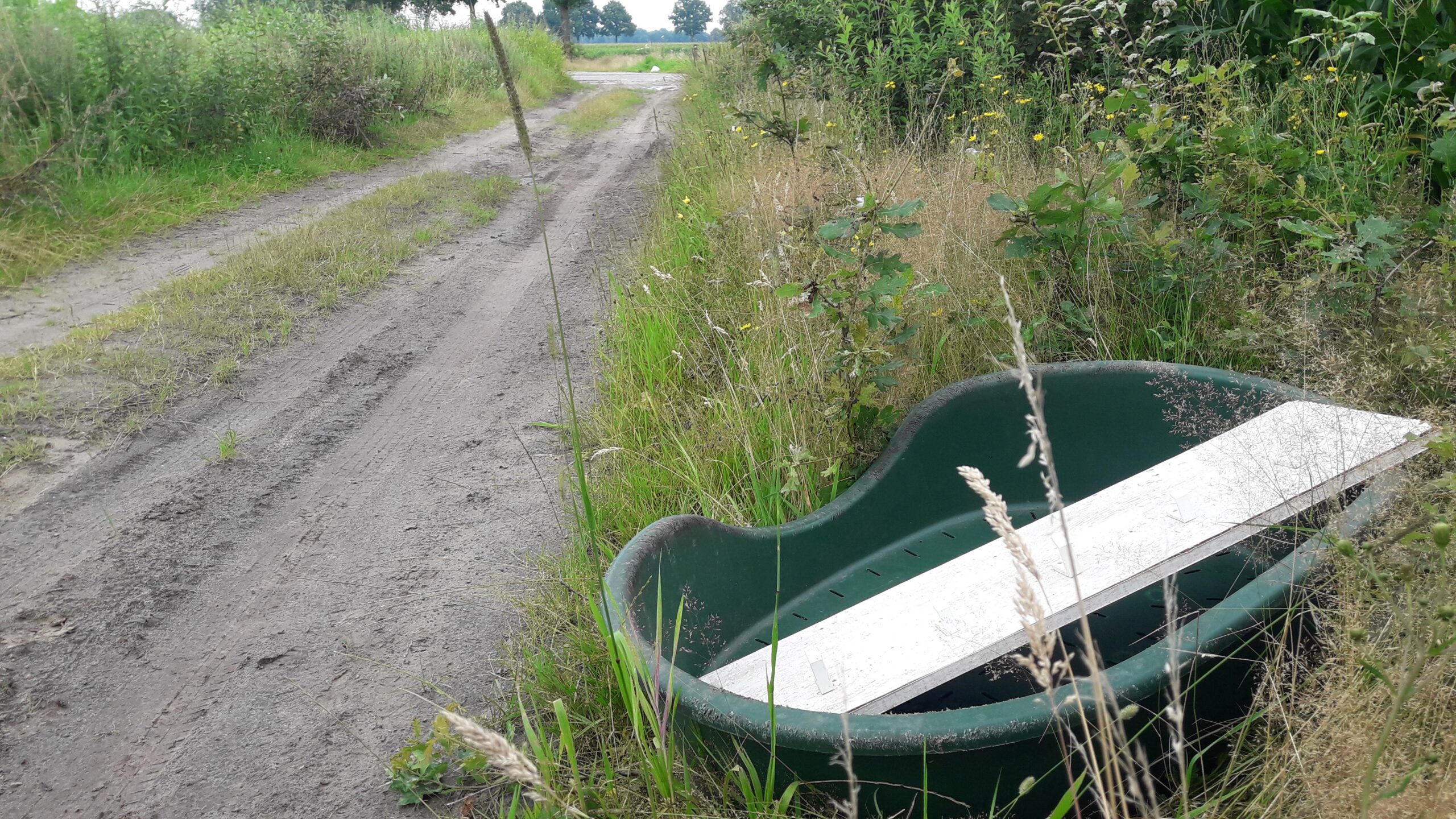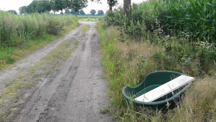 Op de kruising Kampersweg – Broenenhoup in Ospel is er een hondenmand en een kapstok gevonden. Hond overleden en jassen weggedaan vanwege klimaatverandering?