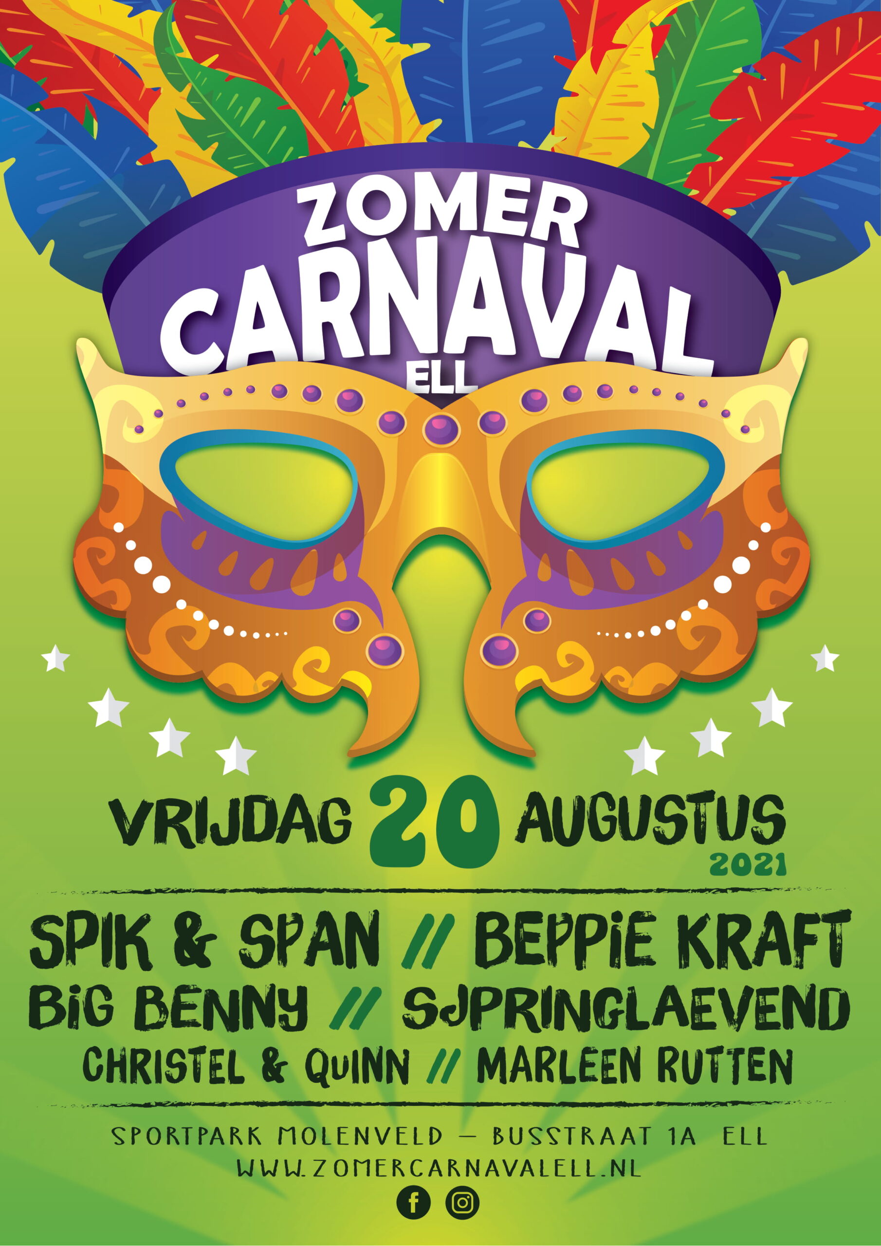 Op sportpark Molenveld aan de Busstraat in Ell zal de feesttent op z’n kop worden gezet, met optredens van Sjpringlaevend, Christel & Quinn, Marleen Rutten, Beppie Kraft, Big Benny en Spik & Span! ‘Laot de zon in dien hart’, vastelaovendj inne zomer veers se in Èll!