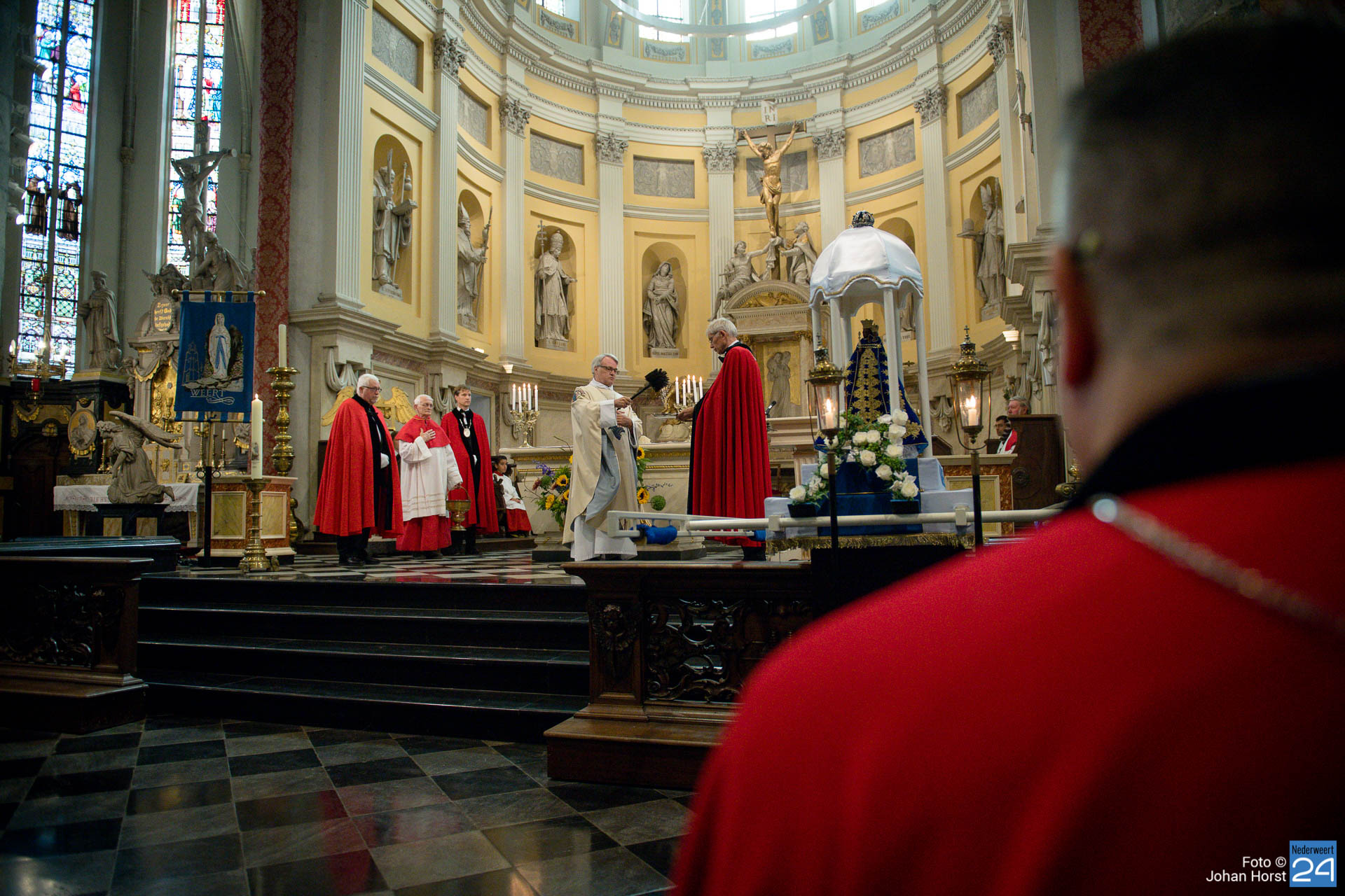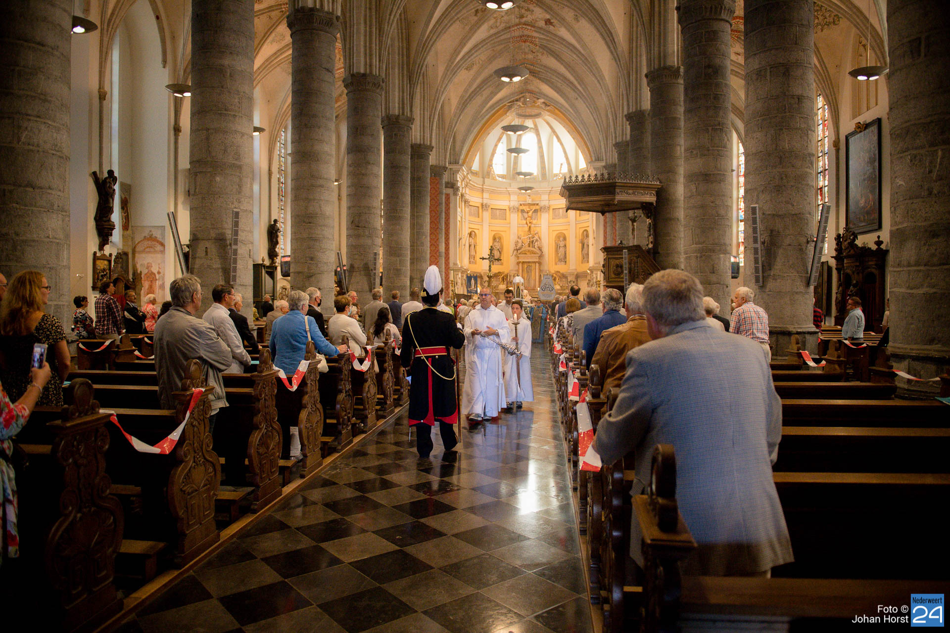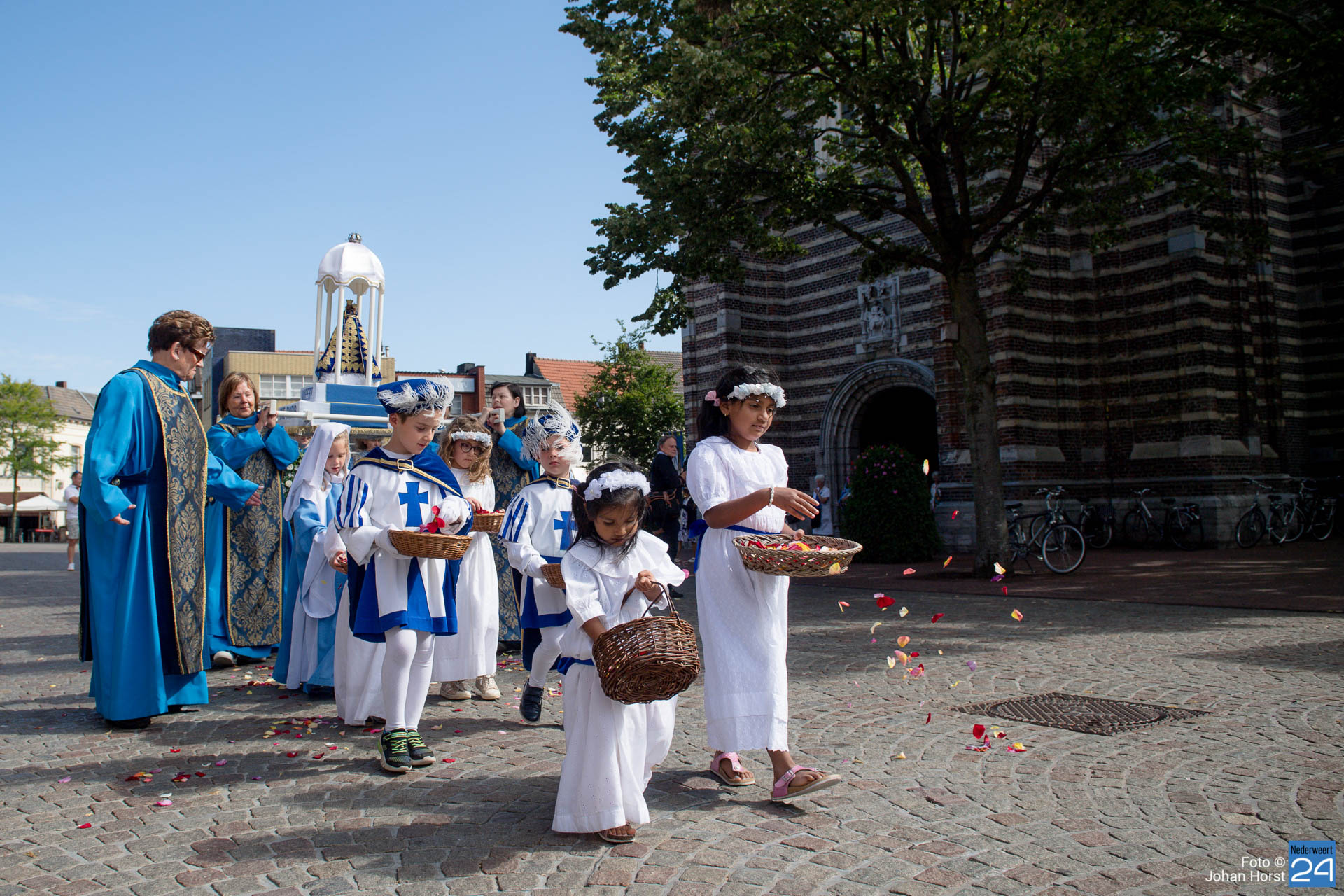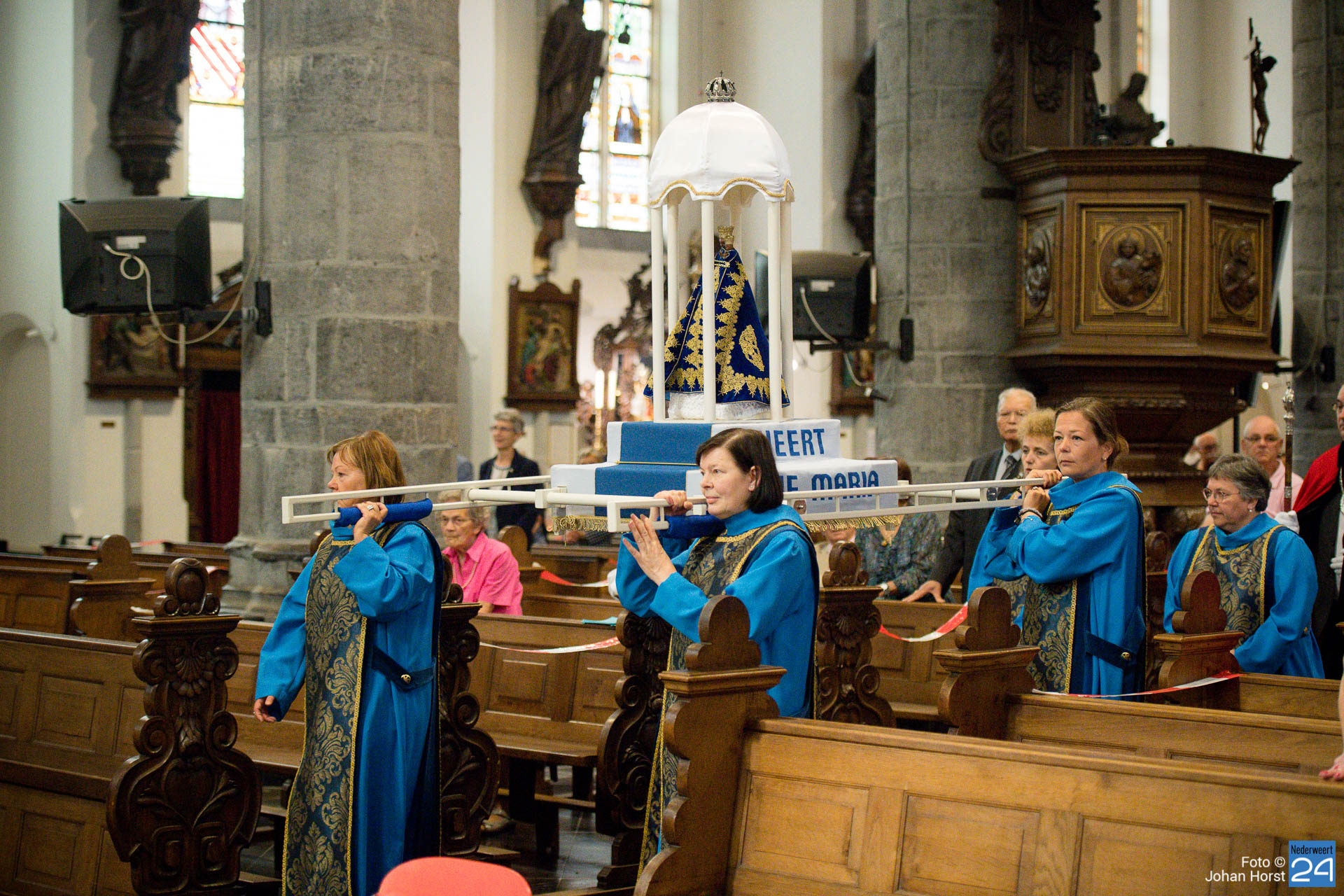 Vandaag vierde het Broederschap Weert ook de Maria-Tenhemelopneming in de Sint-Martinuskerk Weert. Het was zo anders voorgesteld op deze feestdag. De broederschap bestaat 25 jaar en dat wilden ze graag groots vieren in de tuin bij de zusters op de Maasstraat. Helaas zijn er nog steeds beperkingen vanwege Corona. Niet echt een processie maar het lijkt er wel sterk op wanneer de misgangers zich naar het klooster begeven.