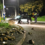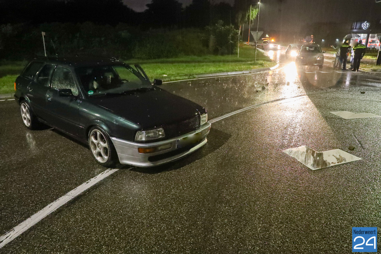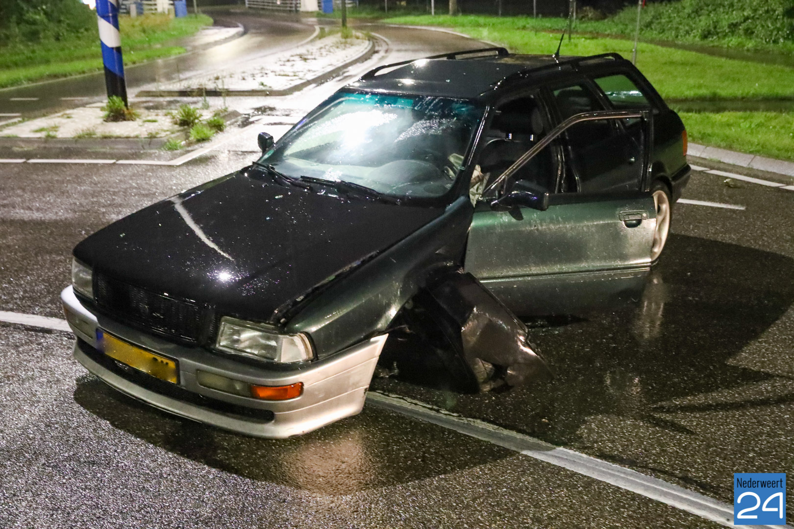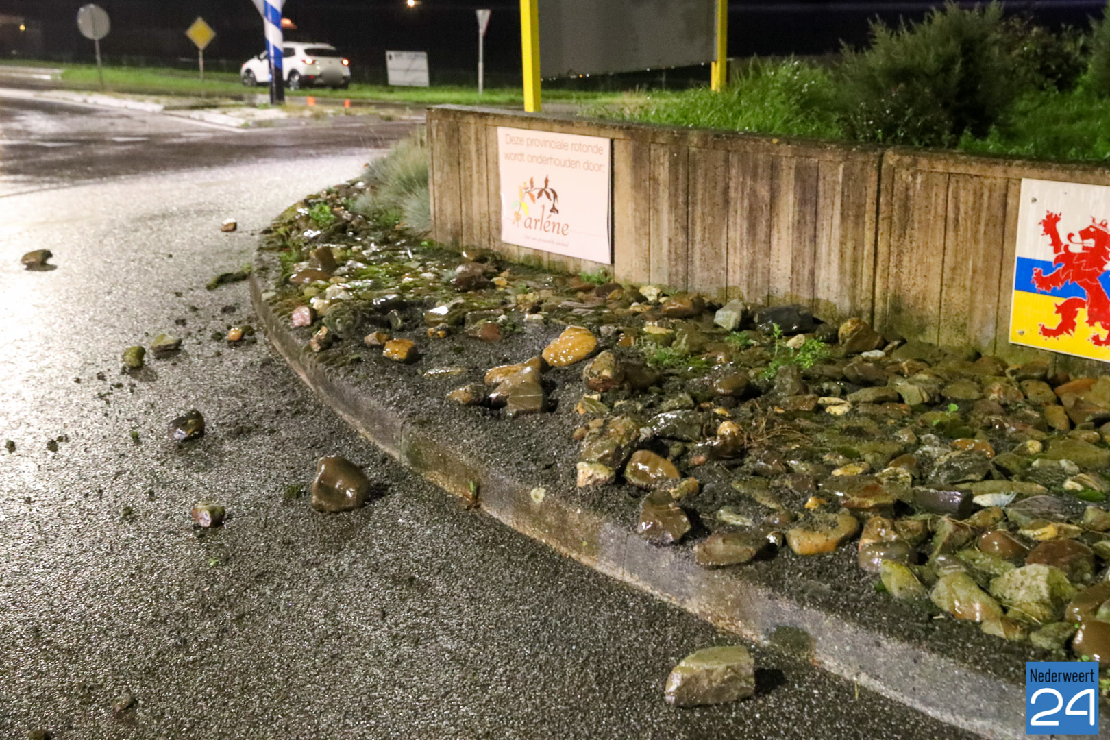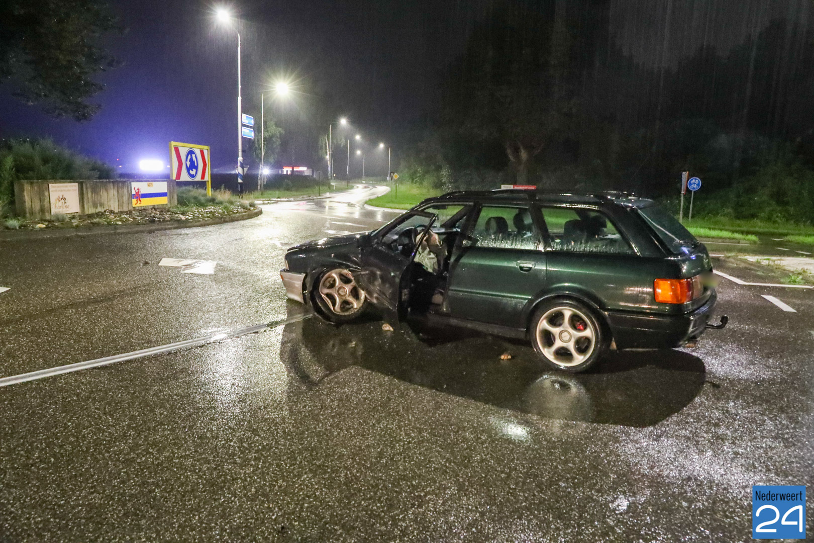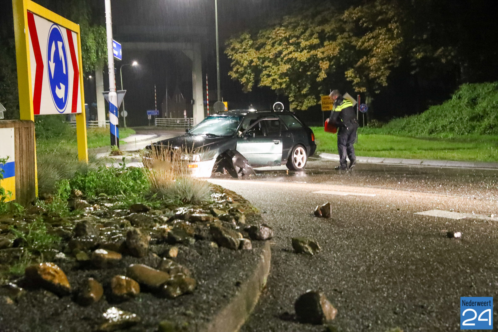 De bestuurder van een personenauto heeft in de nacht van zaterdag op zondag de benen genomen na een aanrijding met de rotonde Randweg Zuid/Hoofstraat in Nederweert.
