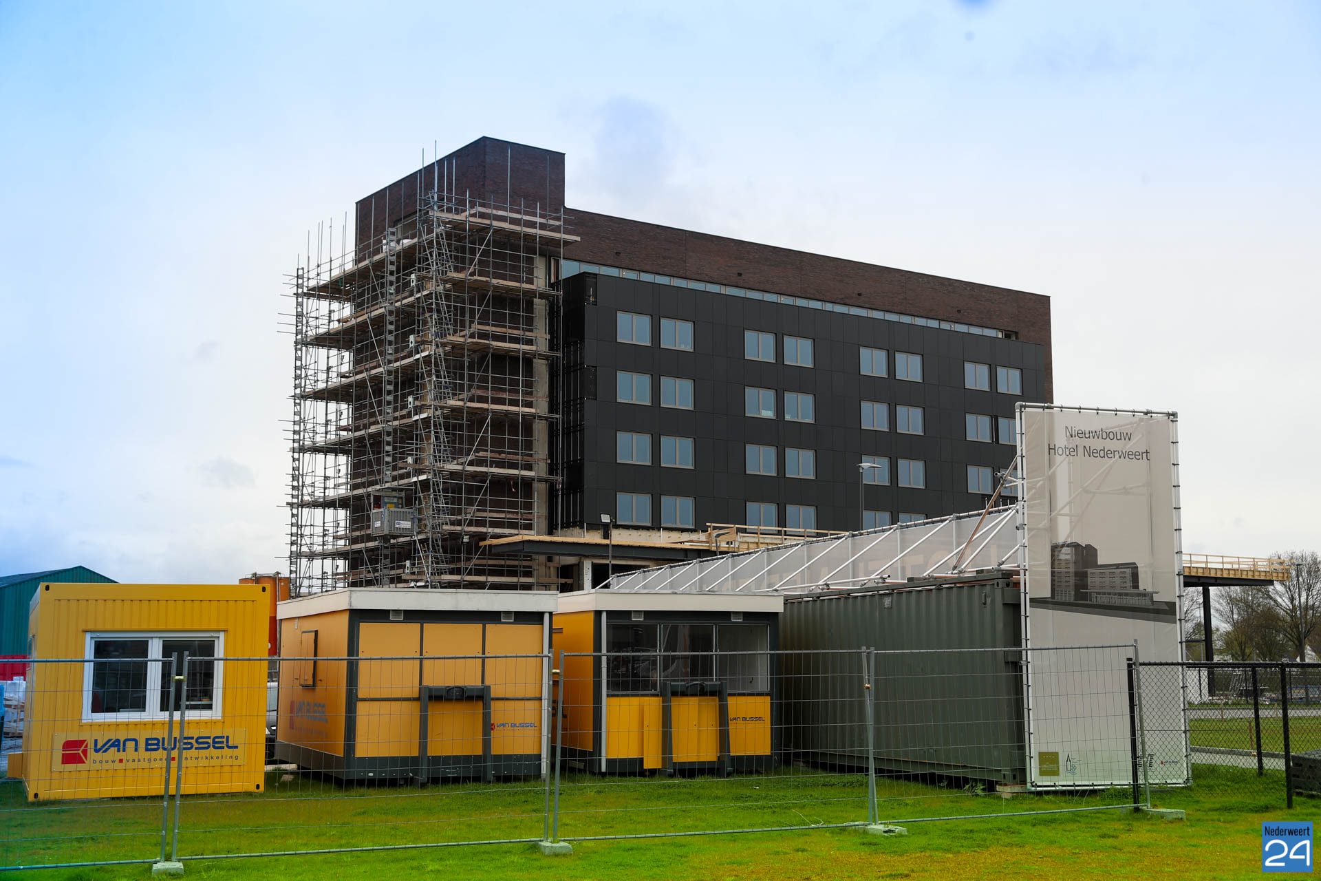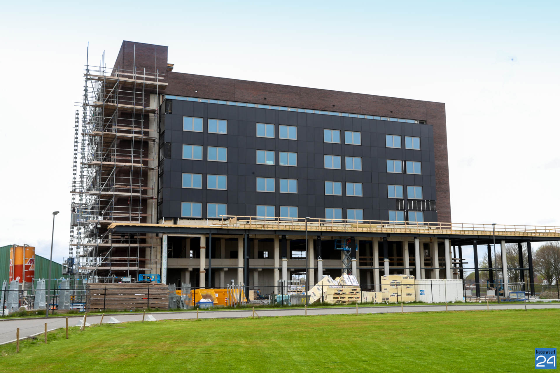 Langs de KFC zijn de eerste verdiepingen van Hotel Nederweert inmiddels goed zichtbaar.