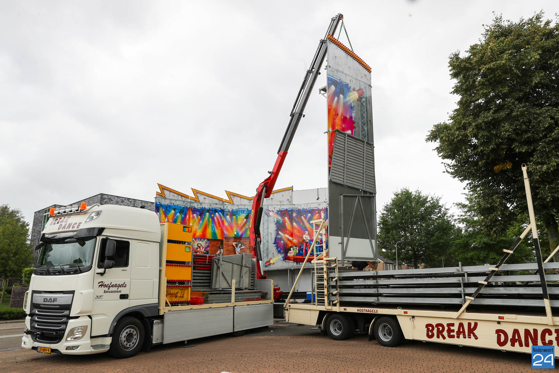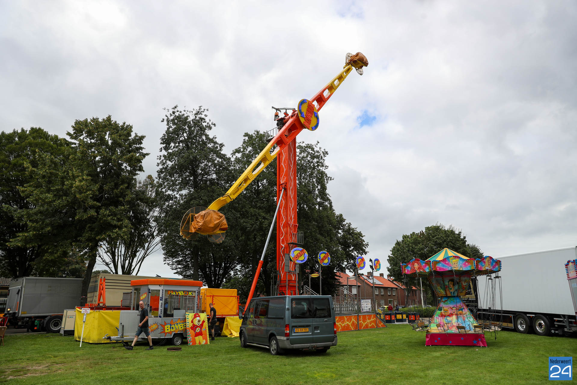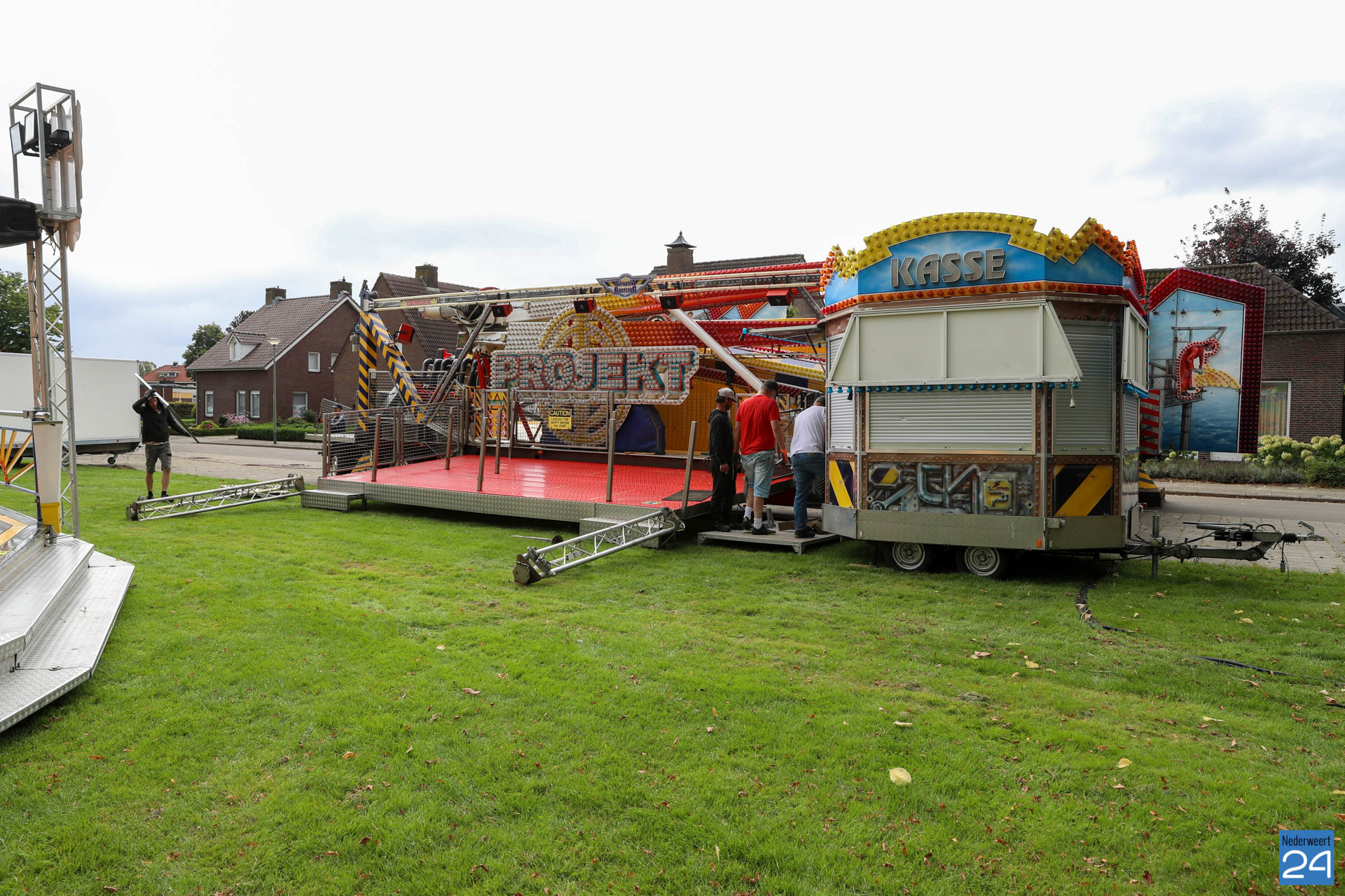 Ook donderdag werd er weer vol op gebouwd op de kermisterreinen in Nederweert en Budschop. Van vrijdag 27 tot en met dinsdag 31 augustus vindt de jaarlijkse kermis plaats.